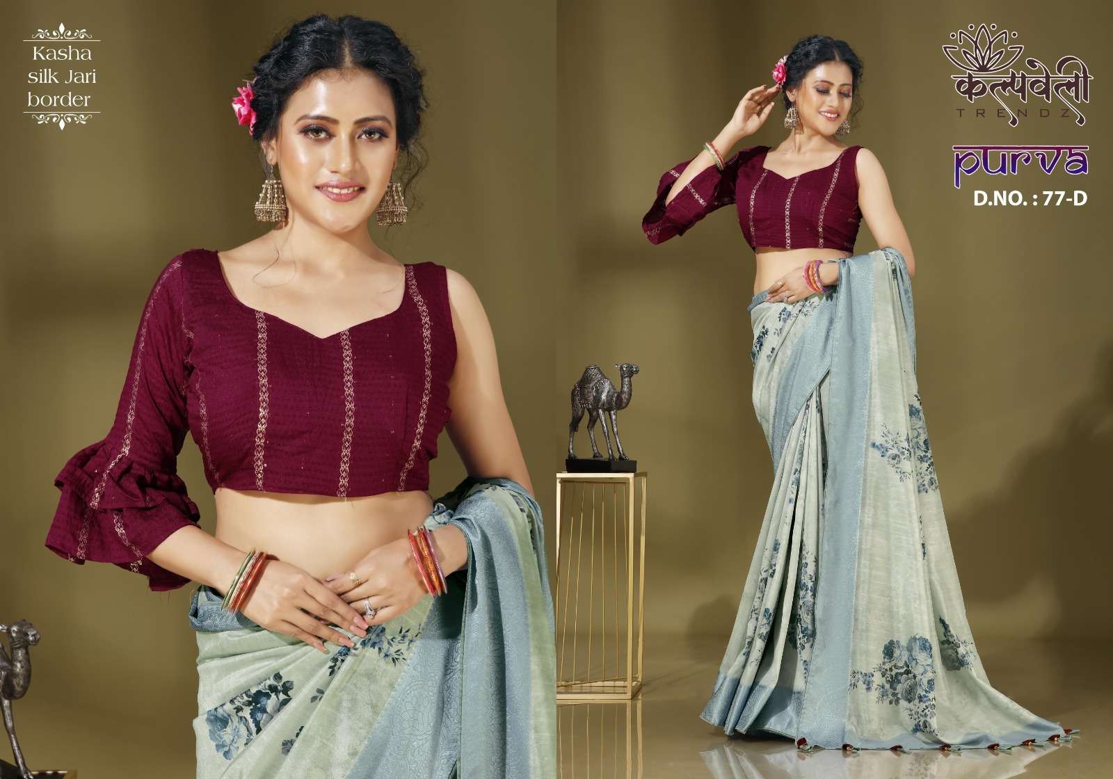 kalpavelly trendz purva 77 fancy print kasha silk saree collection
