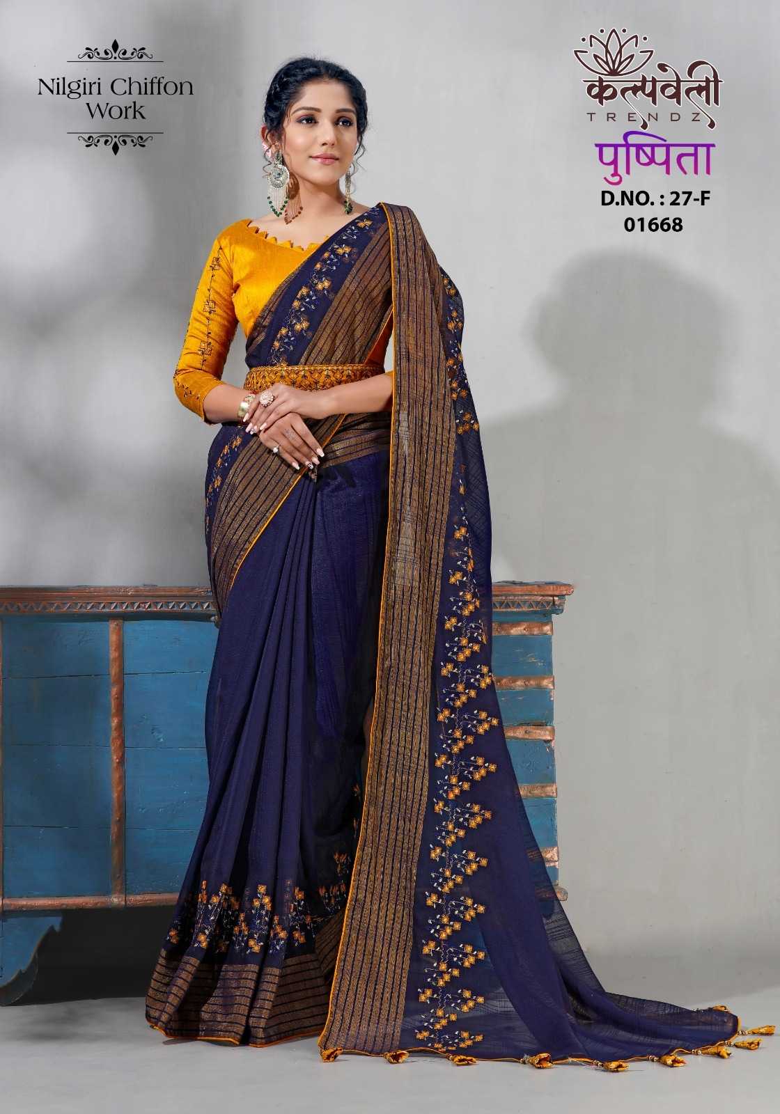 kalpavelly trendz pushpita 27 beautiful chiffon nilgiri sarees