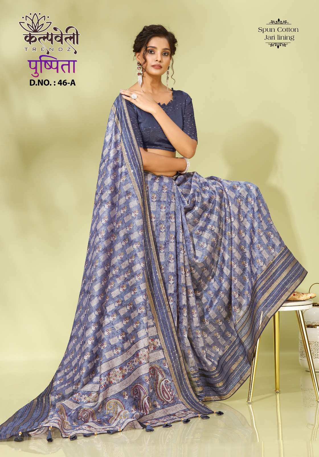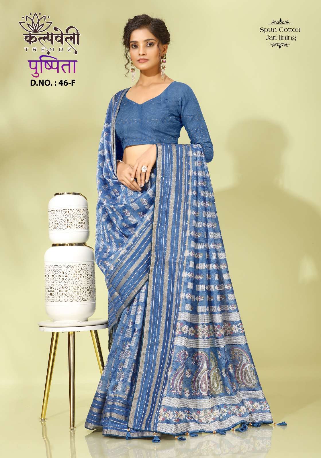 Pushpita 46 no. -851/- Fabric: Spun cotton Concept: jari lining design Blouse:Matching blouse |