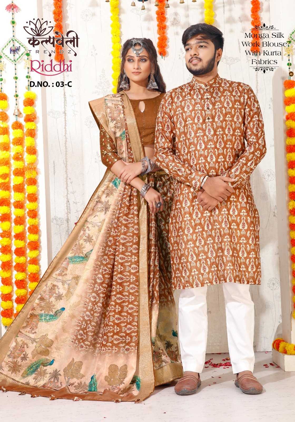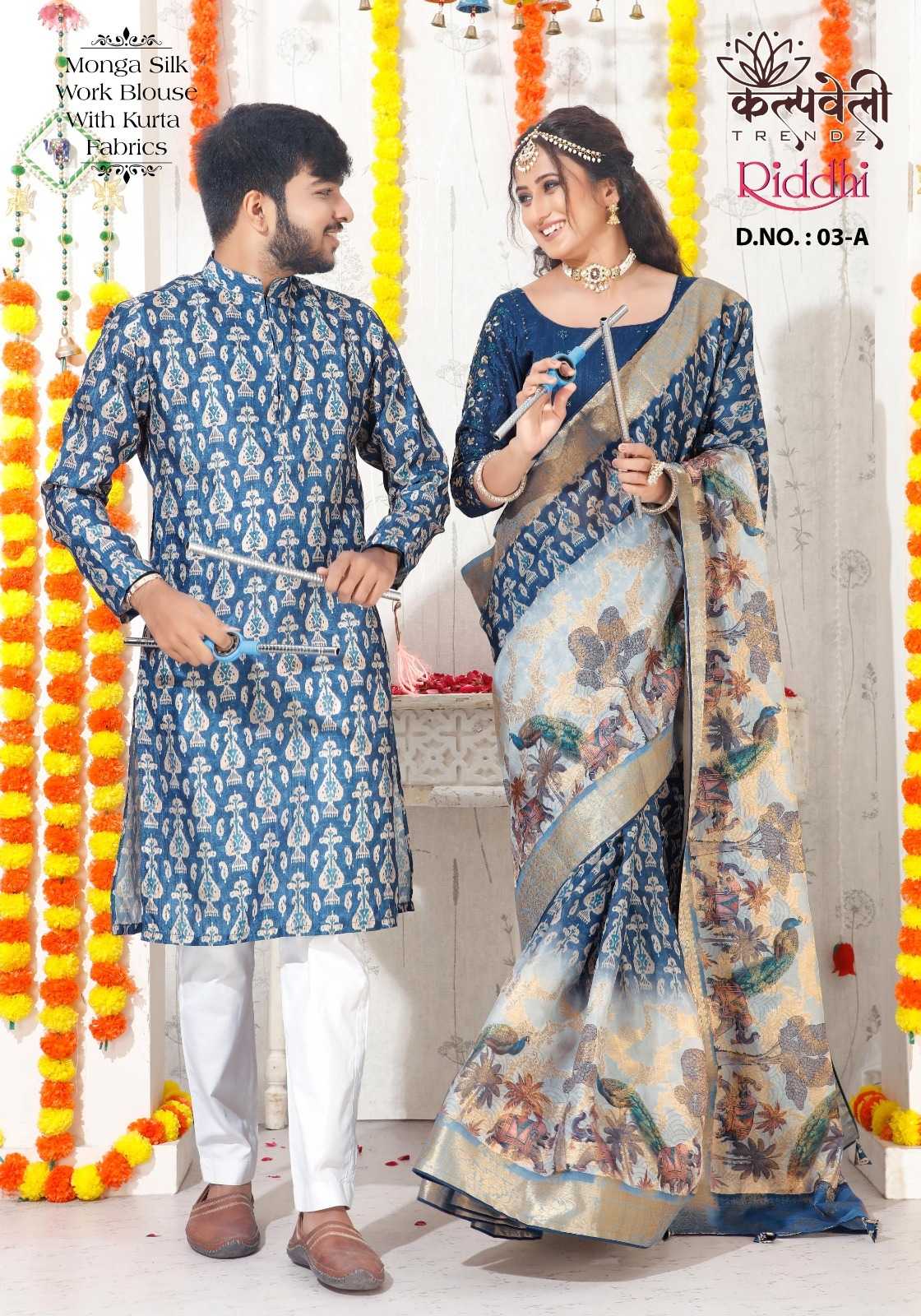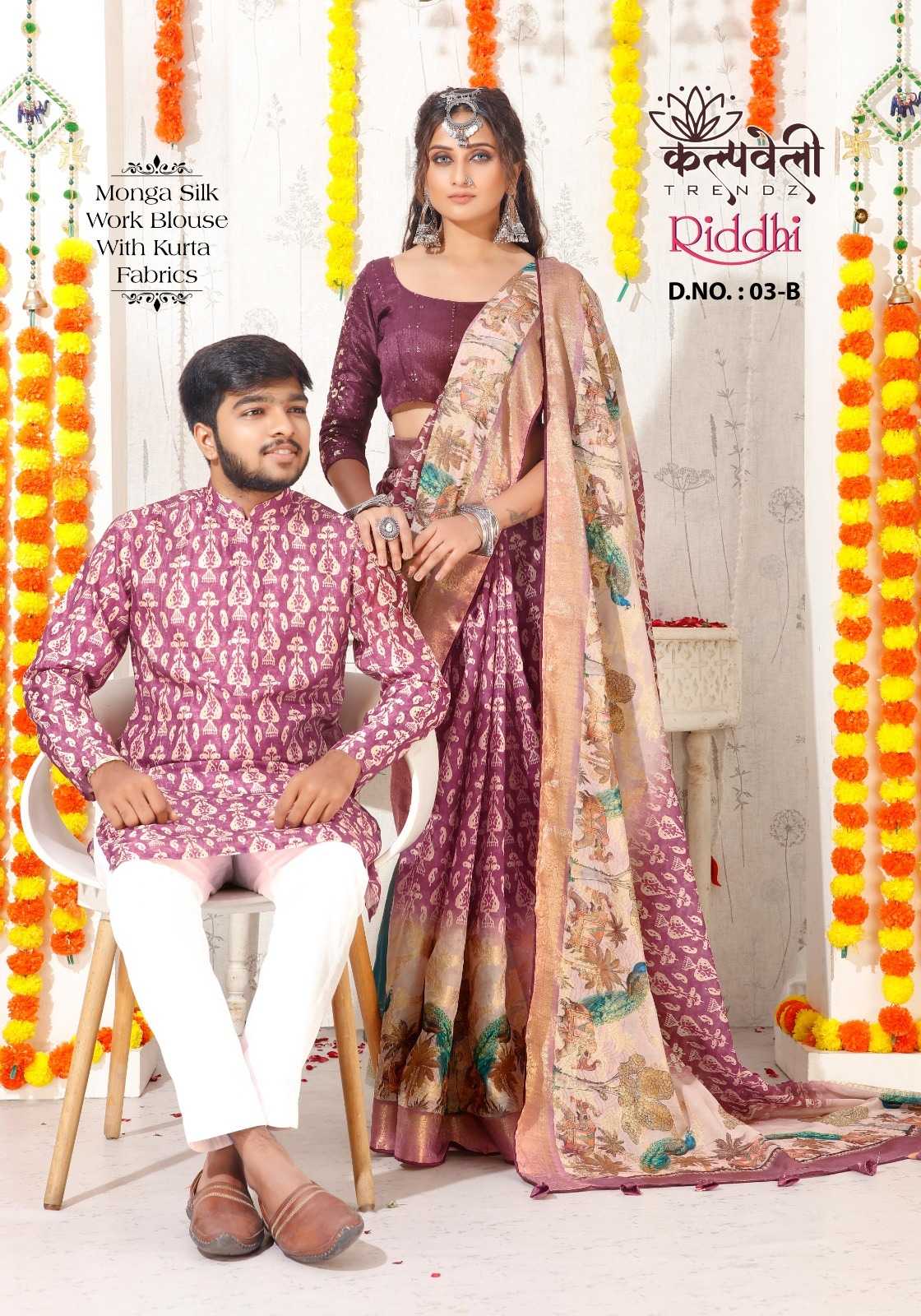 kalpavelly trendz riddhi 03 fancy monga silk saree with unstitch kurta for couples