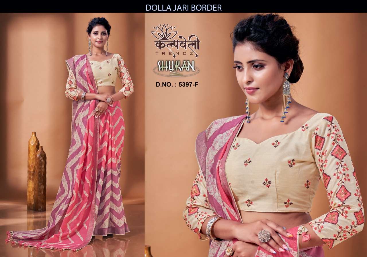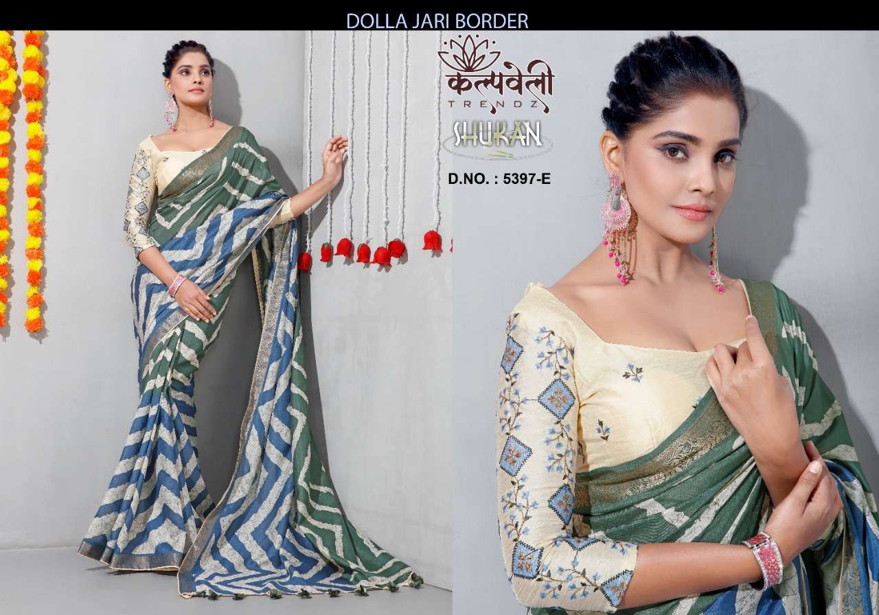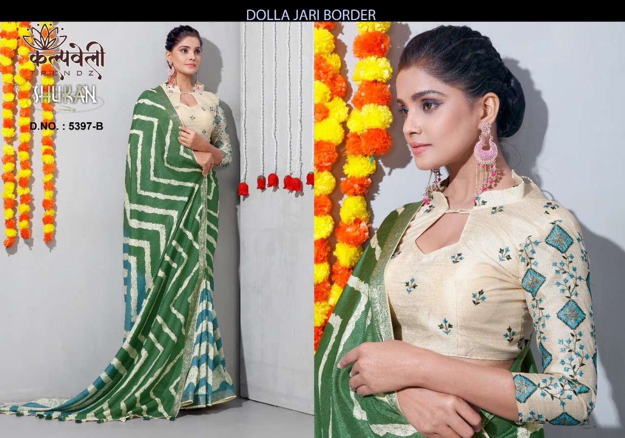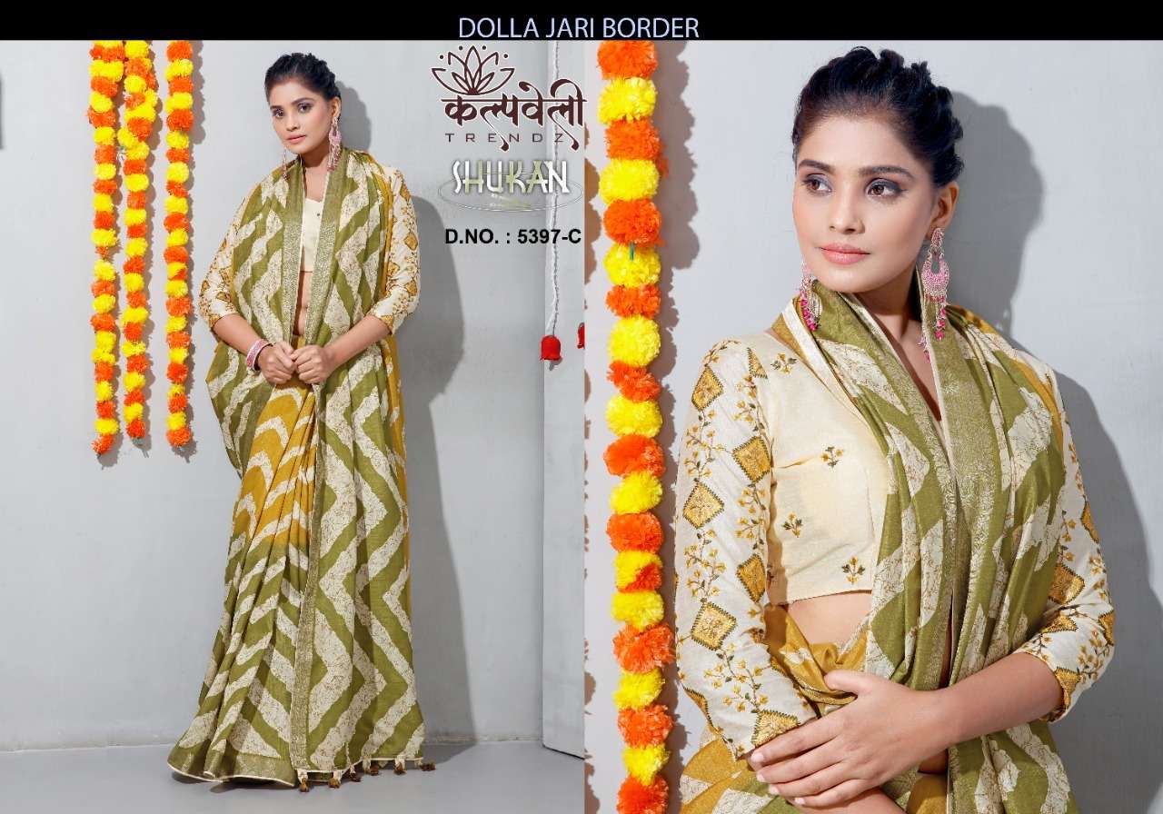 kalpavelly trendz shukan 5397 adorable leheriya print dola silk saree supplier