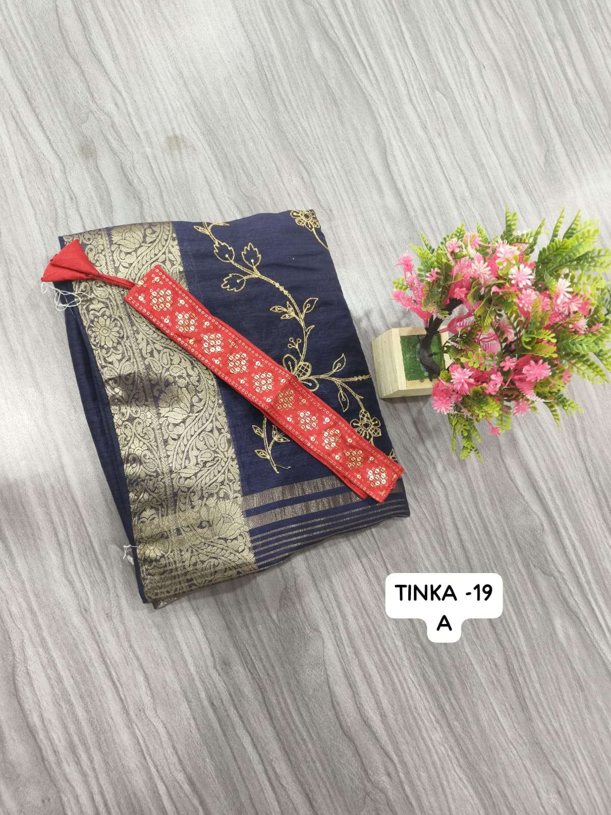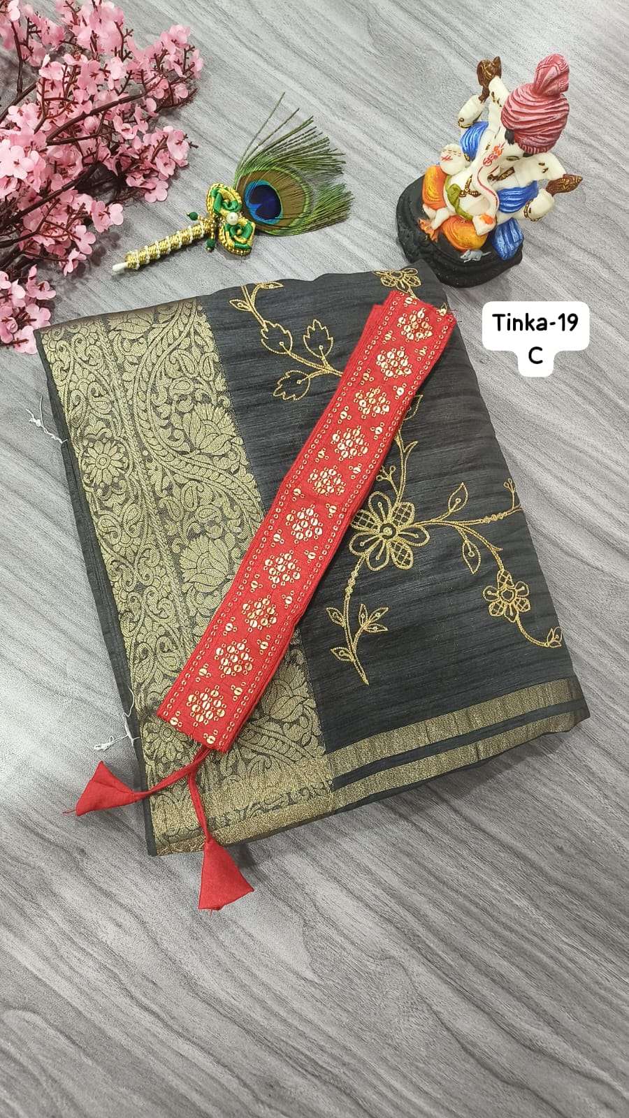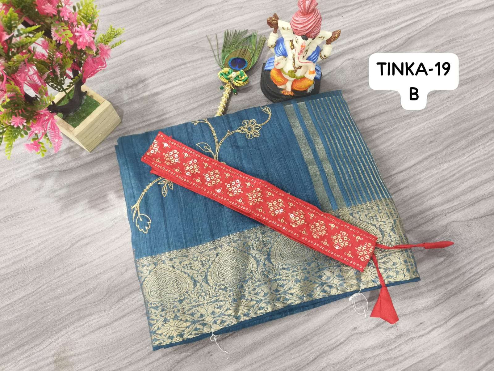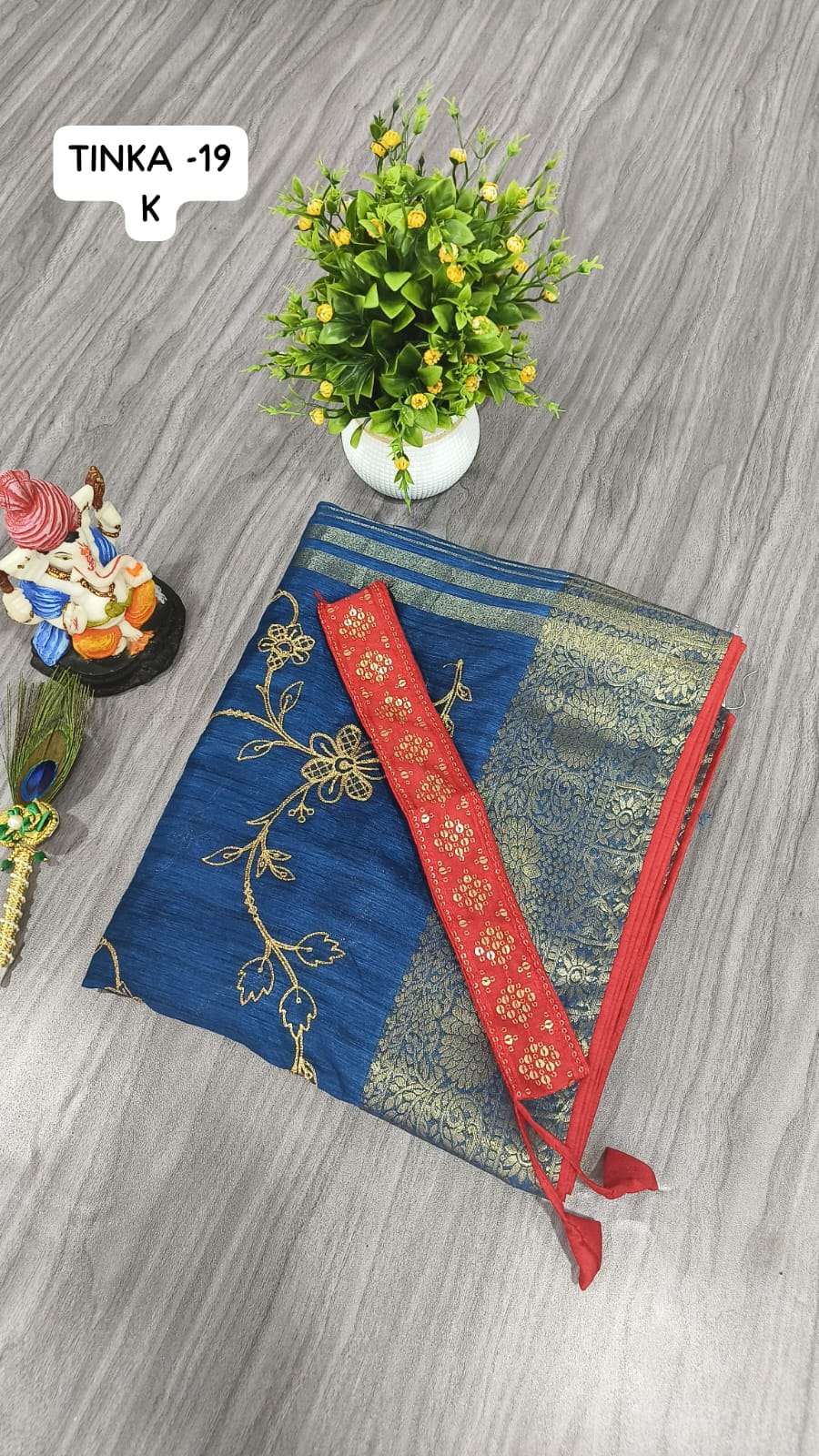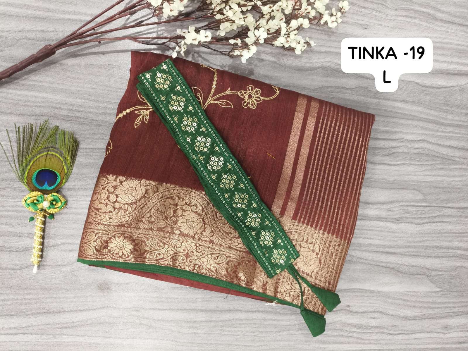 Tinka 19 no. -1190/- Fabric: Dolla silk Concept: Fancy design saree with pallu work in jacquard border with contrast matching belt Blouse:contrast matching blouse Packing :02.09.2023📌 |