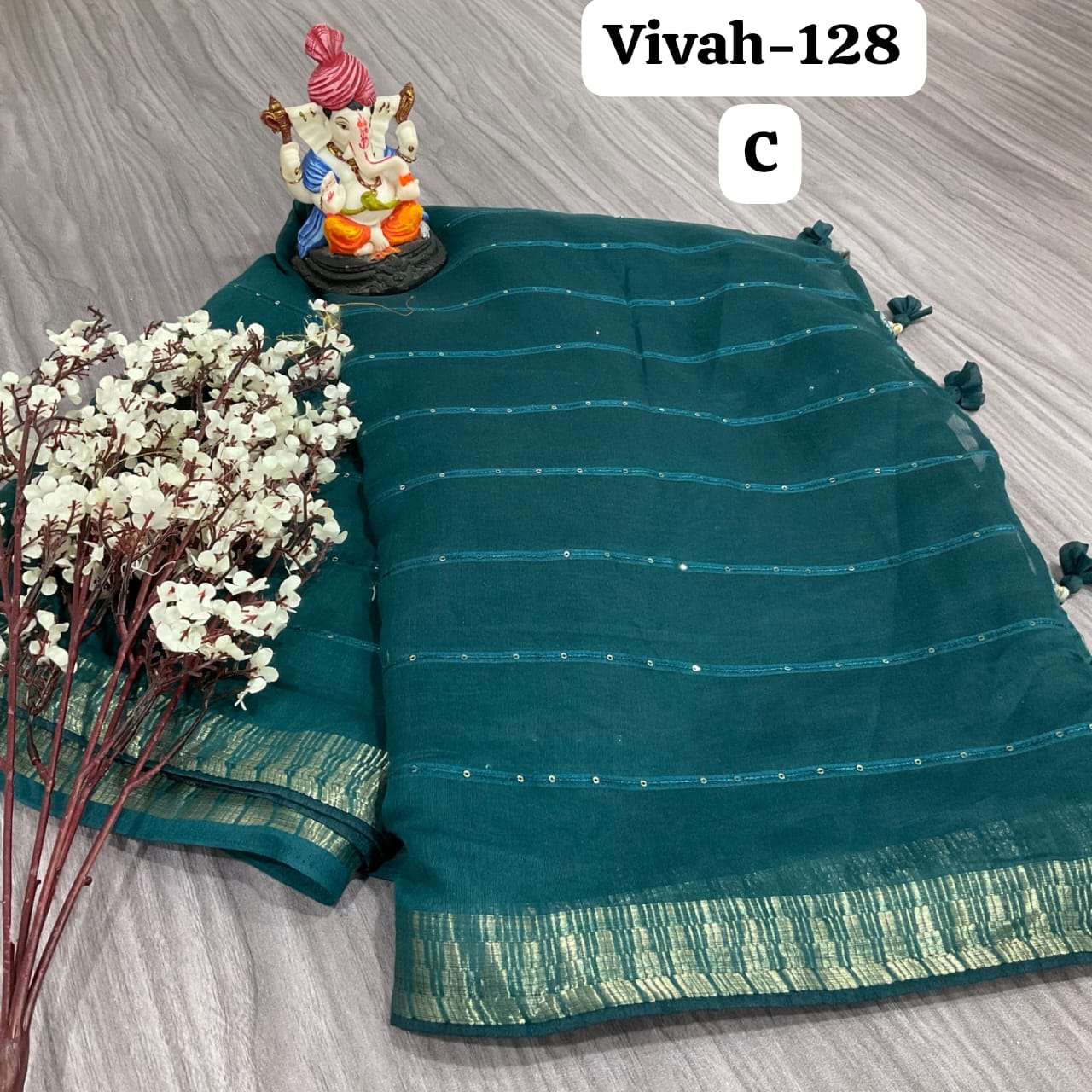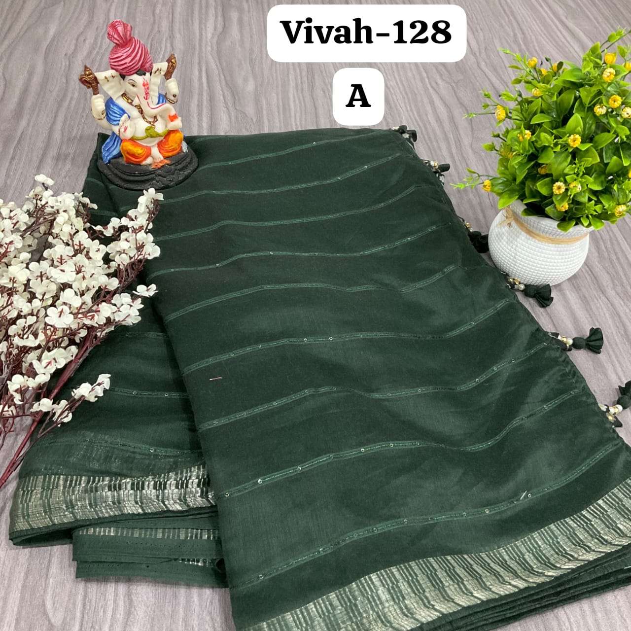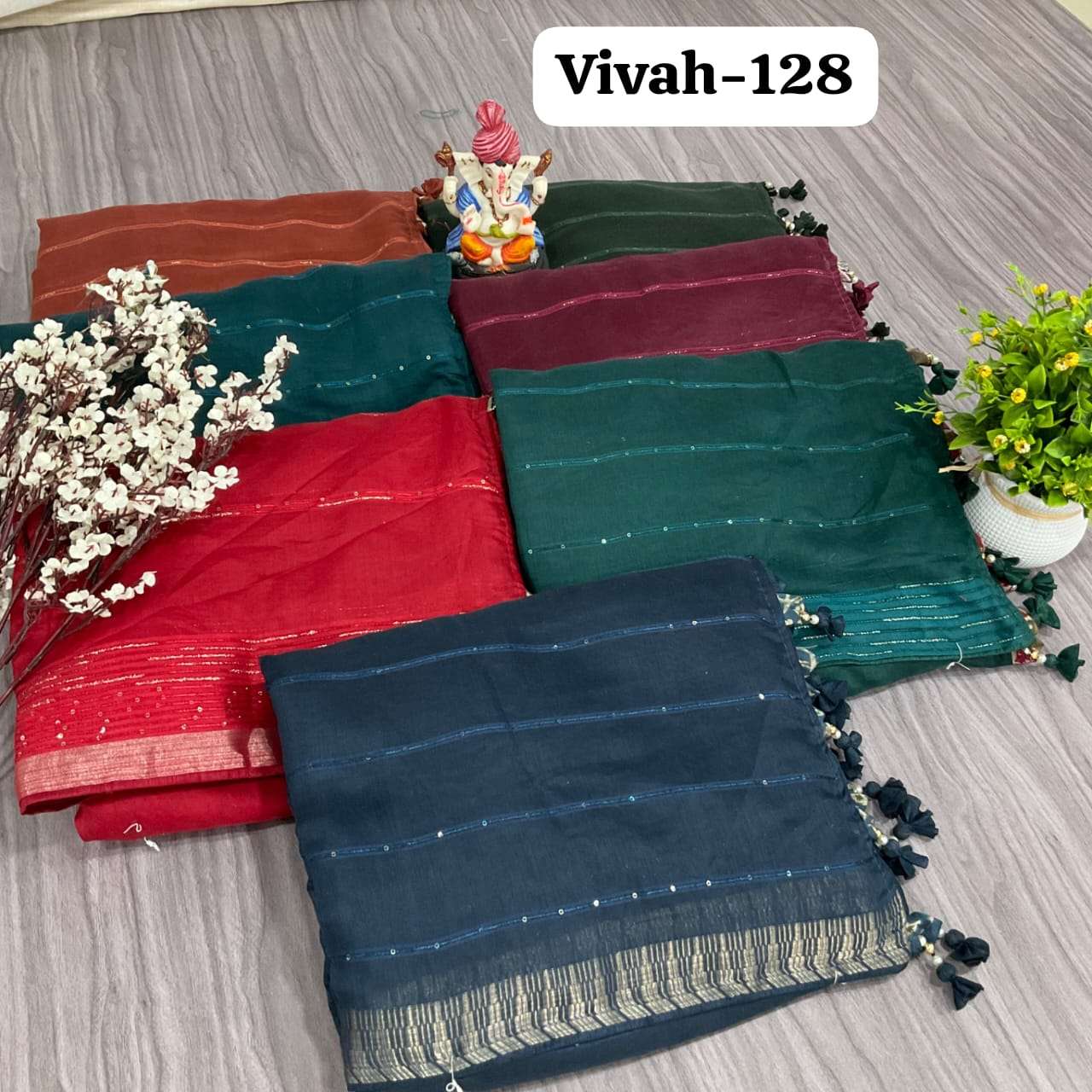 Vivah 128 no. -765/- Fabric: Spun cotton Concept: Fancy sequence lining design Beautiful✨ color 🎨 available Blouse: Print blouse