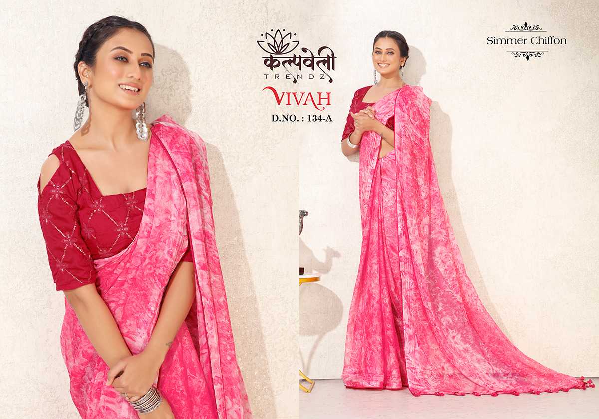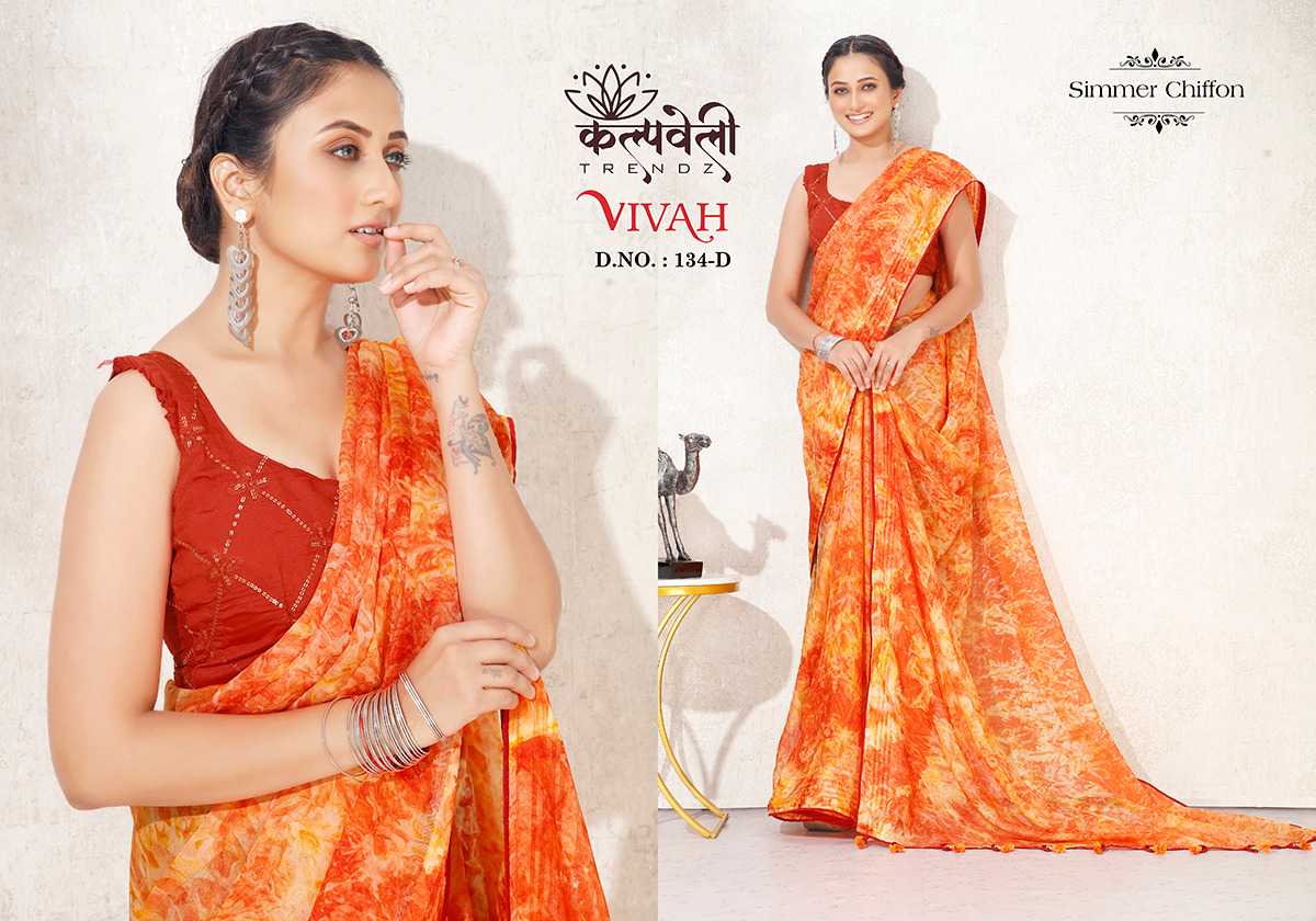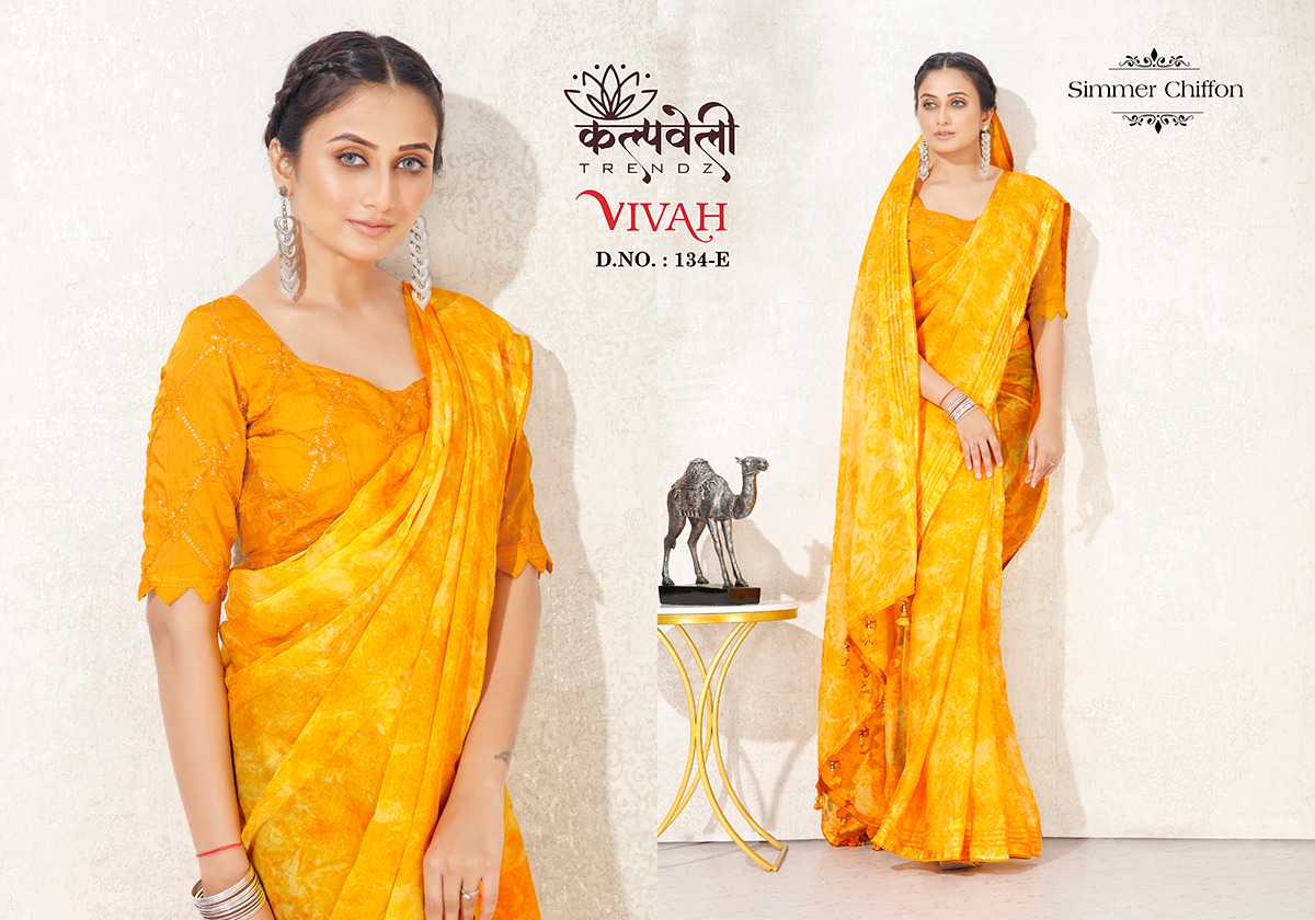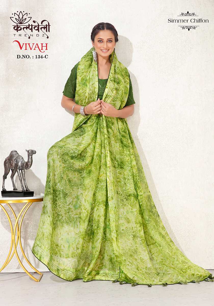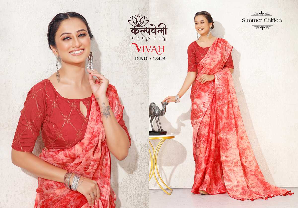 kalpavelly trendz vivah 134 fancy simmer chiffon saree collection