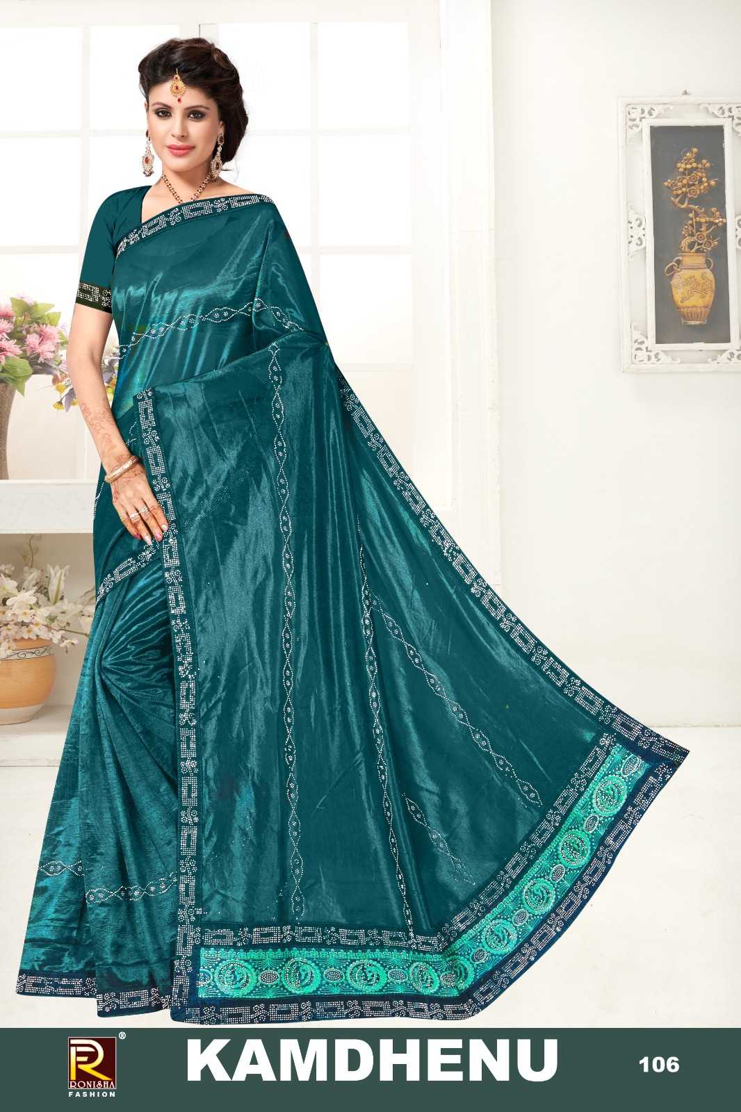 KAMDHENU BY RANJNA SAREE TWILNET FABRICS SIROSKI DIAMOND WORK & EMBROIDERY WORK FANCY SUPER HIT COLLECTION SAREES