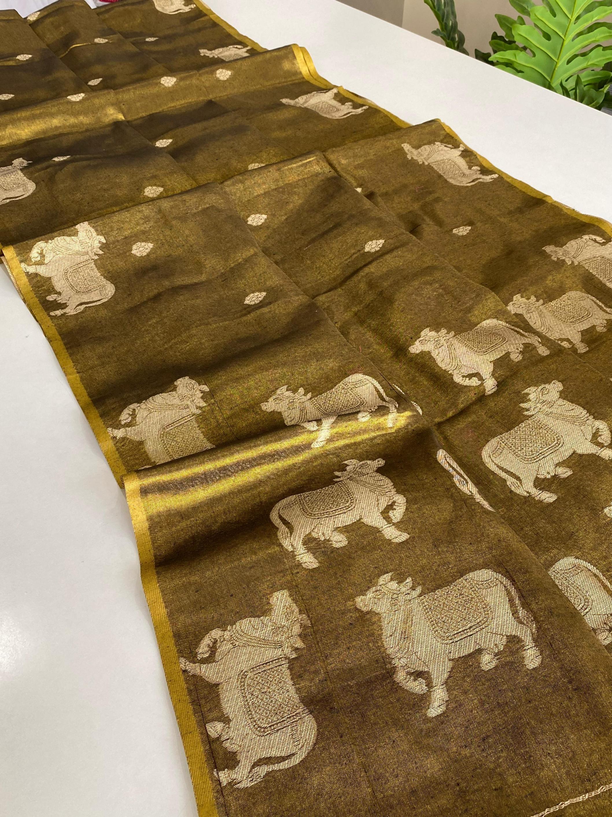 New Catalogue 😍 Catalog : Kamdhenu 👉🏻 DESCRIPTION : PREMIUM ZARI TISSUE WEAVING SAREES WITH ALL OVER PICHWAI PATTERN, AND TILAK BUTTIS ON THE BODY. PRICED AT: 920/- Saree Fabric : Zari Tissue. READY STOCK. |