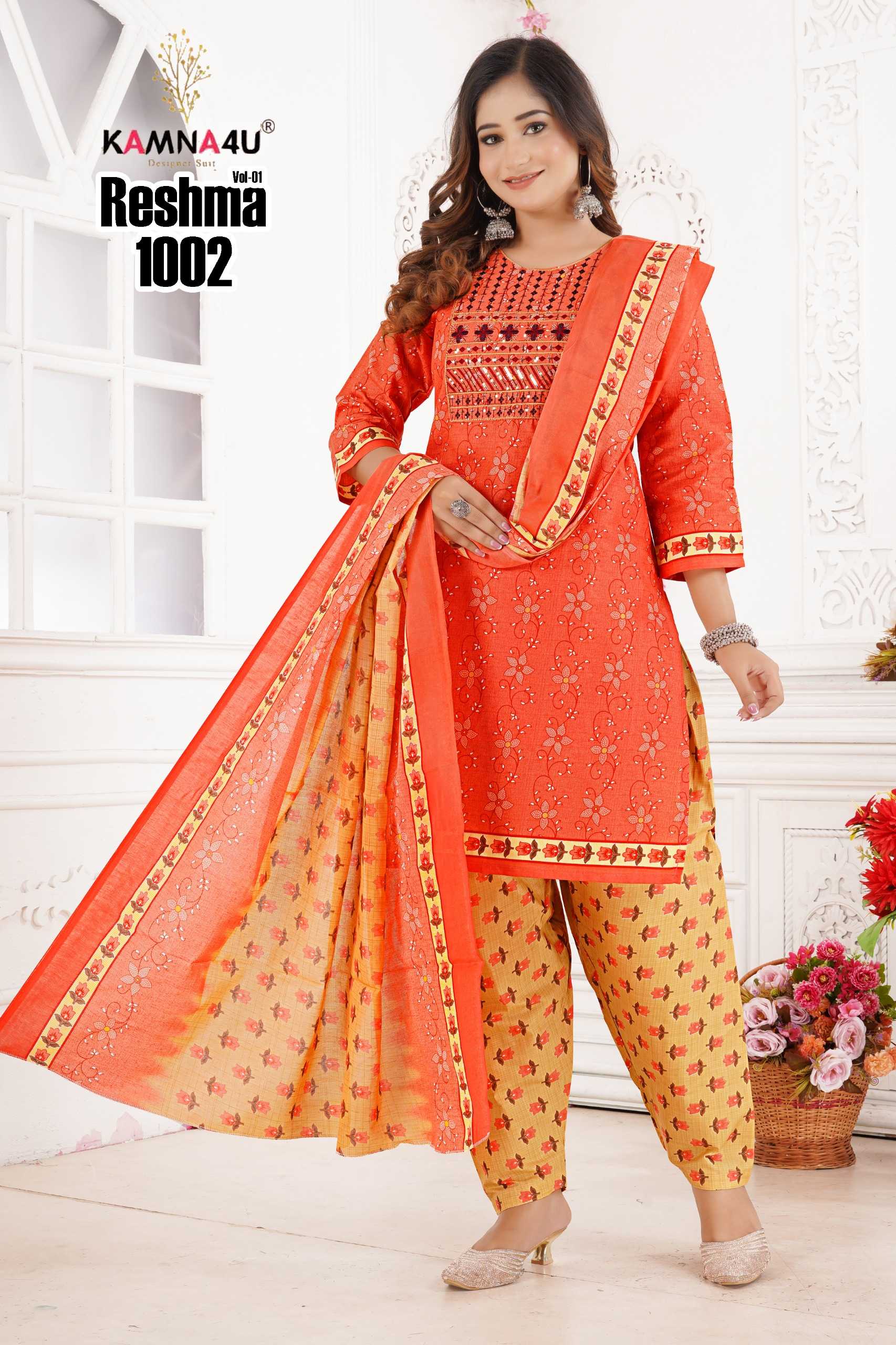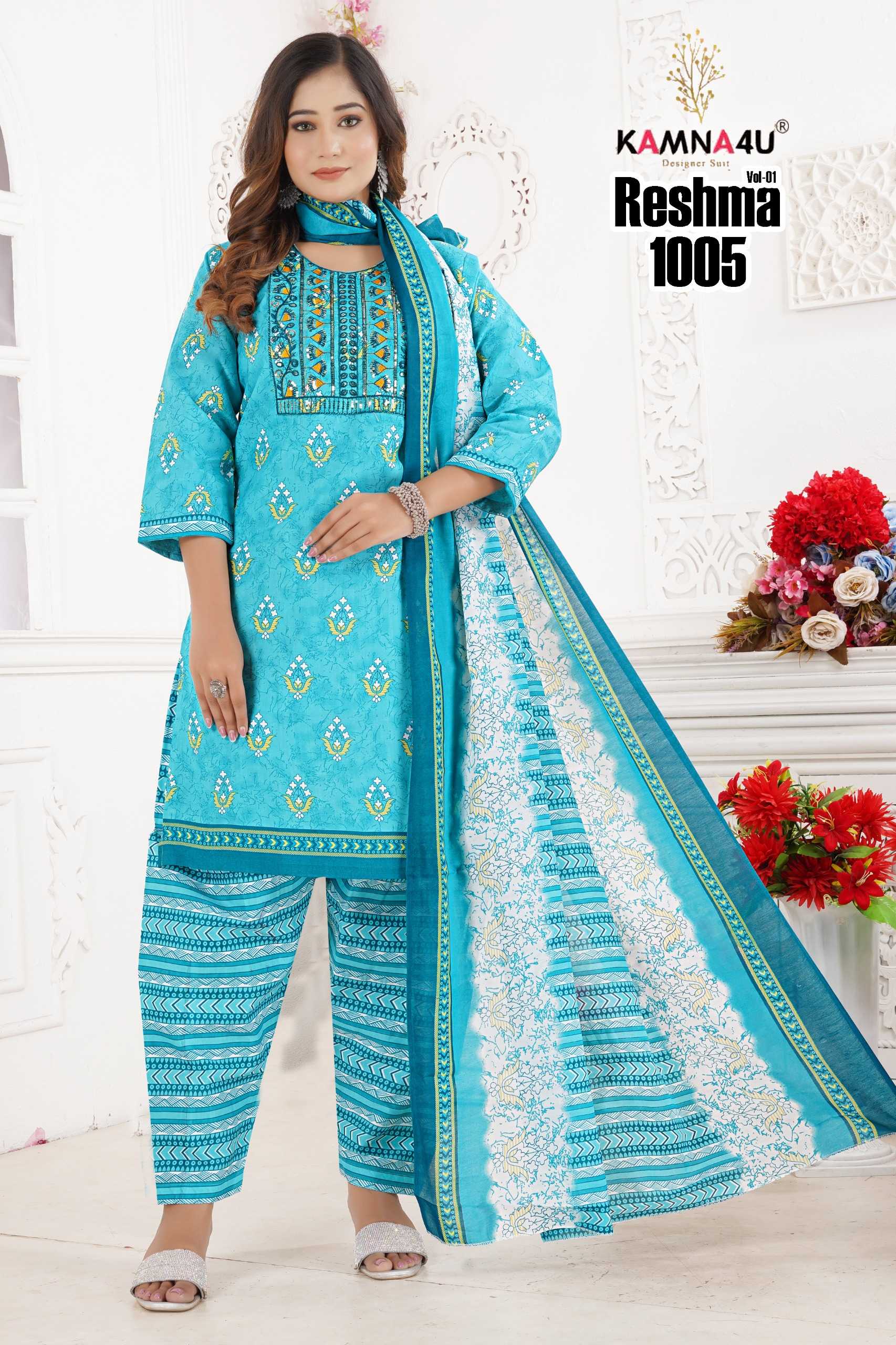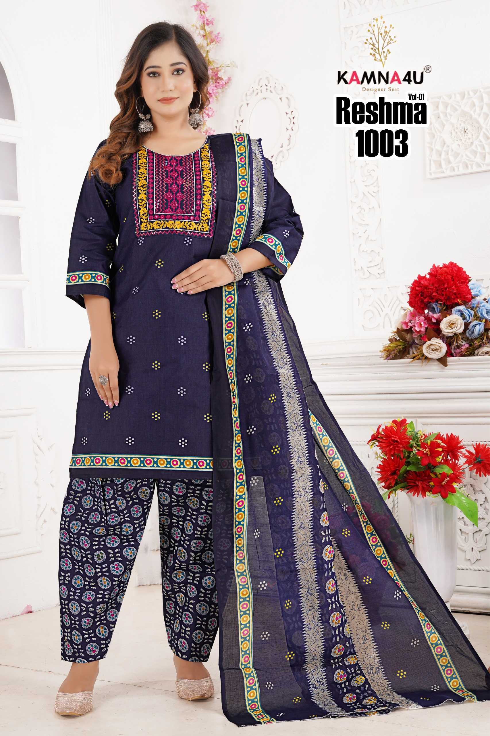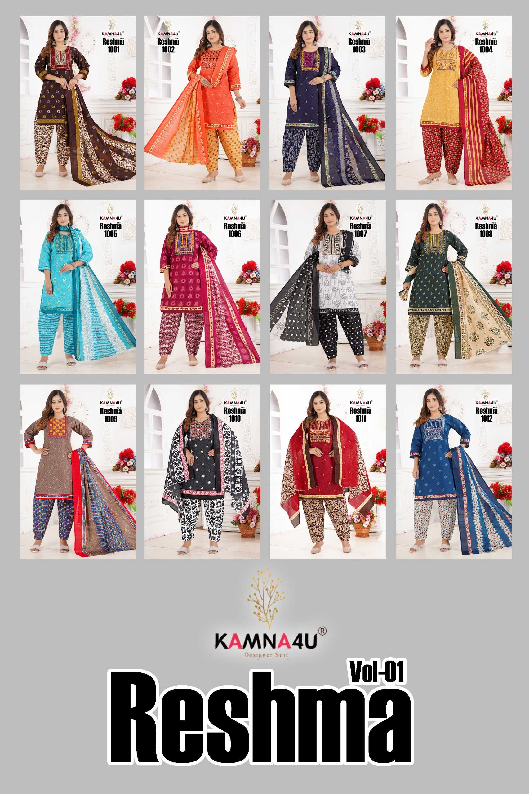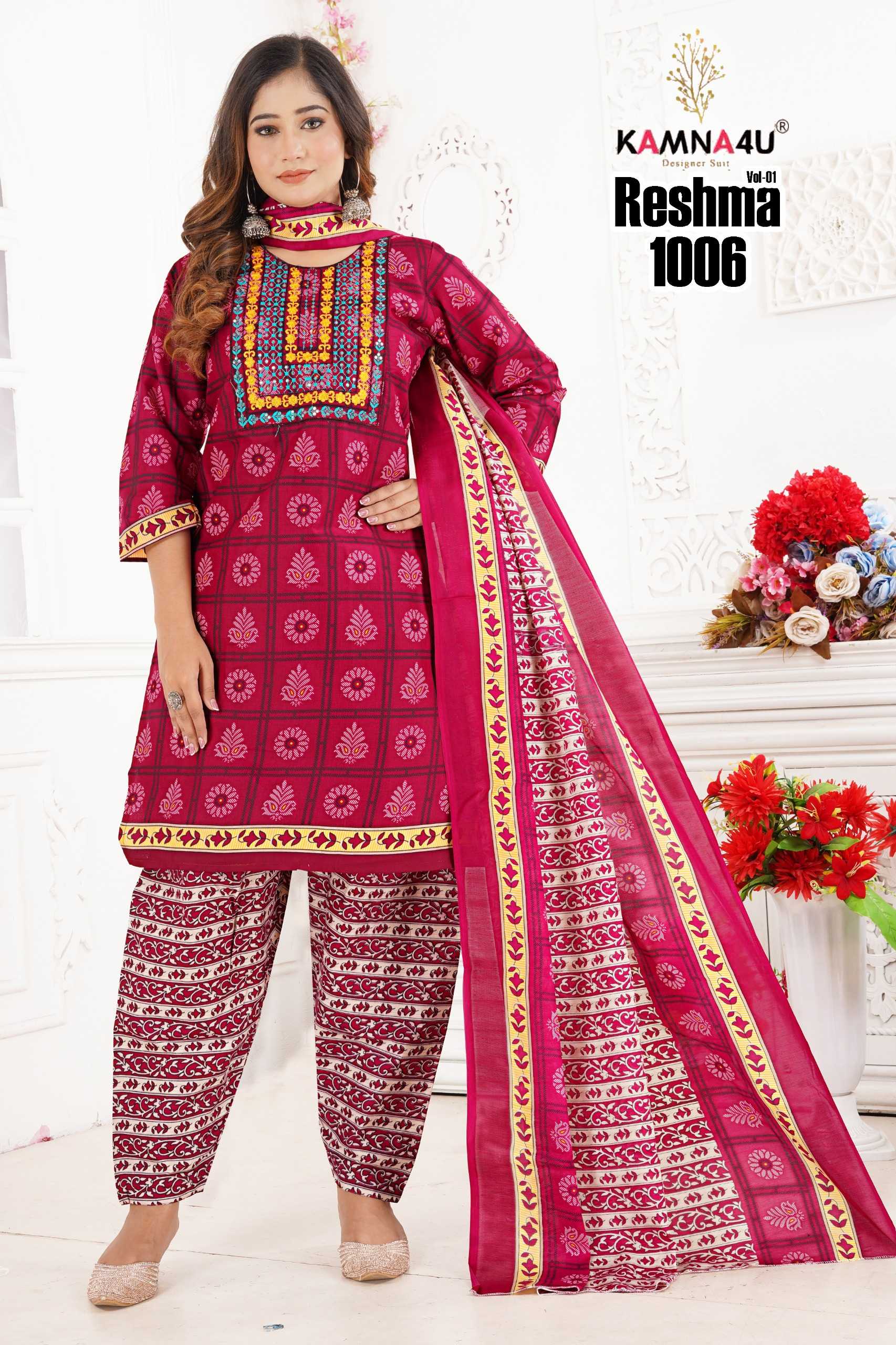 kamna4u reshma vol 1 readymade cotton kurti pant dupatta combo set
