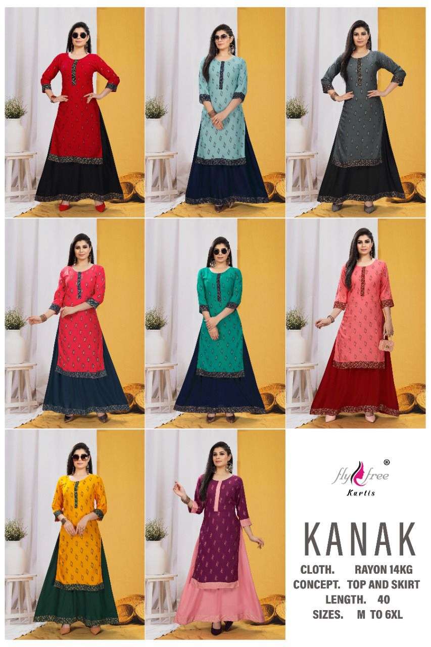 KANAK BY FLY FREE HEAVY RAYON KURTI SKIRT CATLOG WHOLESALER BEST RATE
