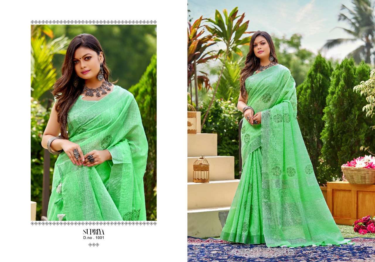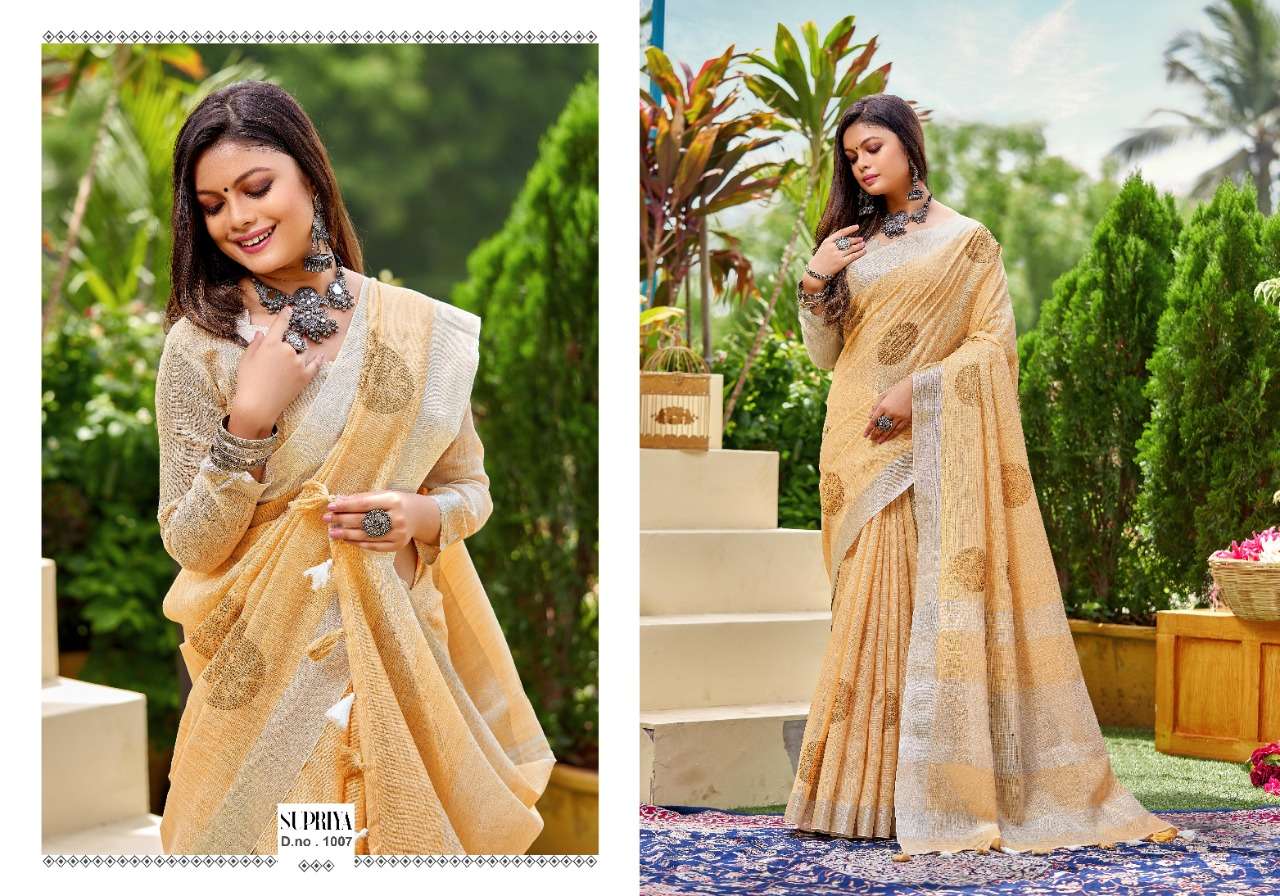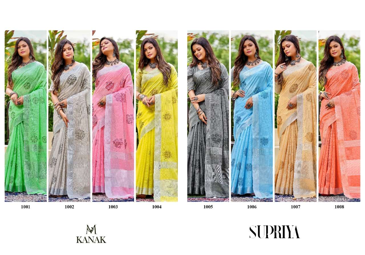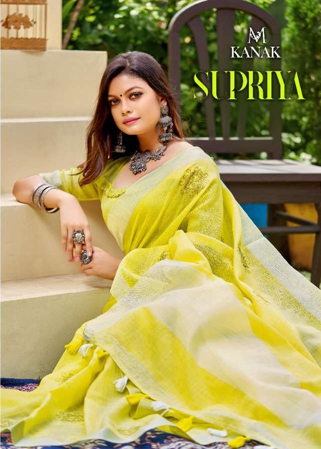 Kanak sarees launch supriya linen cotton fancy summer wear sarees collection
