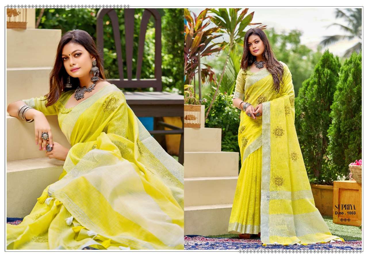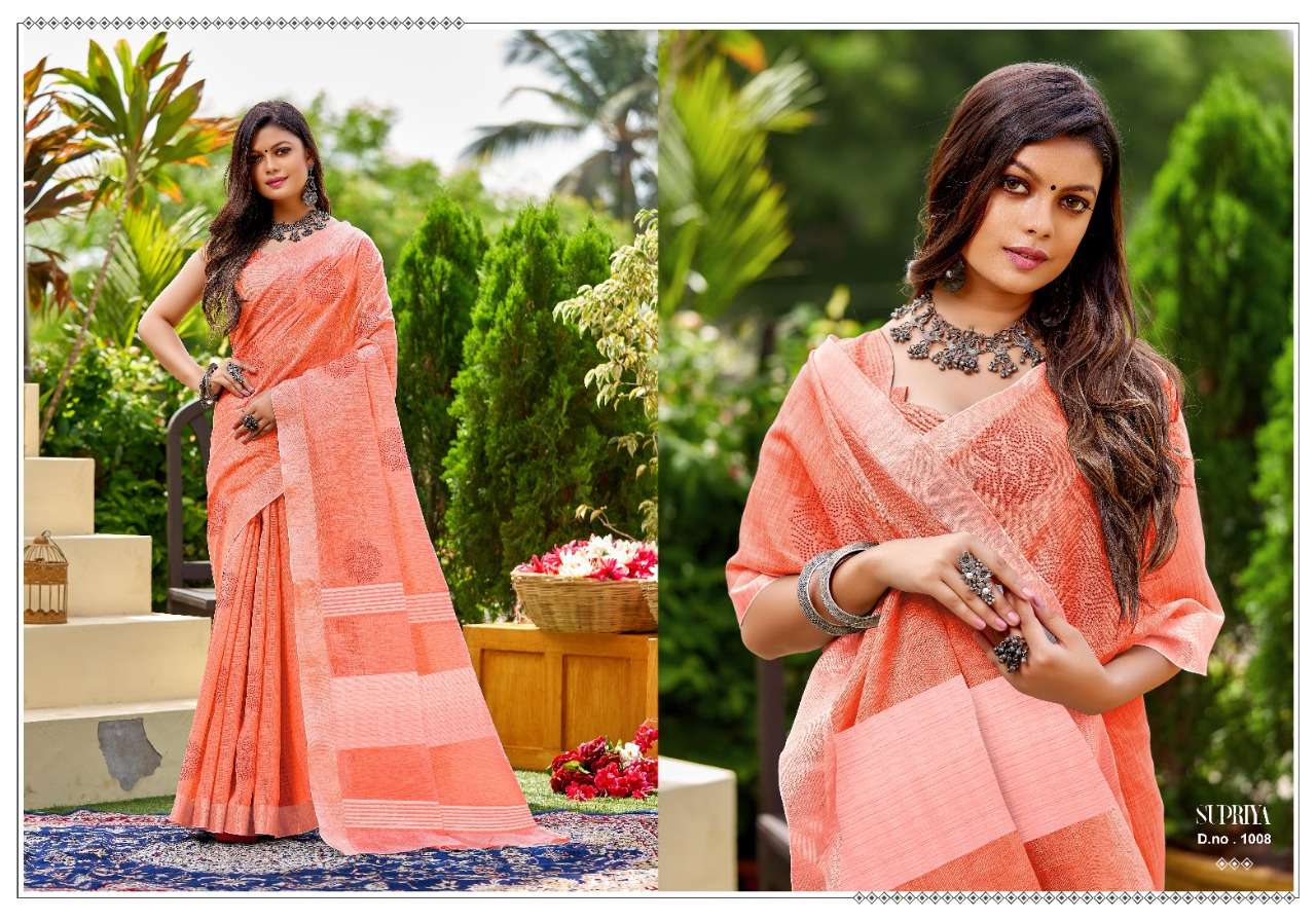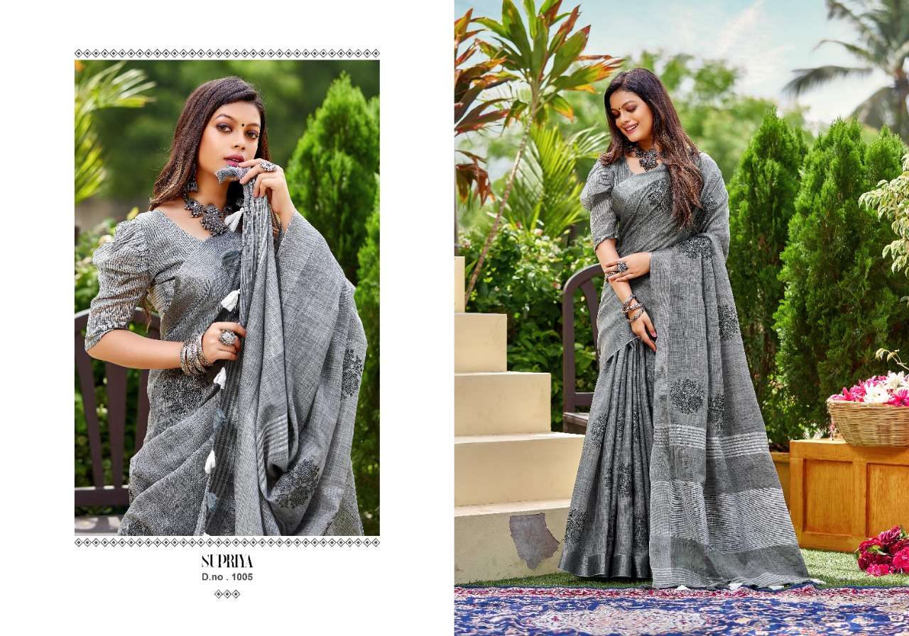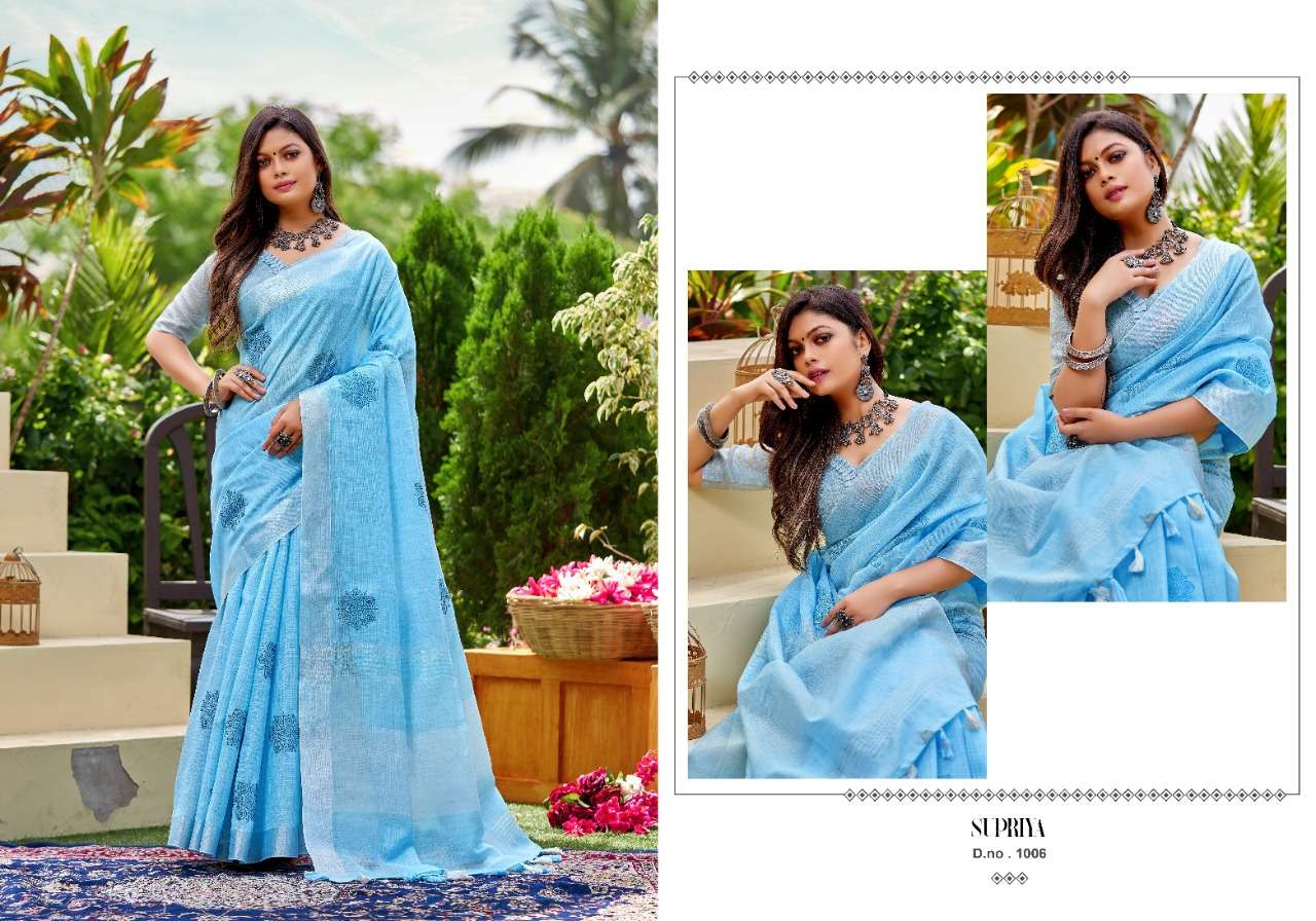 Kanak sarees launch supriya linen cotton fancy summer wear sarees collection
