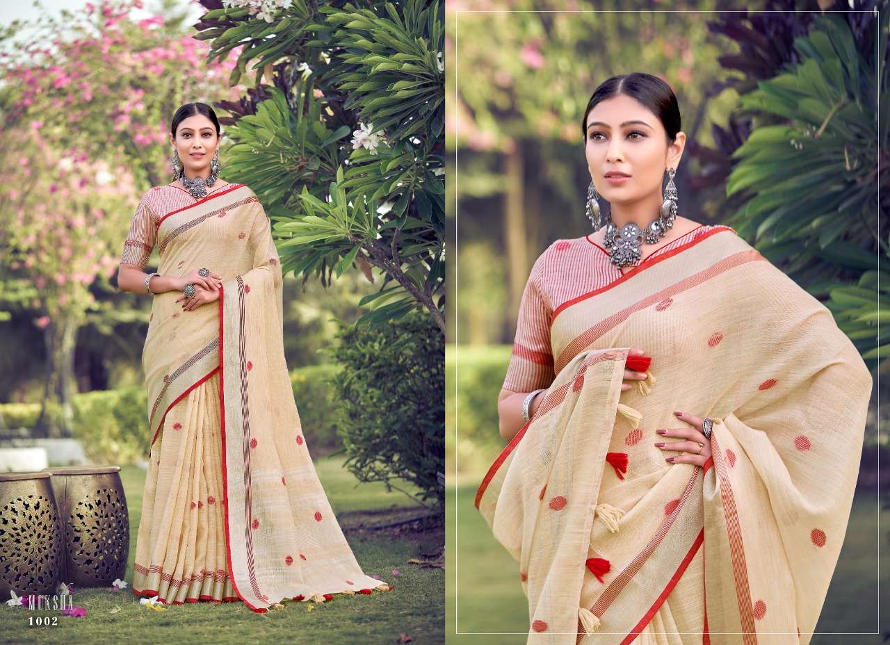 kanak sarees present moksha linen cotton fancy sarees at krishna wholesaler