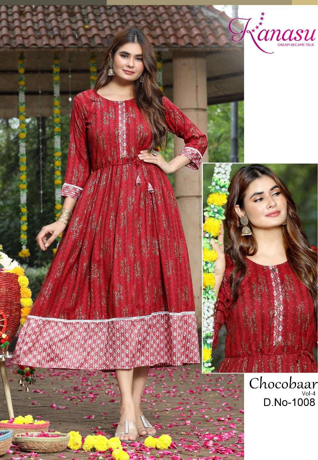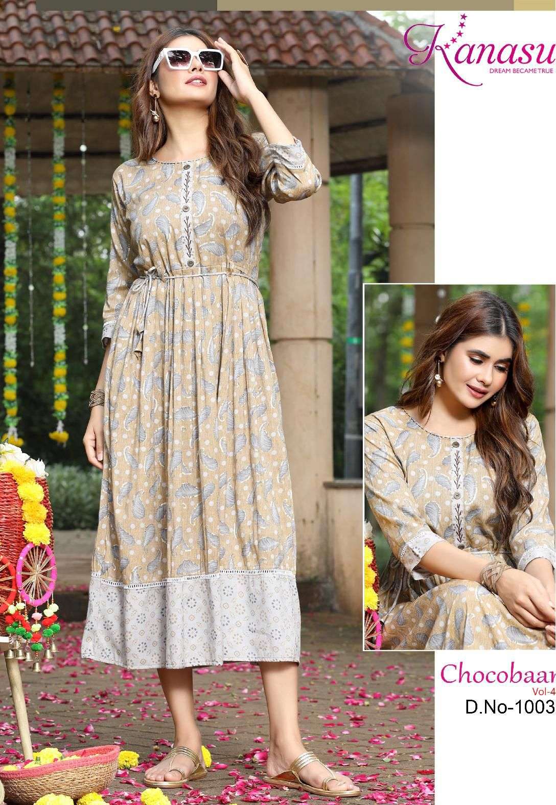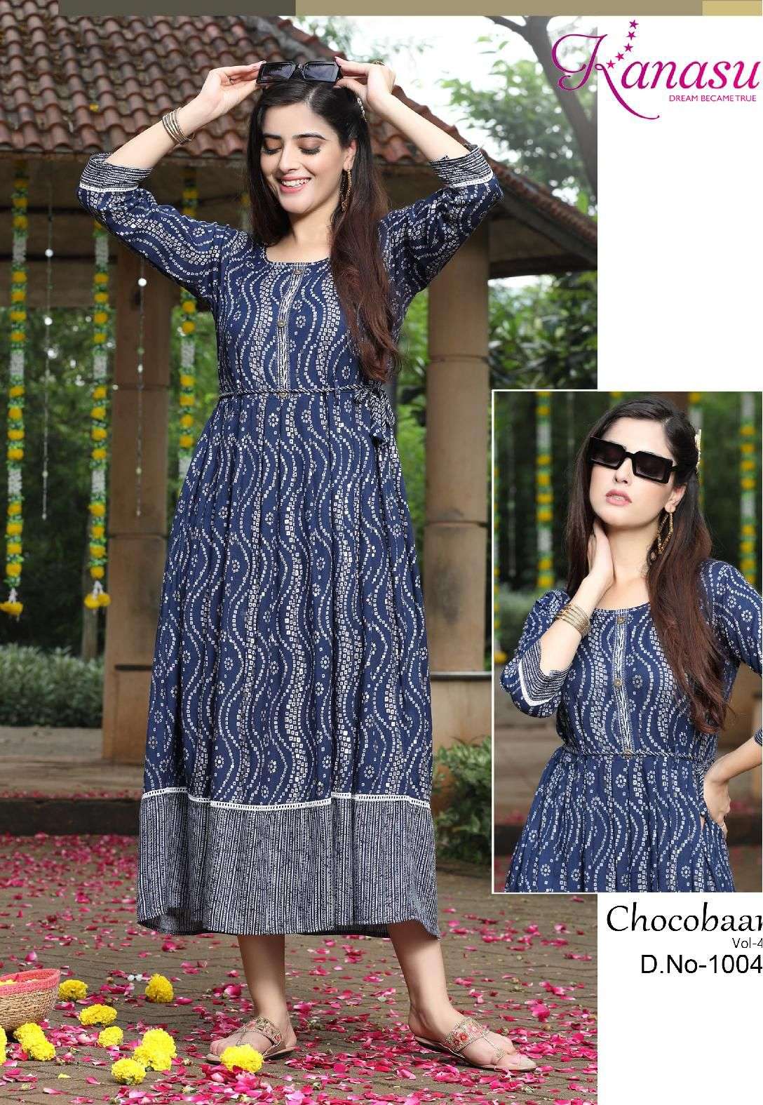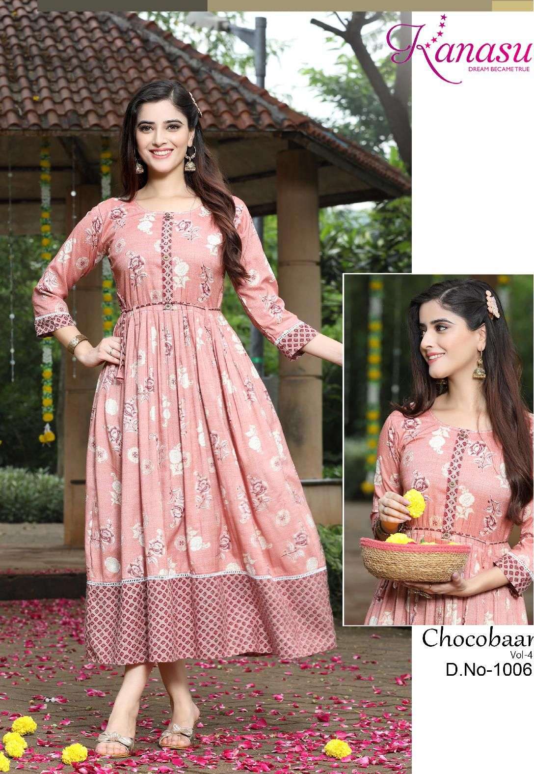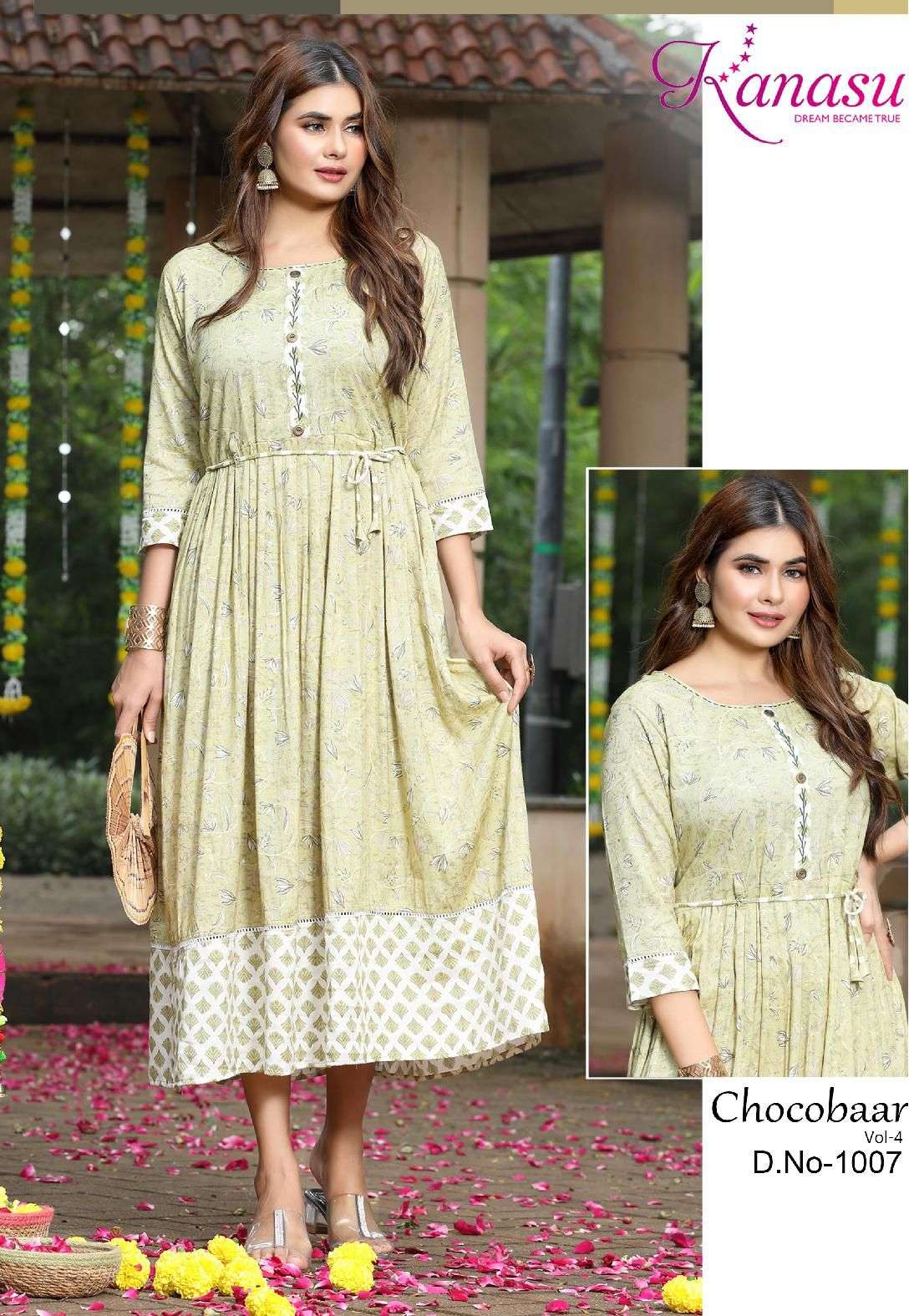 Dear Customers, Welcome to KANASU (KURTI) .., We are introducing KANASU new catalog 📕Catalogue:- CHOCOBAAR-4 👗cloth :- * HEAVY REYON CAPSULE PRINT (14kg QUALITY)* ✅Concept FLAIR WITH DORI & HAND WORK Length :- 50 FLAIR :- 45 Rate : - 615/- Size:- * M L XL XXL 3XL*