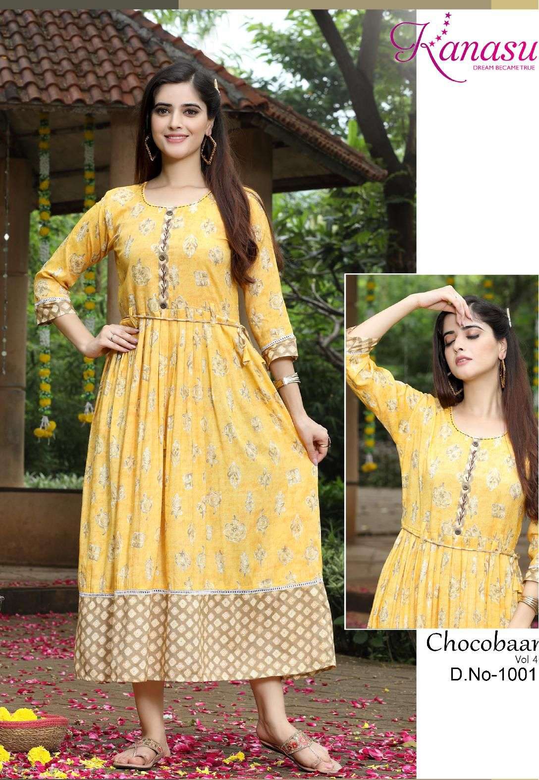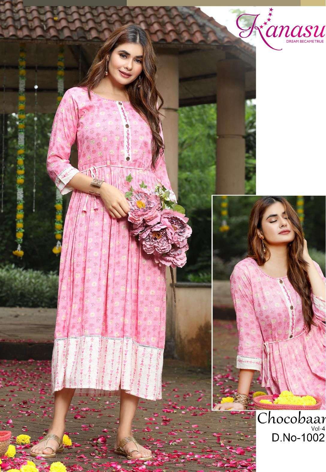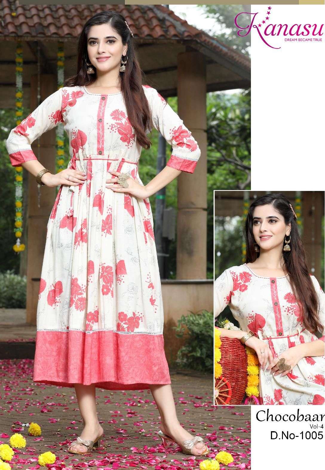 KANASU CHOCOBAAR-4 HEAVY REYON CAPSULE PRINT KURTI CATYALOG WHOLESALER BEST RATE