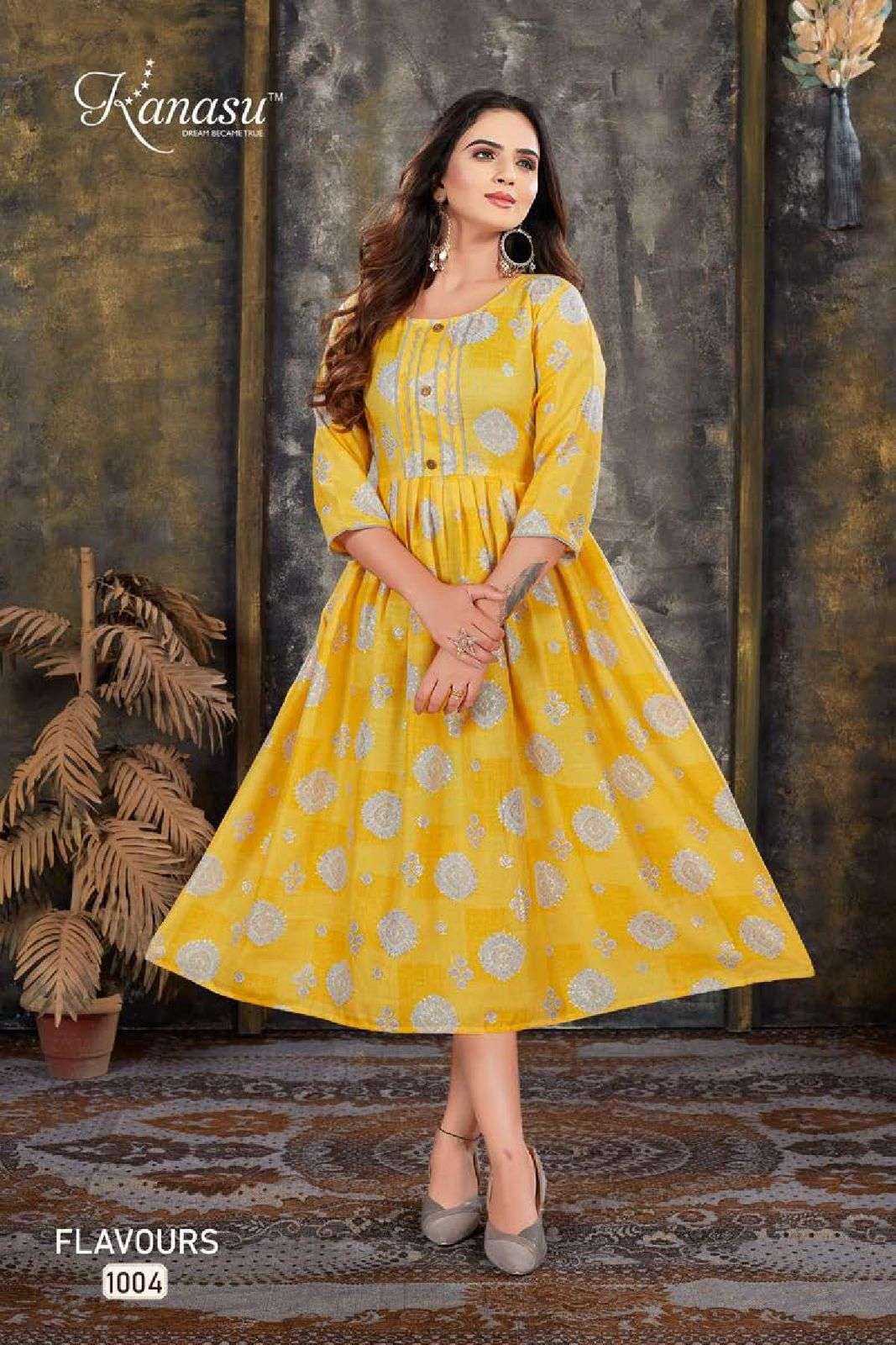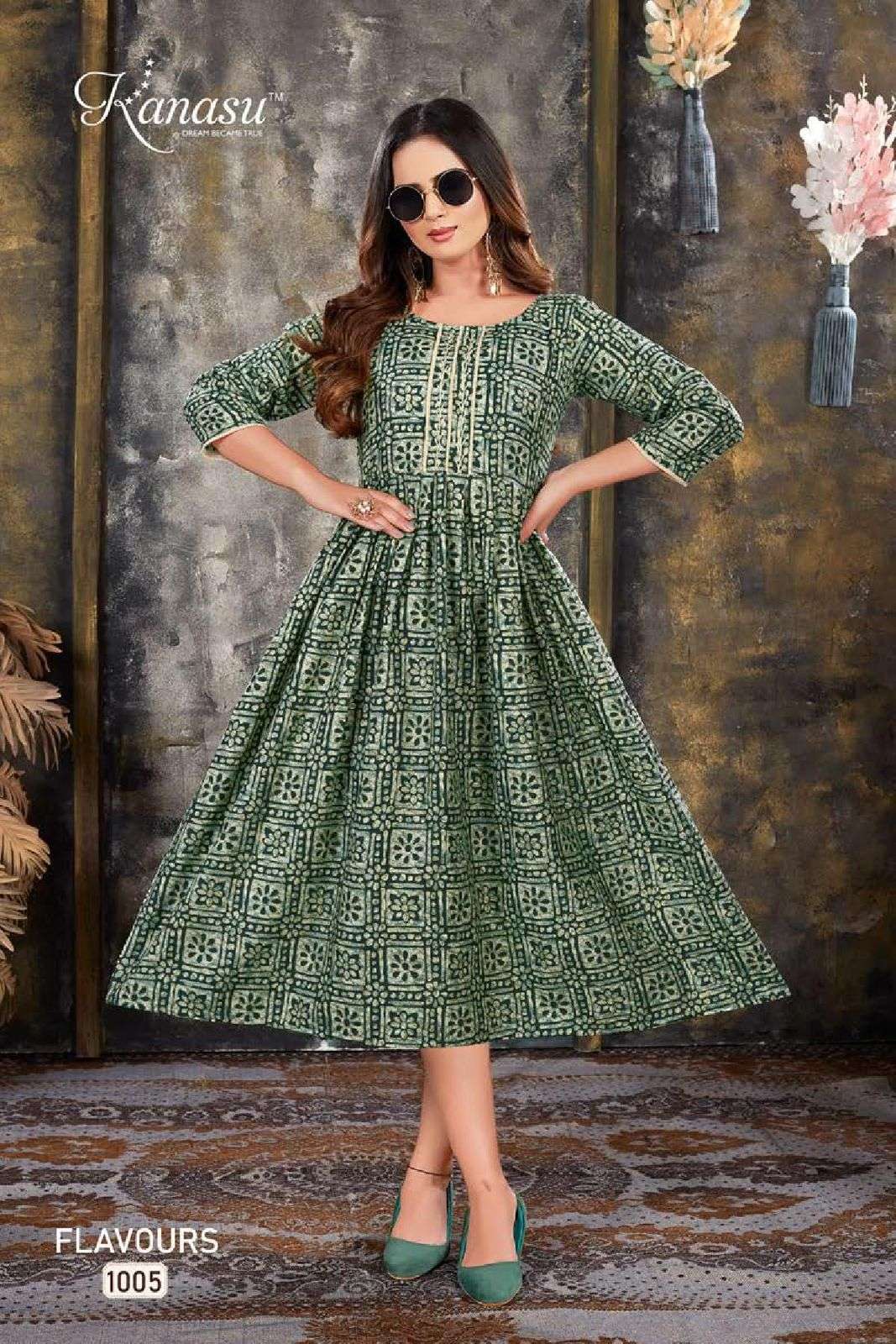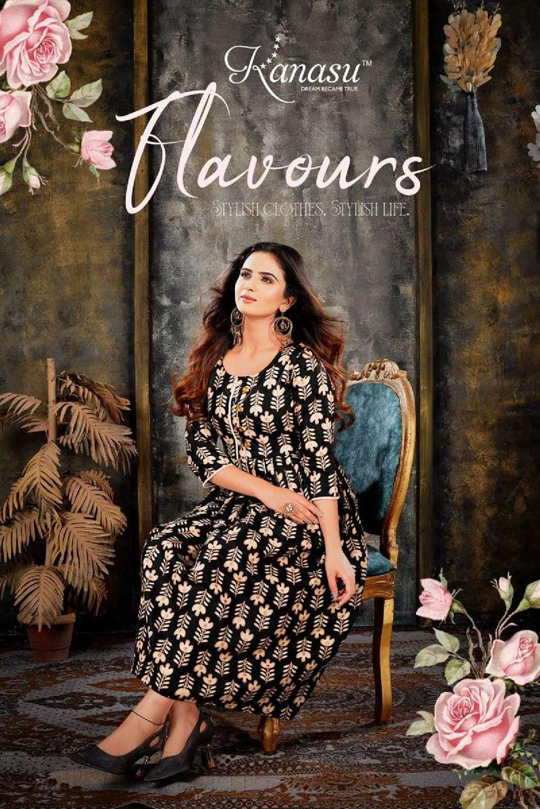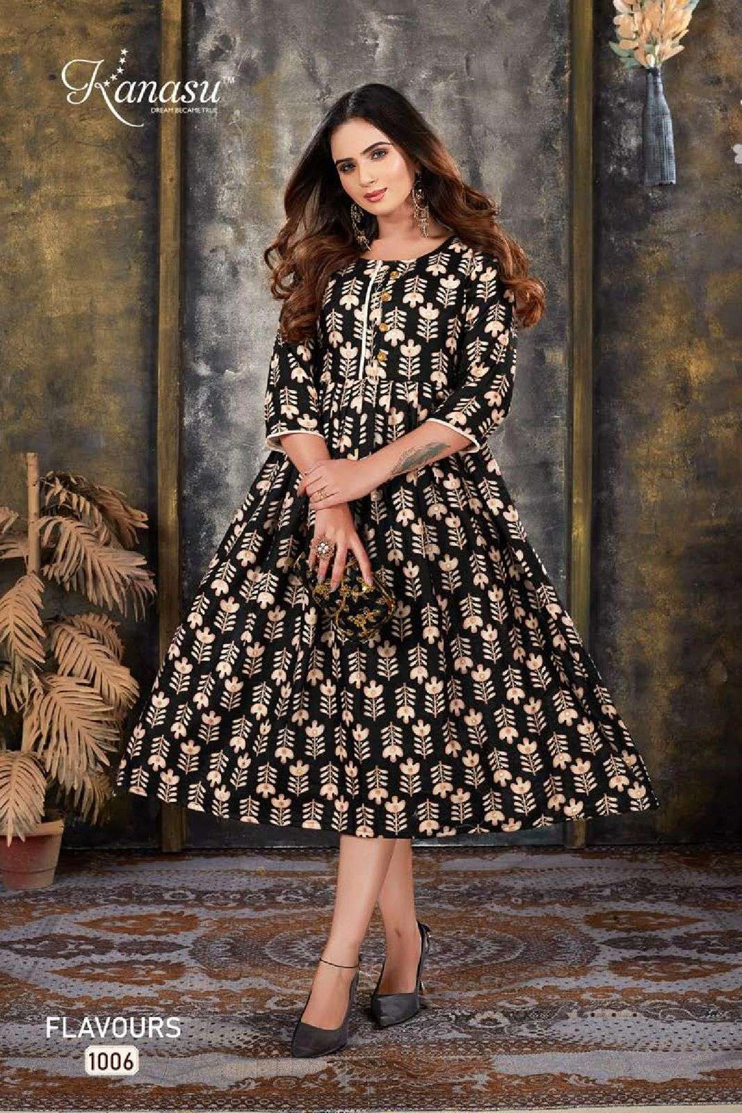 KANASU FLAVOURS HEAVY D-CAPSULE REYON PRINT KURTI CATALOG WHOLESALER BEST RATE