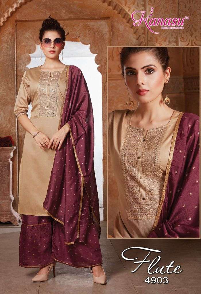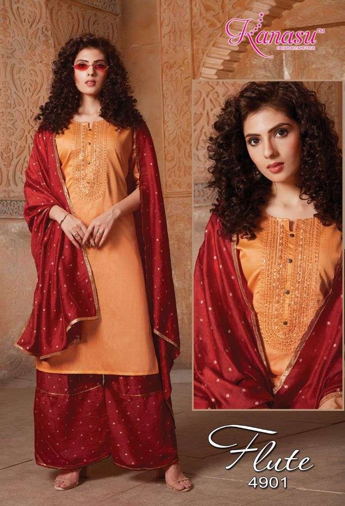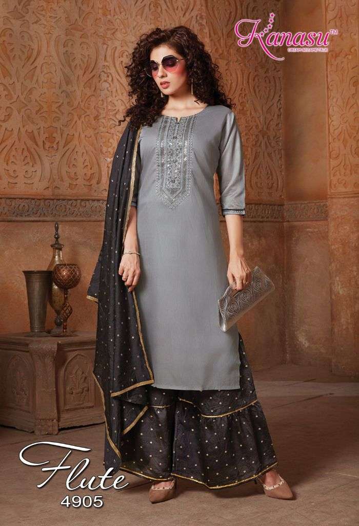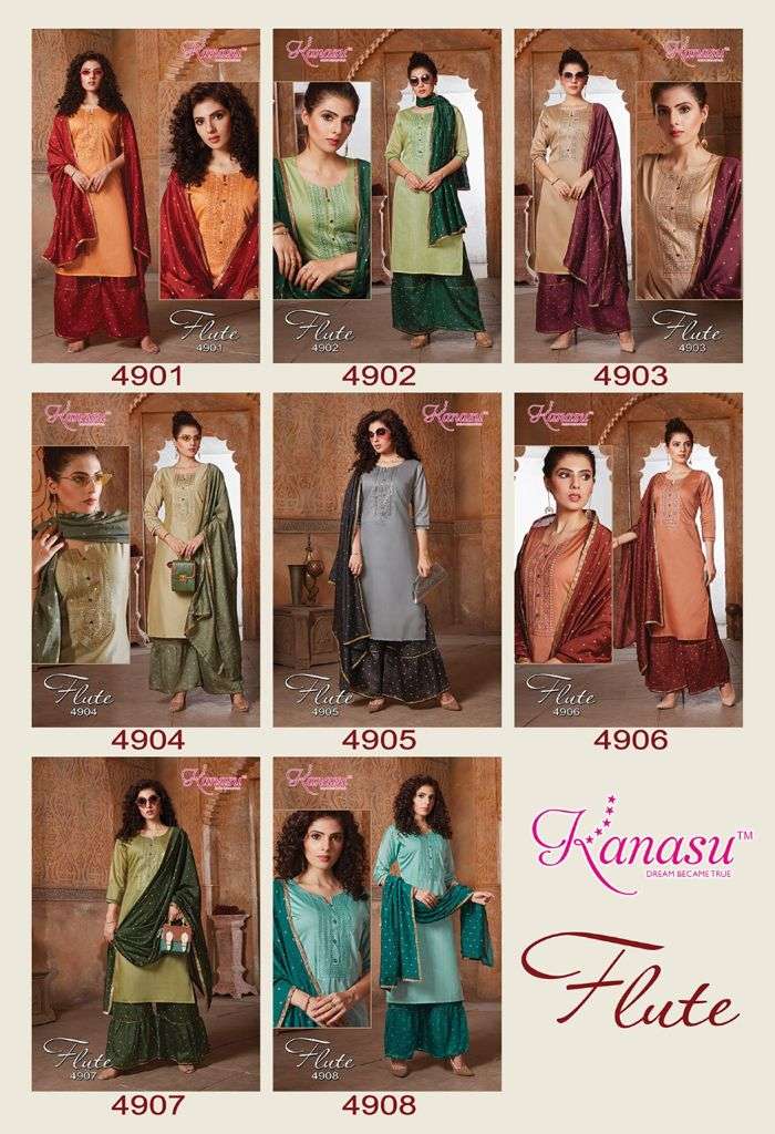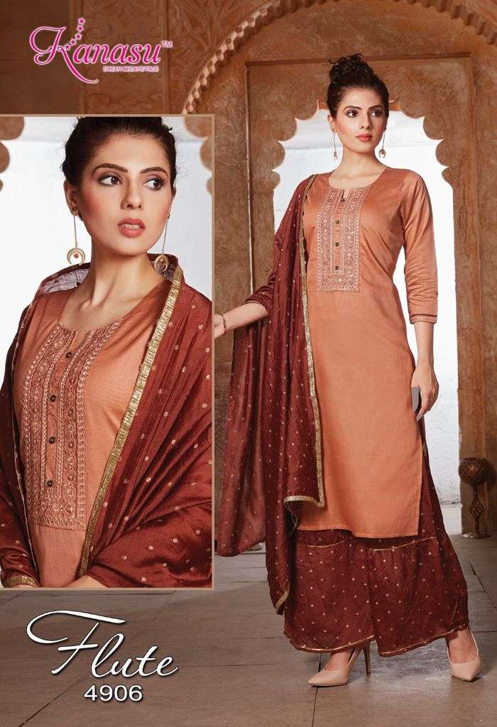 | Other Details | KANASU KURTI We are introducing KANASU 'S new catalog _ Catalogue:- FLUTE cloth :- DAIBLE SILK Bottom :- *DAIBLE SILK BUTTI SHARARA PATTERN * DUPATTA:- DAIBLE BUTTI SILK Concept :- *TOP COMPUTER  NECK SEQUENCE WITH SLEEVES WORK LENGTH TOP:-42 LENGTH SHARARA:-40 Size:-  M L XL 2XL AVAILABLE 08 DESIGNS CATALOGUE |