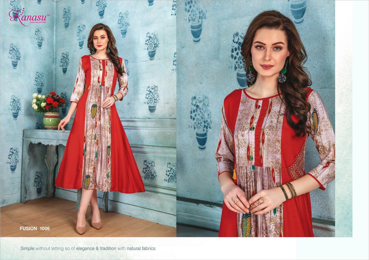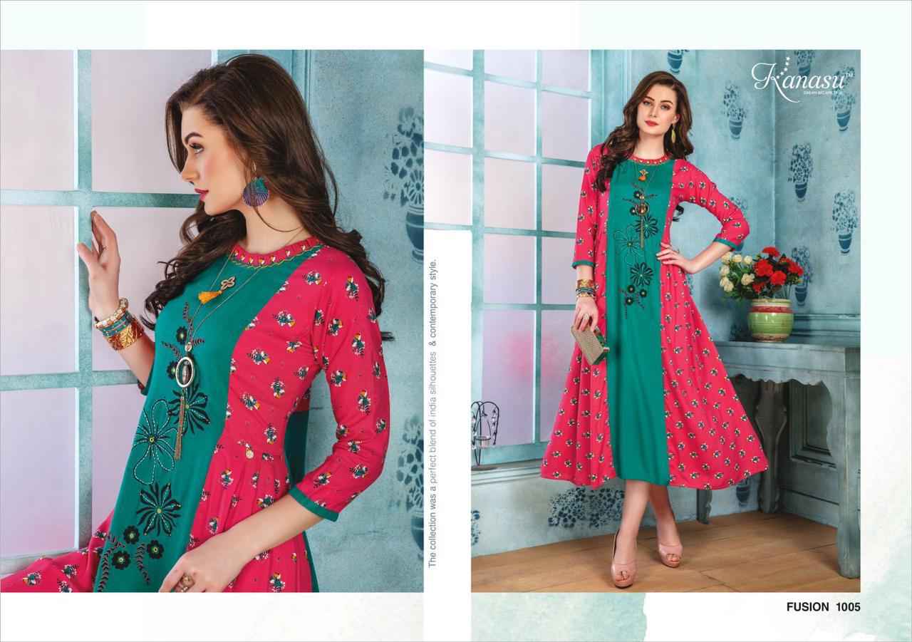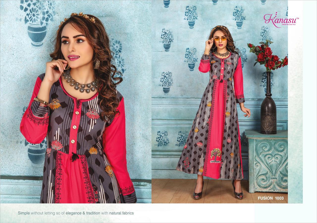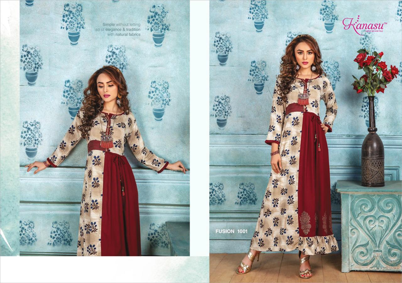 Kanasu Launch Fusion Rayon Print Long Looking Attractive Kurti Clothing Store