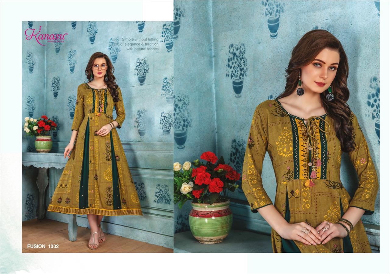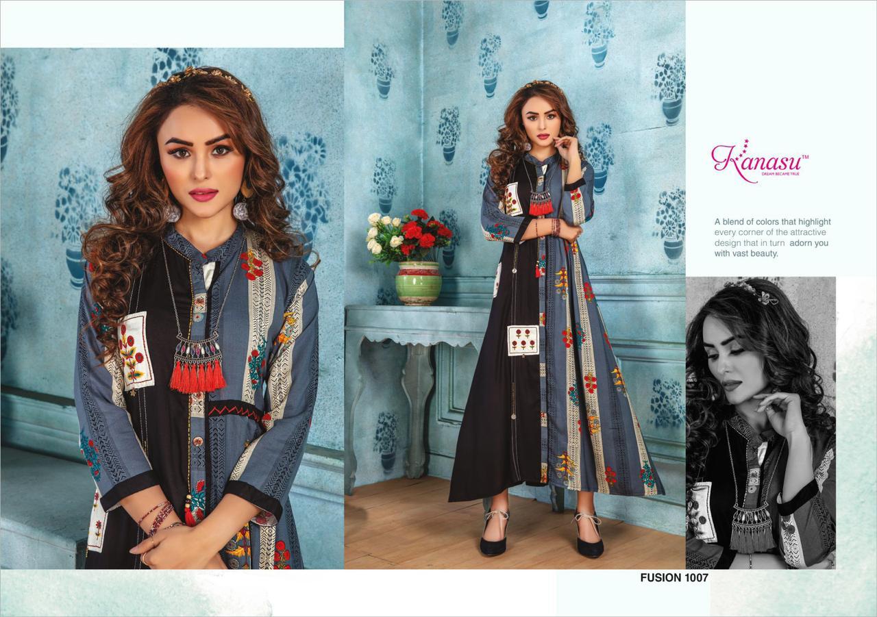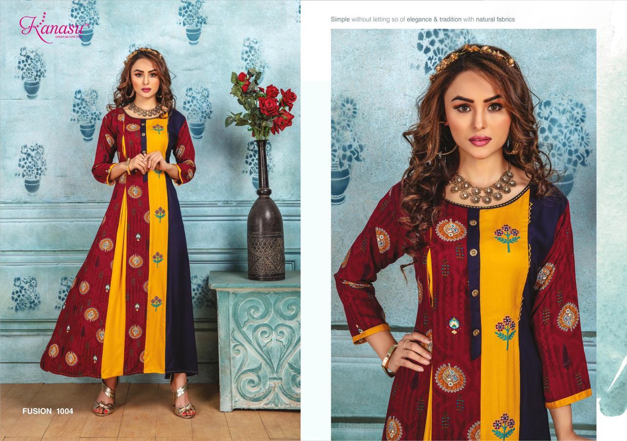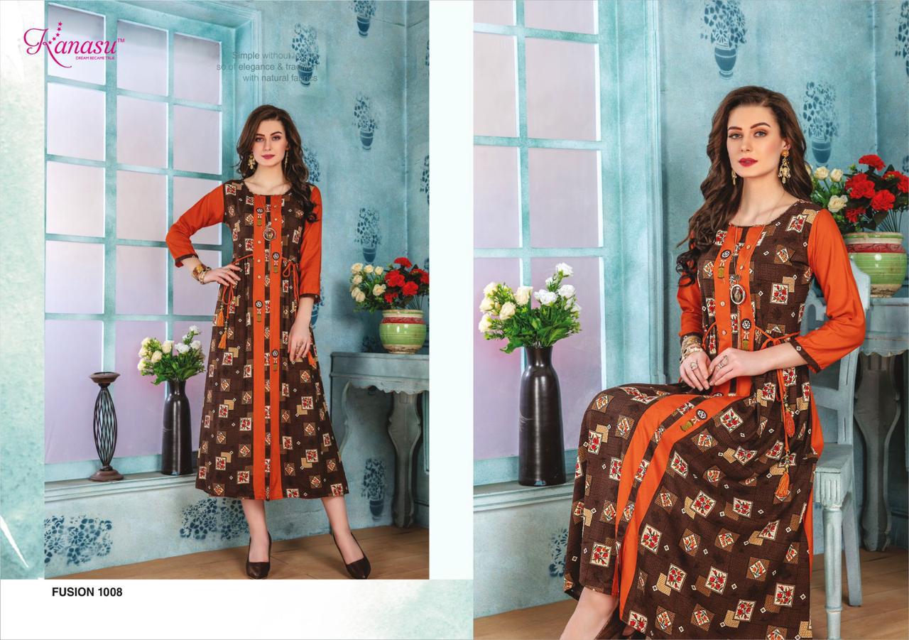 Kanasu Launch Fusion Rayon Print Long Looking Attractive Kurti Clothing Store