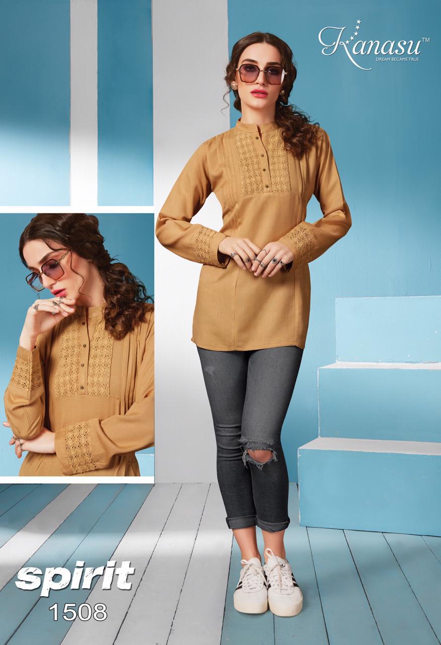 Greeting from KANASU KURTI We are introducing KANASU S new catalog _📕Catalogue:- SPIRIT 👗cloth :- REYON FLEX (14KG) ✅Concept :- * SHORT TOP WITH STICHING PATTERN* Size:- S M L XL 2XL AVAILABLE 8 DESIGNS CATALOGUE RATE - 460/- DELIVERY:- READY Always with you...👍 Team KANASU THANKS SIR/MADAM.. |