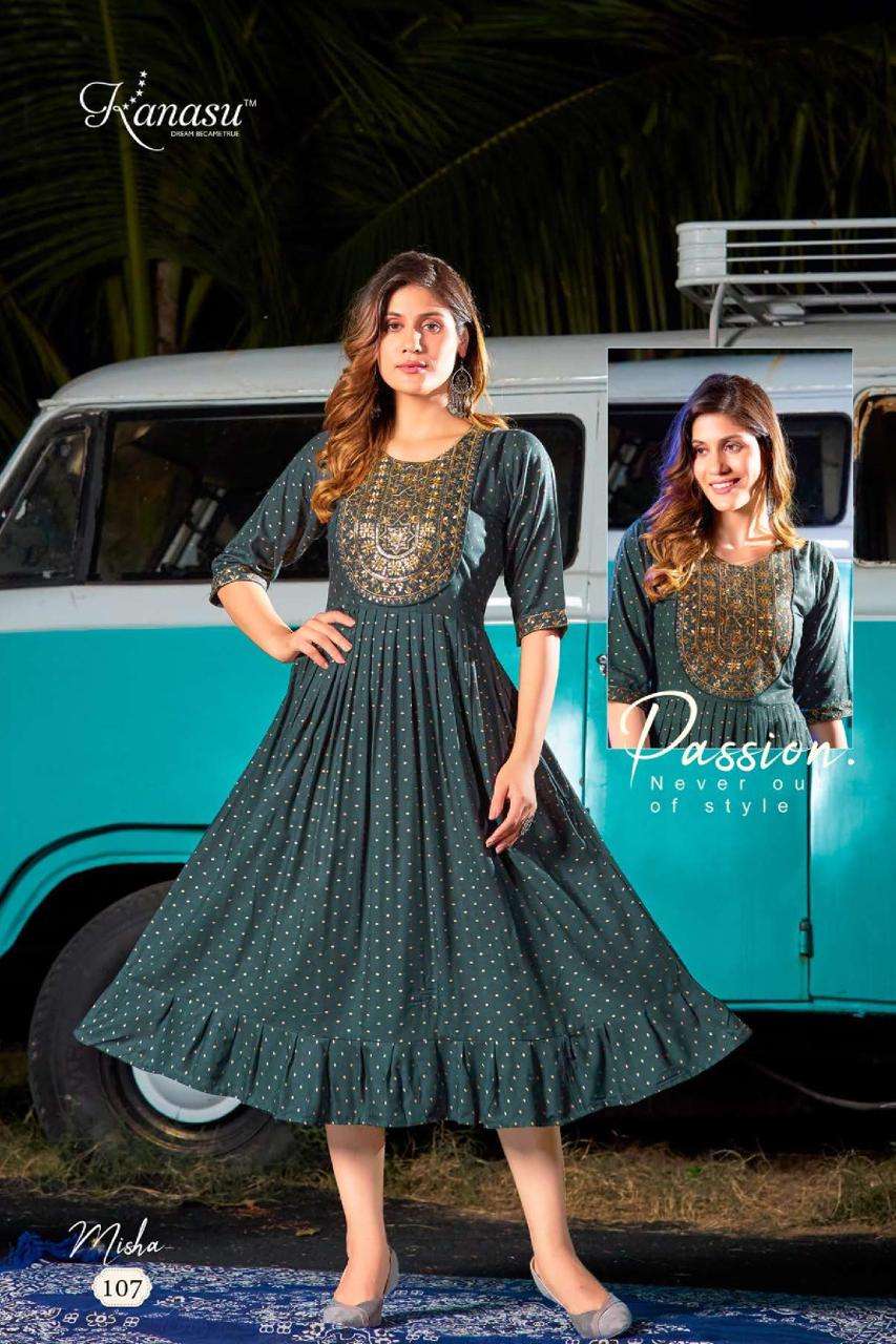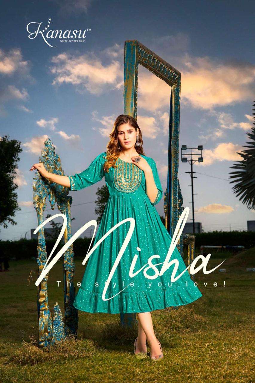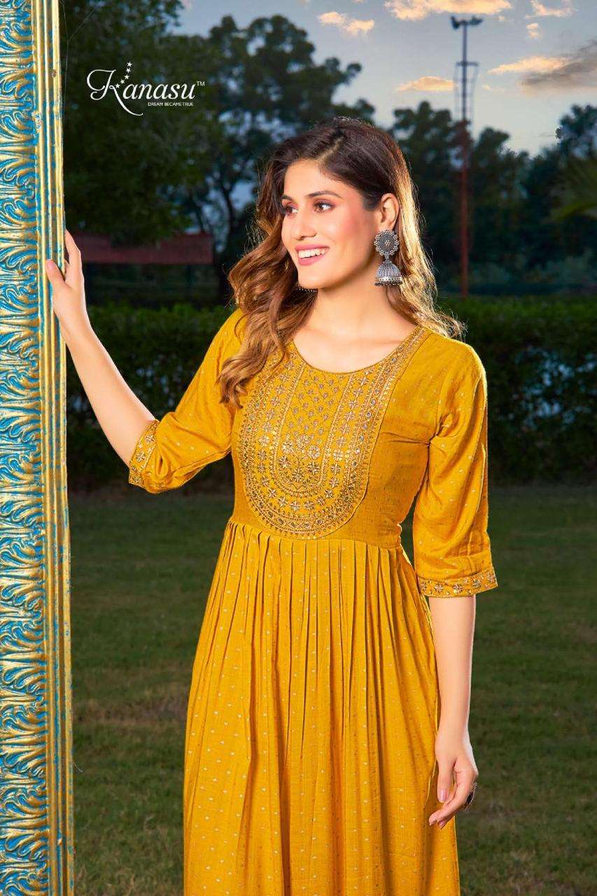 KANASU MISHA HEAVY REYON SLUB WITH BUTTI PRINT (14kg QUALITY) KURTI CATALOG WHOESALER BEST RATE