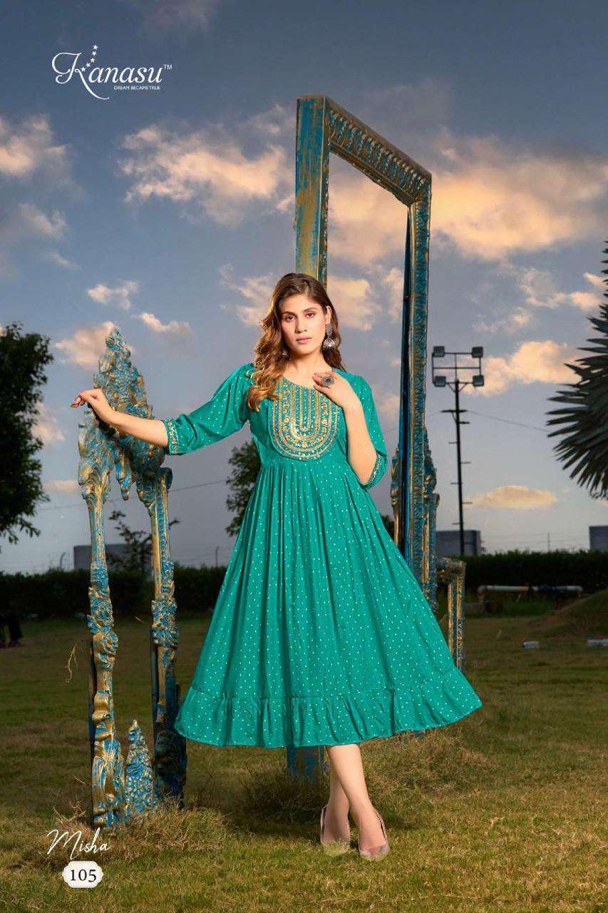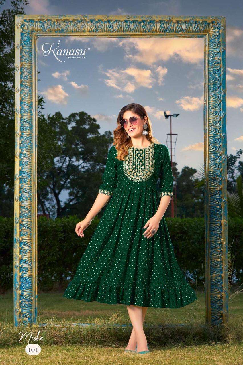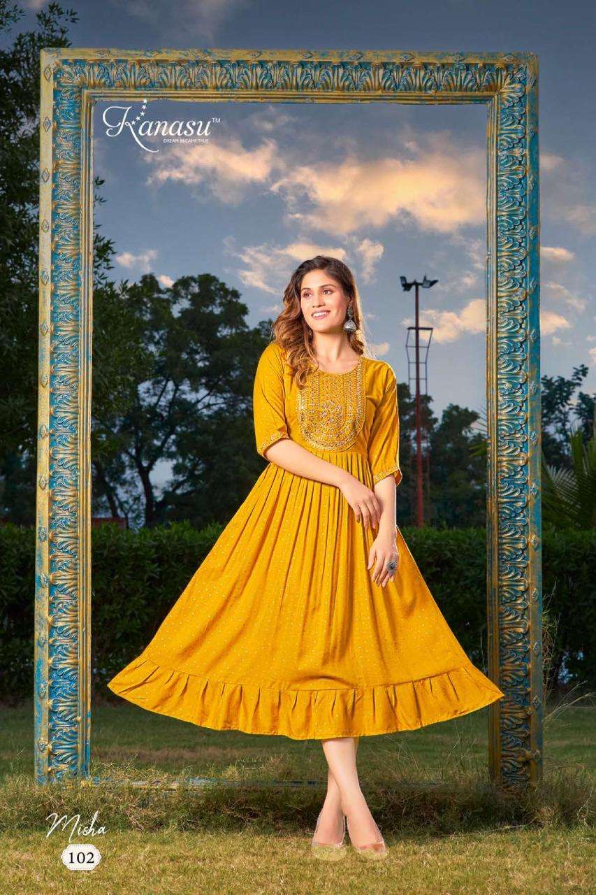 KANASU MISHA HEAVY REYON SLUB WITH BUTTI PRINT (14kg QUALITY) KURTI CATALOG WHOESALER BEST RATE