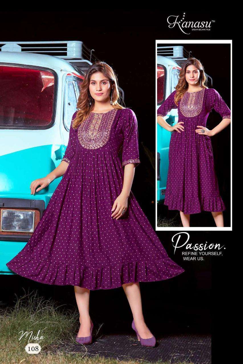 Dear Customers, Welcome to KANASU (KURTI) .., We are introducing KANASU new catalog 📕Catalogue:- MISHA 👗cloth :- * HEAVY REYON SLUB WITH BUTTI PRINT (14kg QUALITY)* ✅Concept *NECK EMBROIDERYWORK & LONG & FLAIR PATTERN * Length :- 47 MINIMUM Size:- M L XL XXL Rate:- 495/- AVAILABLE 8 DESIGNS CATALOGUE