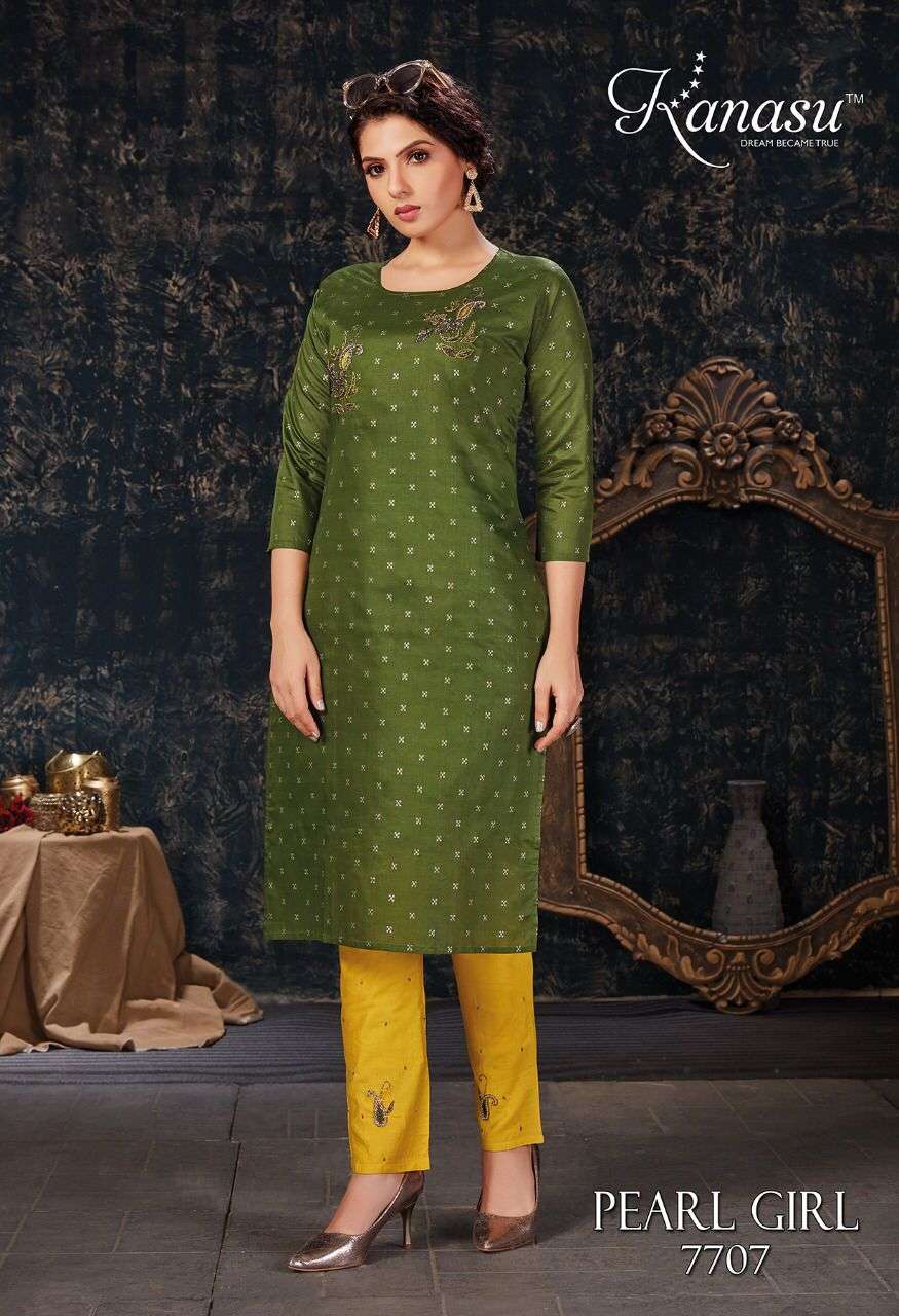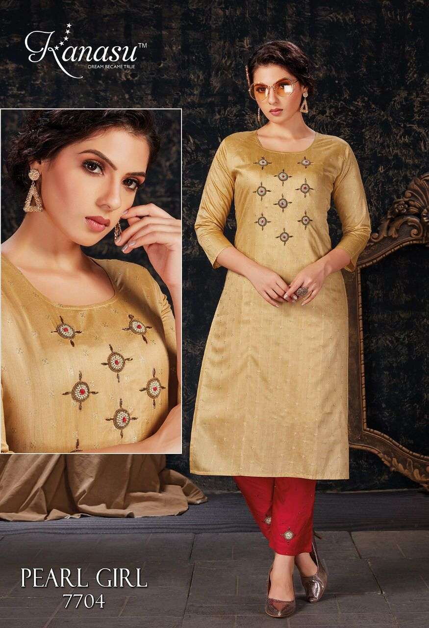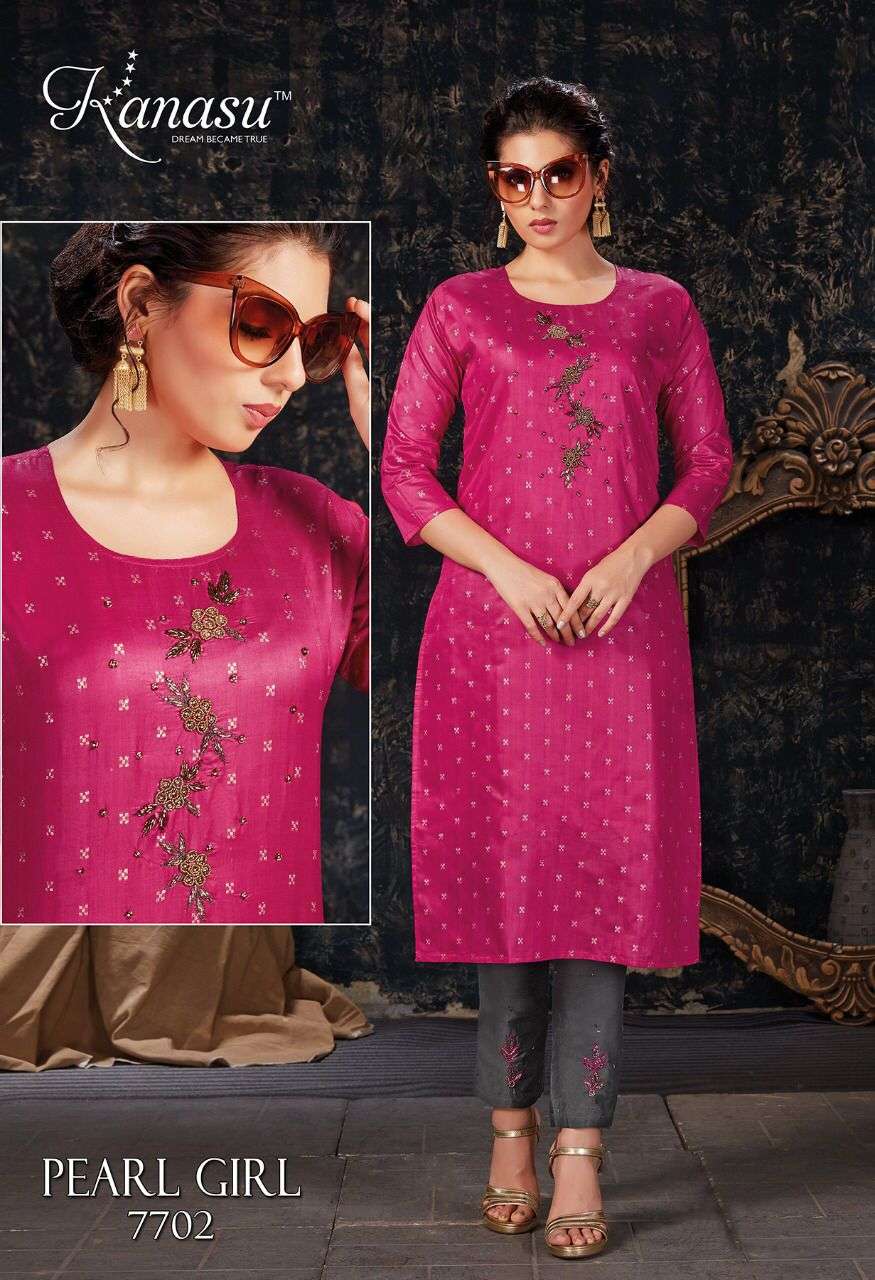 Dear Customers, Welcome to KANASU (KURTI) .., We are introducing KANASU new catalog 📕Catalogue:- *PEARL GIRL * 👗CLOTH TOP:- *HEAVY DIABLE CHANDERI SILK BUTTI PENT : - HEAVY DIABLE SILK ✅Concept *STRAIGHT HANDWORK PATTERN WITH lINING TOP LENGTH:- 43 Size:- M L XL XXL RATE :- 765 AVAILABLE 8 DESIGNS CATALOGUE