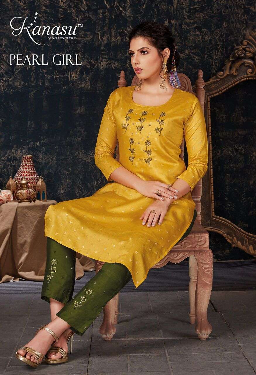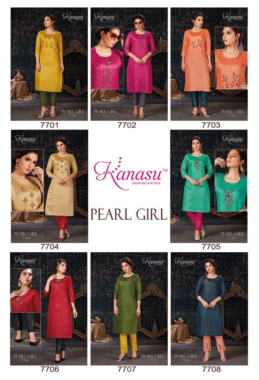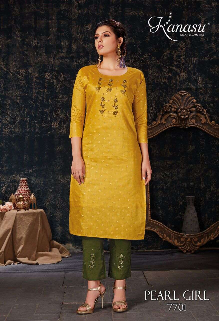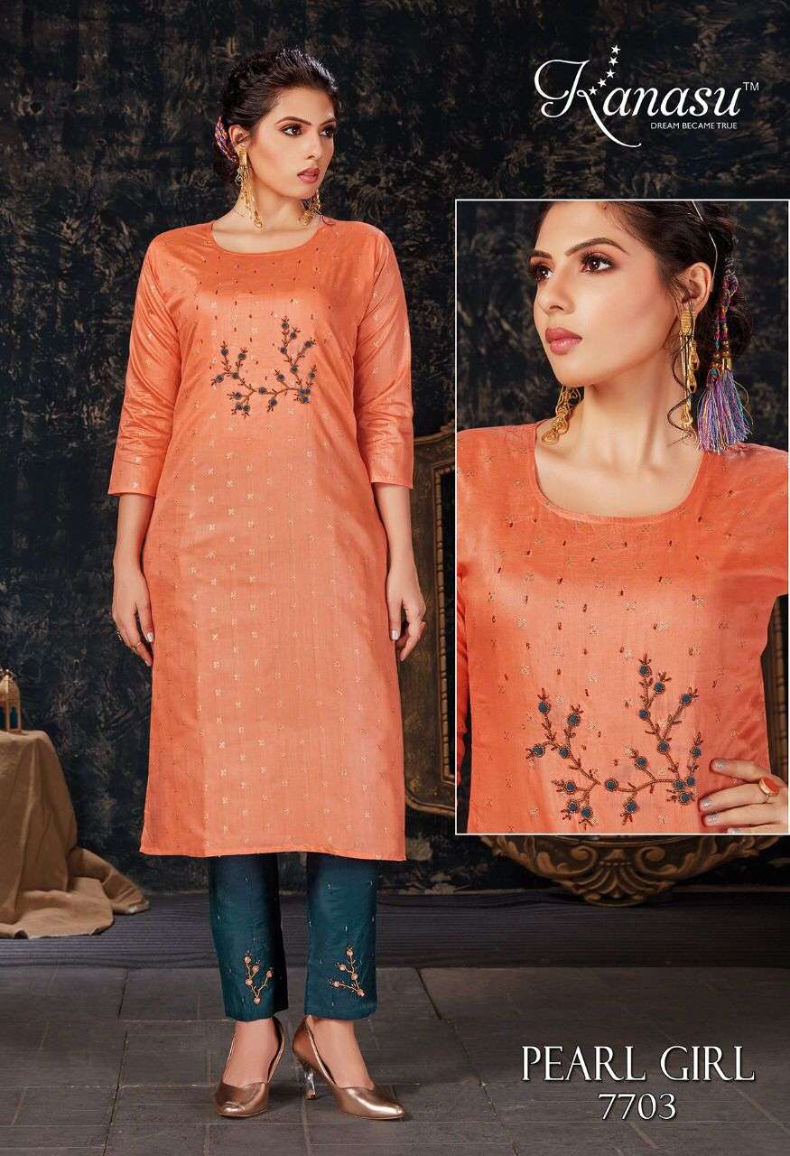 Dear Customers, Welcome to KANASU (KURTI) .., We are introducing KANASU new catalog 📕Catalogue:- *PEARL GIRL * 👗CLOTH TOP:- *HEAVY DIABLE CHANDERI SILK BUTTI PENT : - HEAVY DIABLE SILK ✅Concept *STRAIGHT HANDWORK PATTERN WITH lINING TOP LENGTH:- 43 Size:- M L XL XXL RATE :- 765 AVAILABLE 8 DESIGNS CATALOGUE