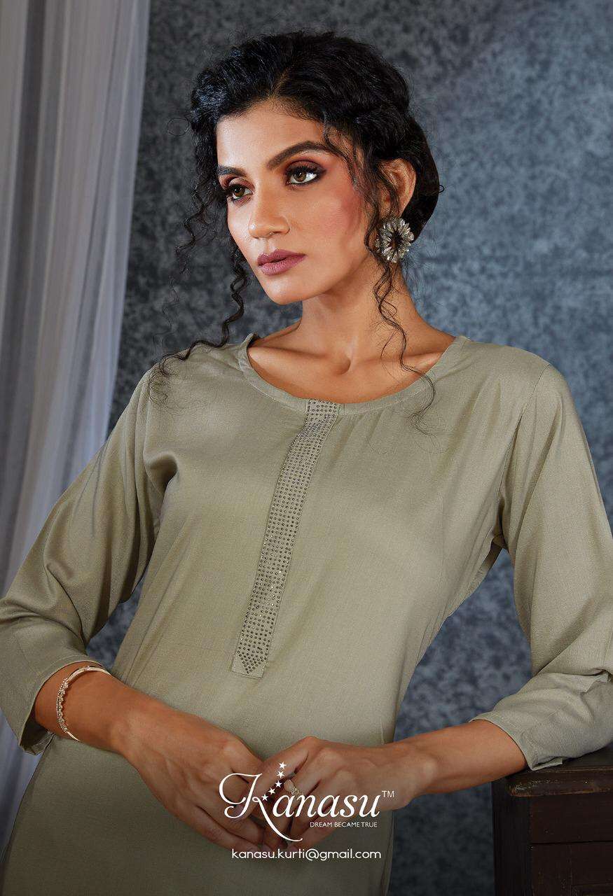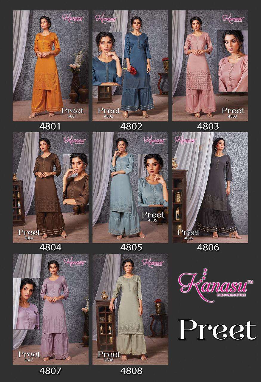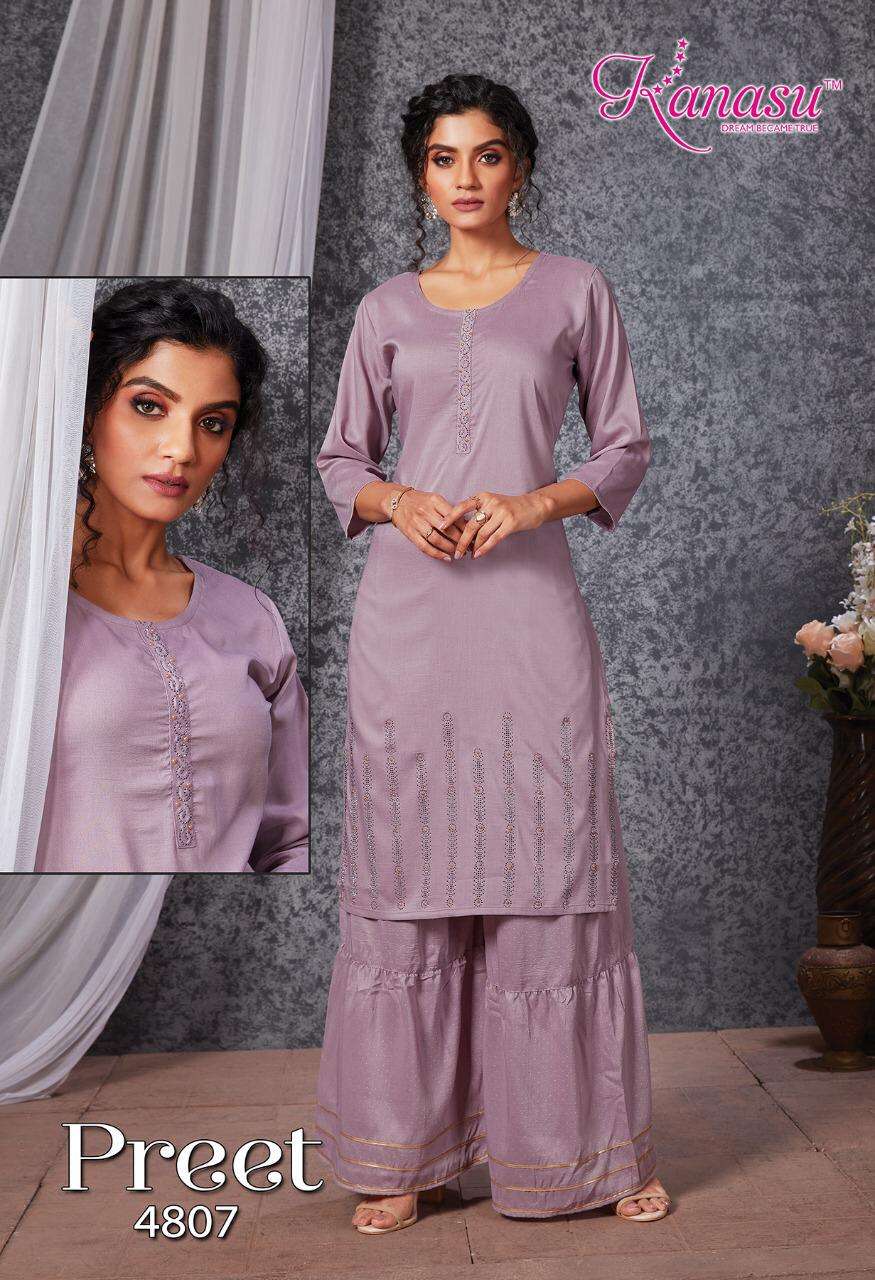 | Other Details | KANASU KURTI We are introducing KANASU 'S new catalog _ Catalogue:- PREET cloth :- CHINON SILK Bottom :- SHARARA (CHINON SILK BUTTI) Concept :- TOP SIROSKI WORK & SHARARA TOP LENGTH:-      41+ BOTTOM LENGTH:- 40 Size:-  M L XL 2XL AVAILABLE 08 DESIGNS CATALOGUE  |
