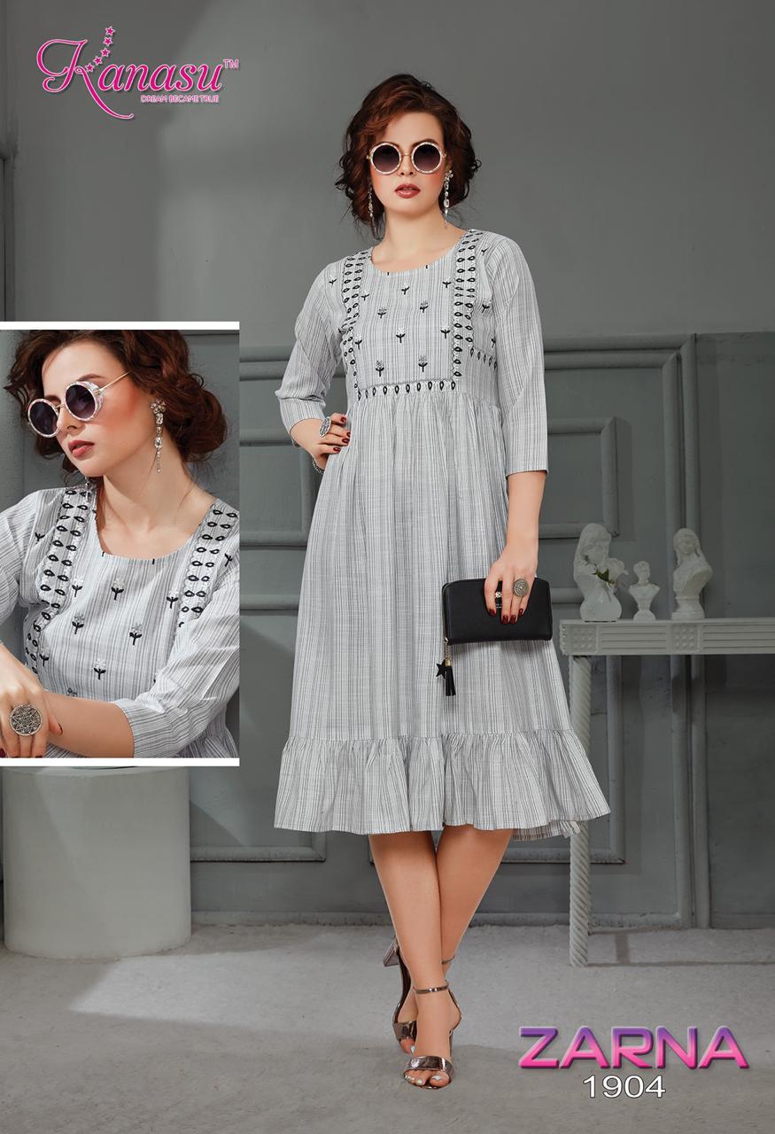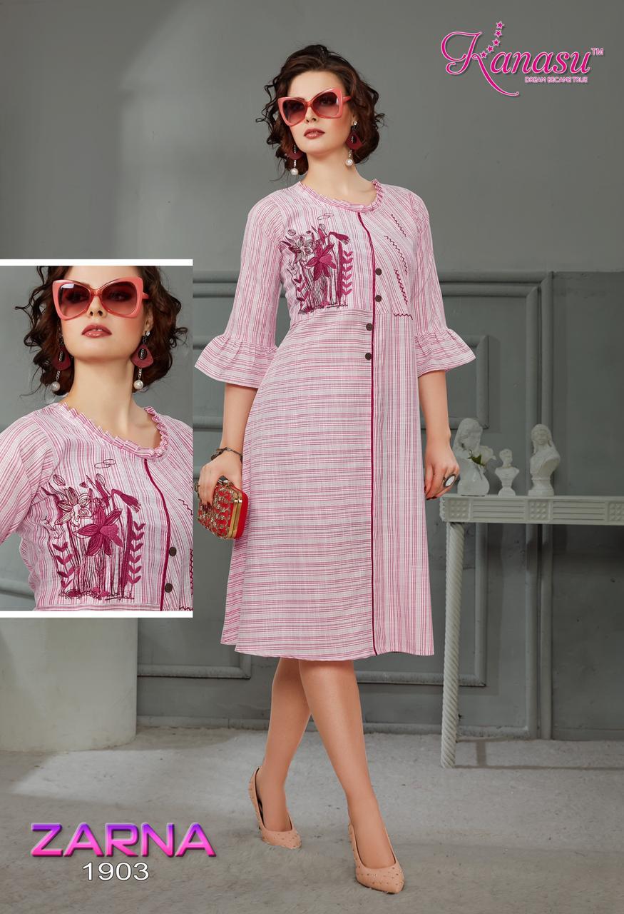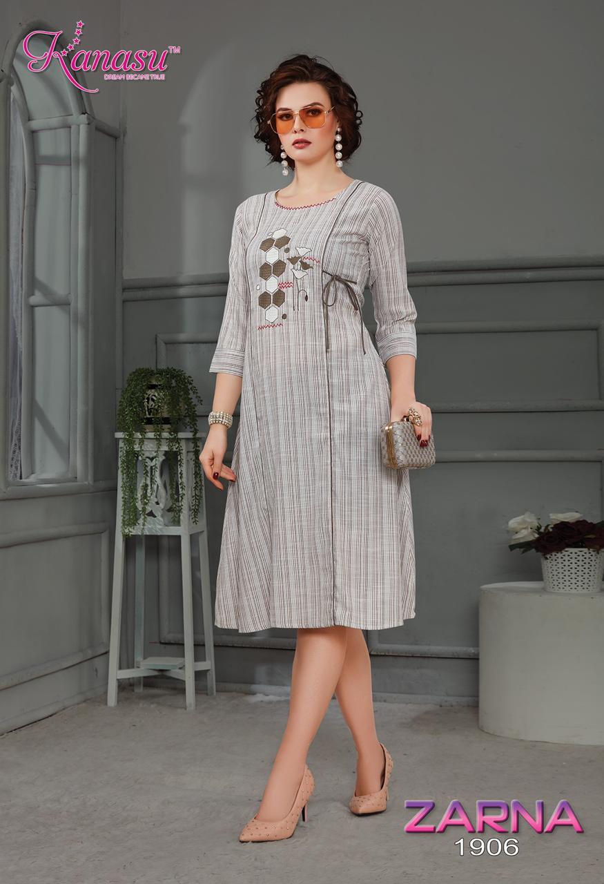 Kanasu Zarna Fancy Rayon Lining Wwith Work Pattern Kurti Collections