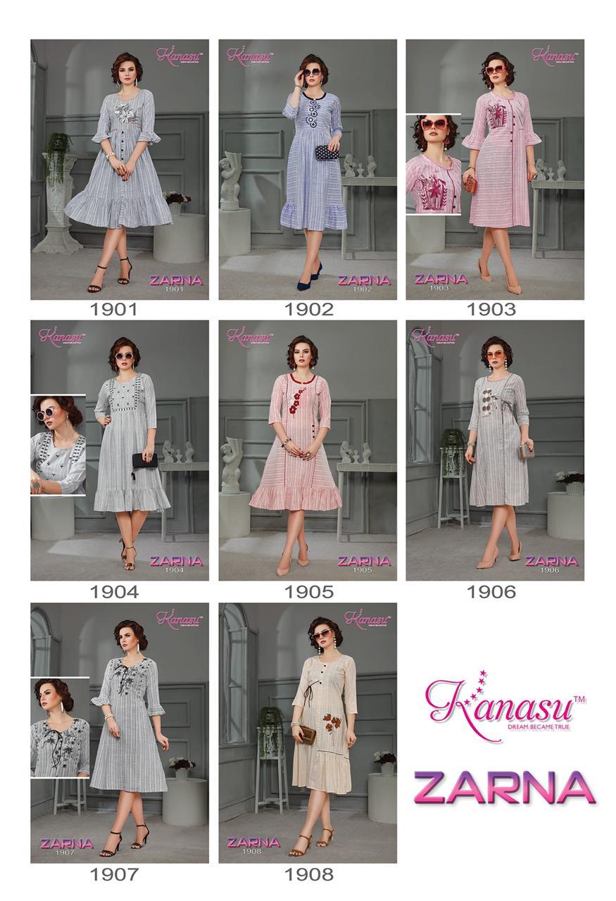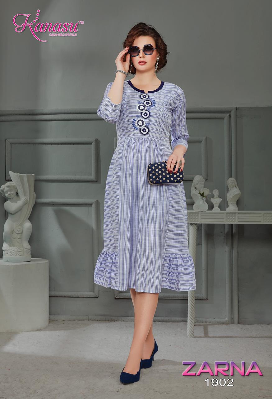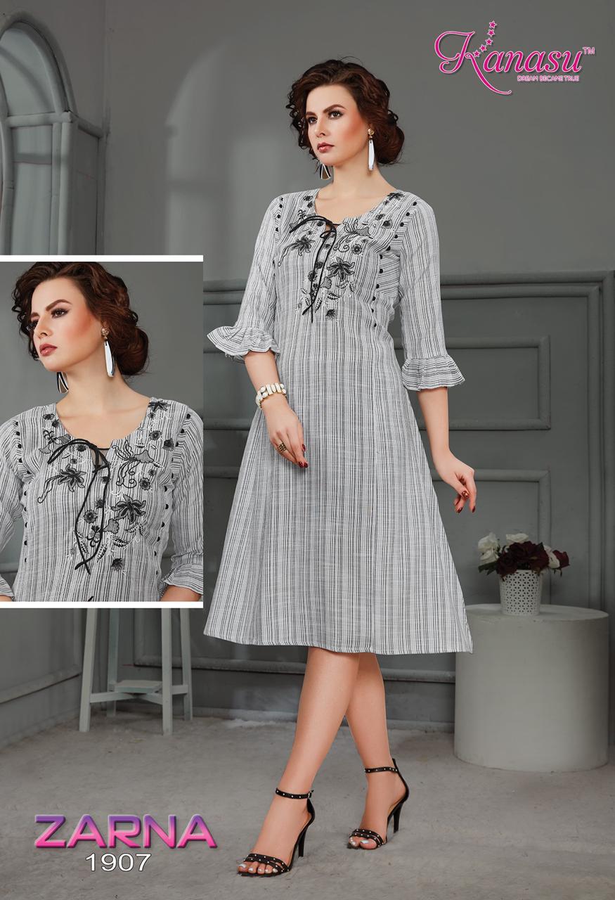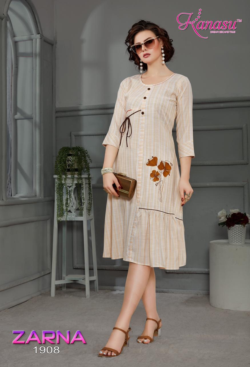 Kanasu Zarna Fancy Rayon Lining Wwith Work Pattern Kurti Collections