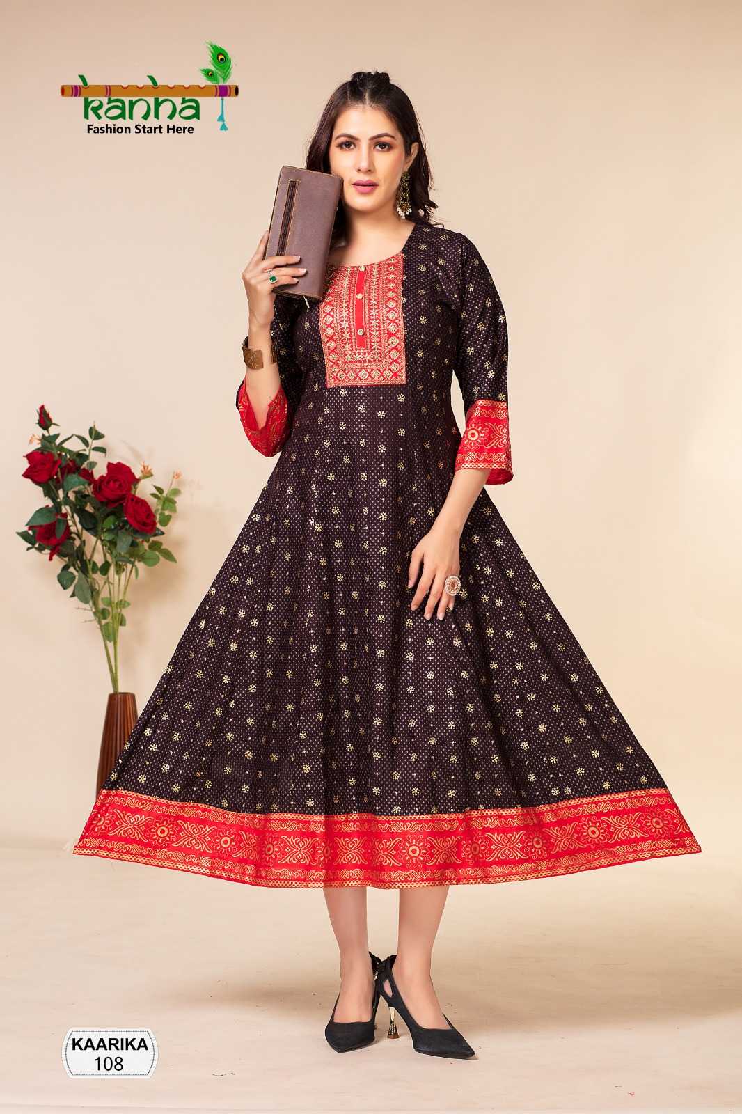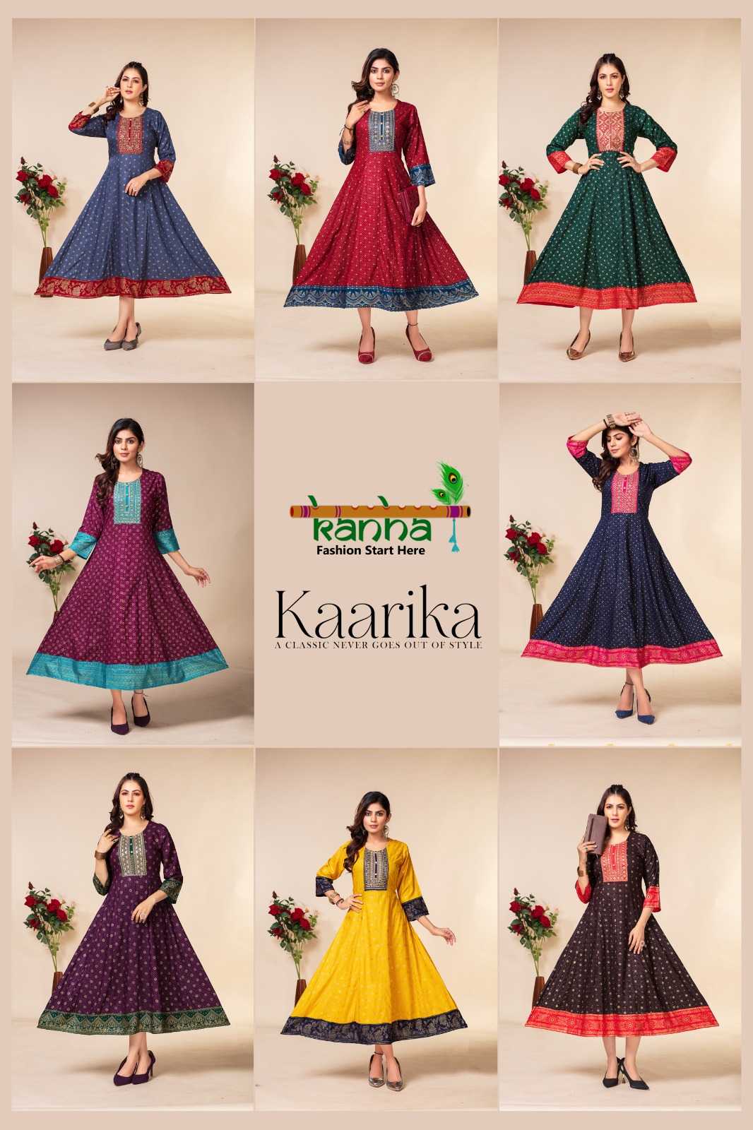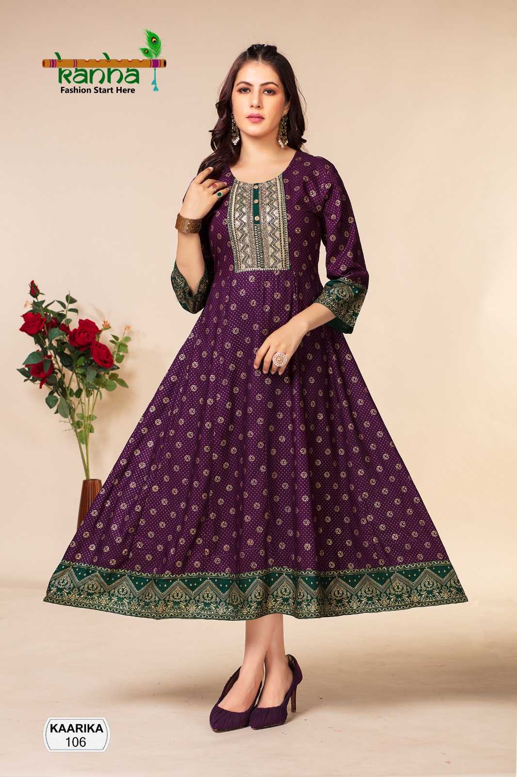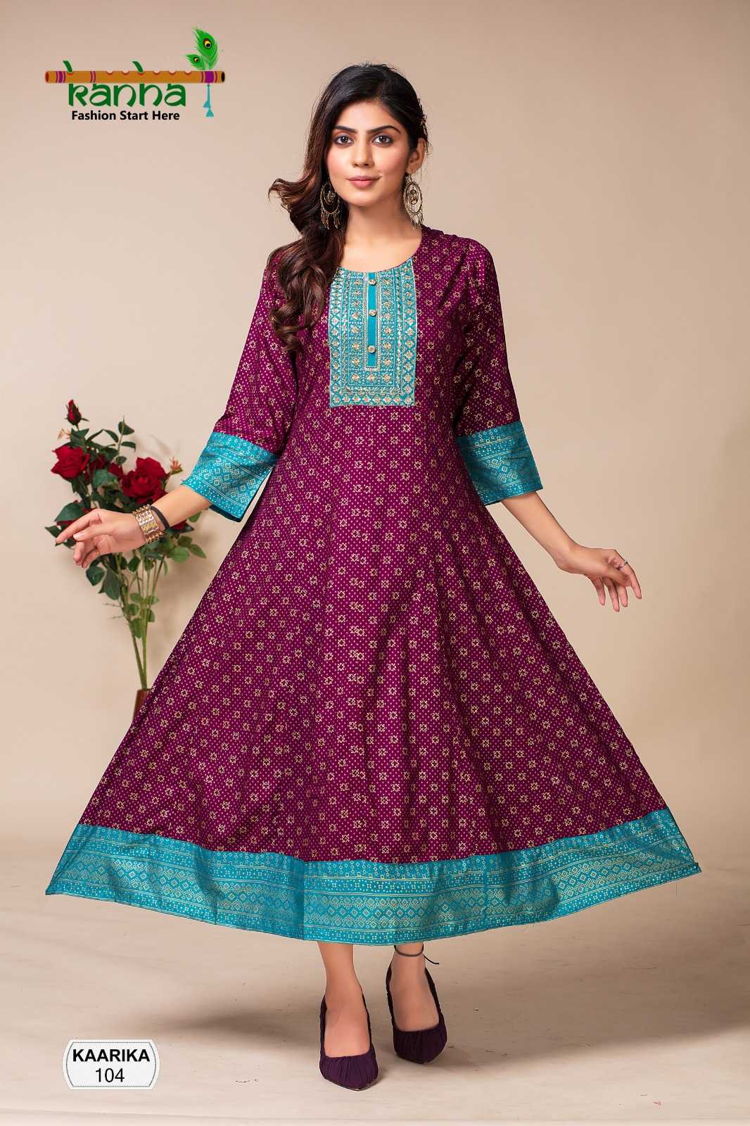 kanha fashion present kaarika fullstitch rayon flair kurti with neck work