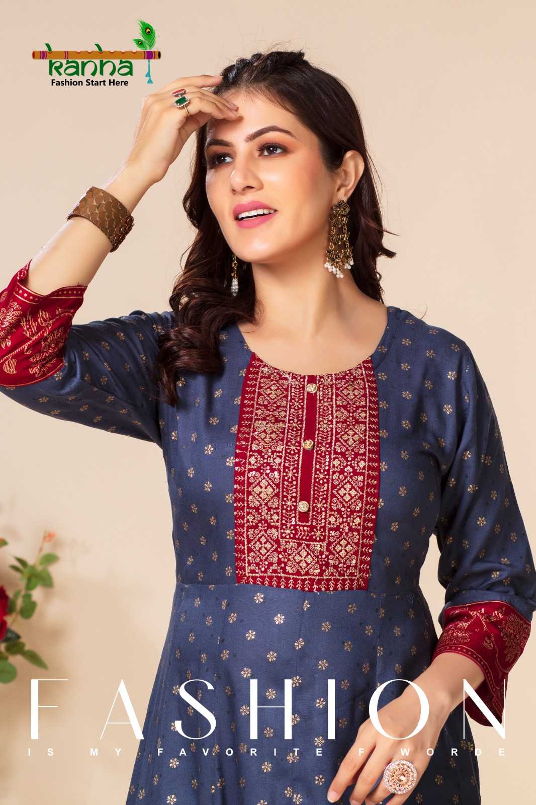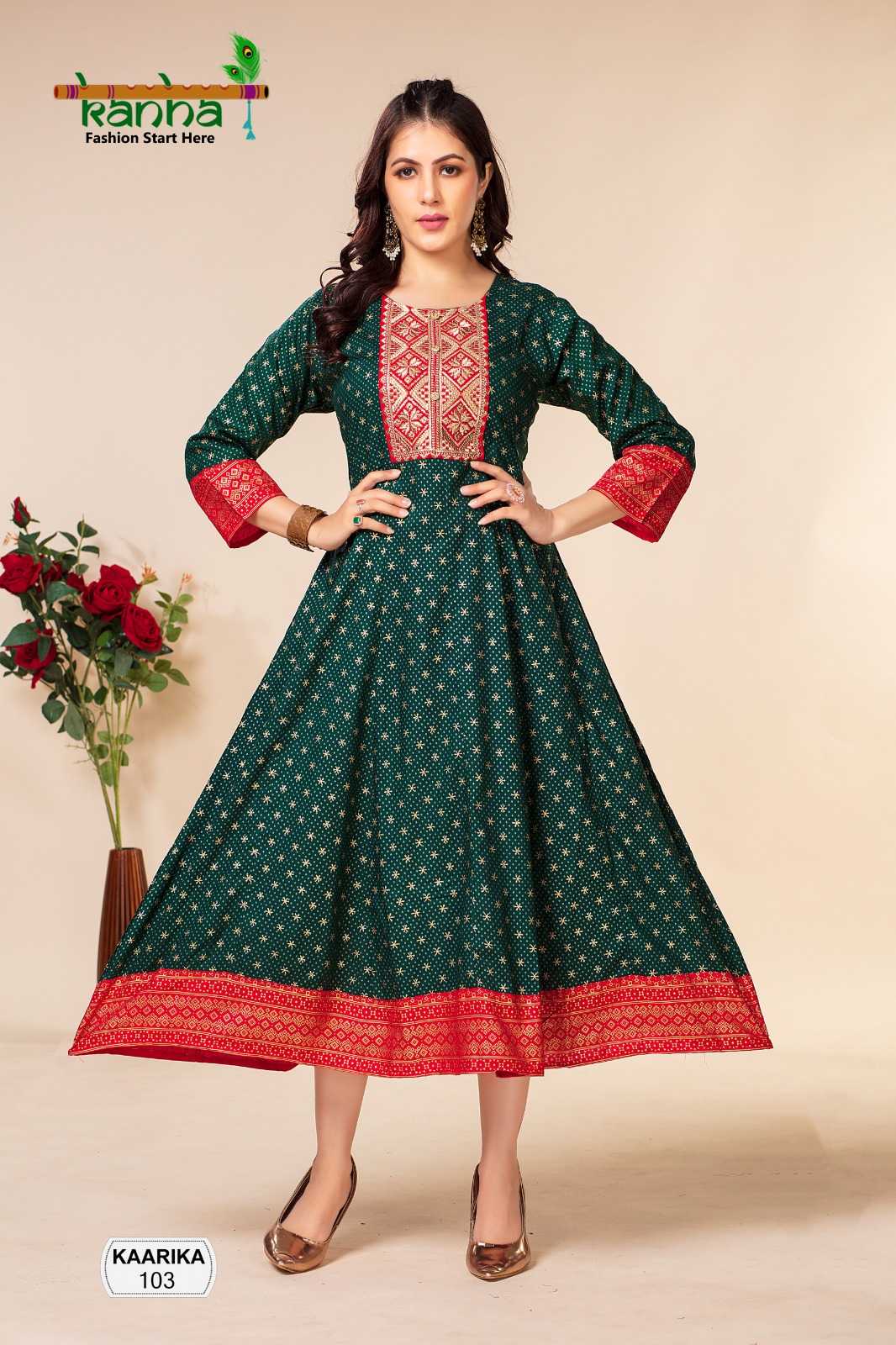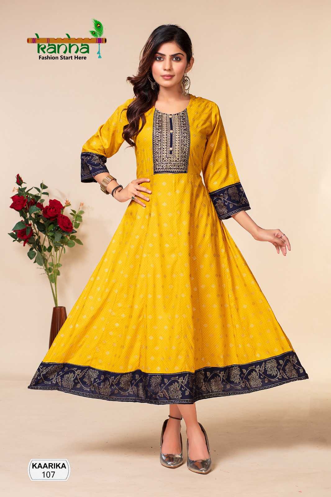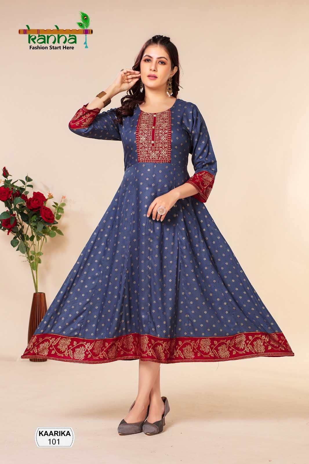 kanha fashion present kaarika fullstitch rayon flair kurti with neck work