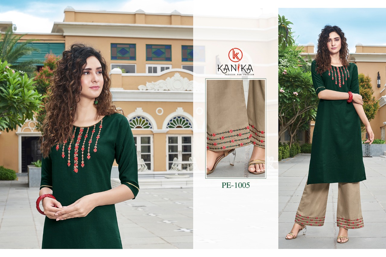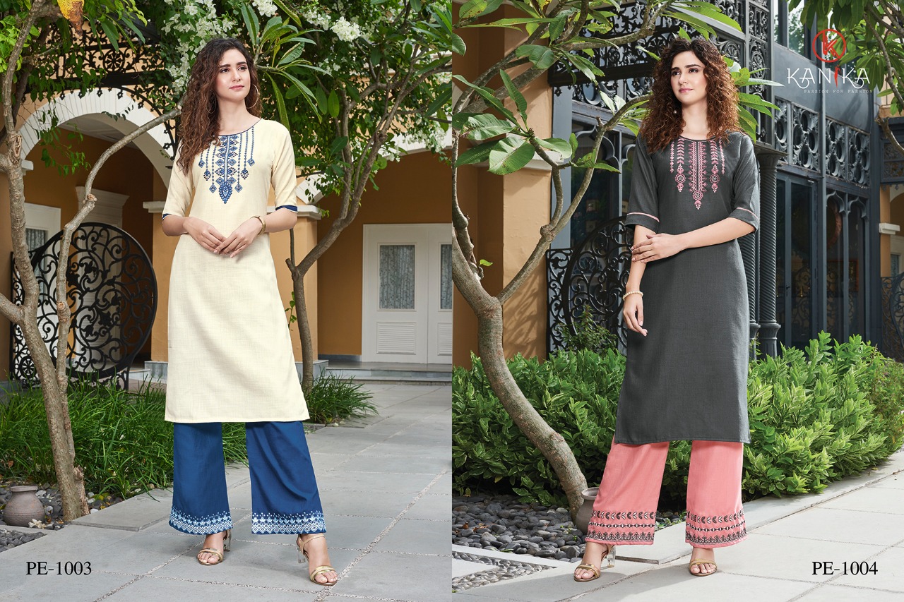 Kanika Presenting Plazzo Express Rubby Cotton With Embroidery Work Kurti With Bottom