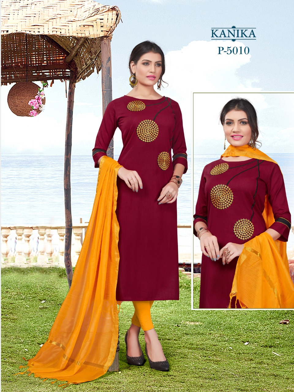 KANIKA Catalogue name - Rangoon Vol 2 ✨Details Fabrics - 14 kg Cotton flex with embroidery work Dupatta - banarasi Size - M L XL XXL Length - 44 to 46 ☣Designs - 6 pcs Rate : - 5⃣2⃣5⃣➕ 5% GST |