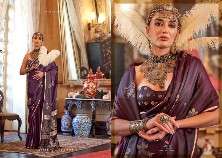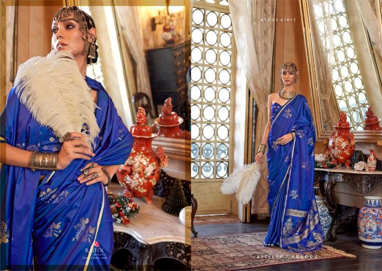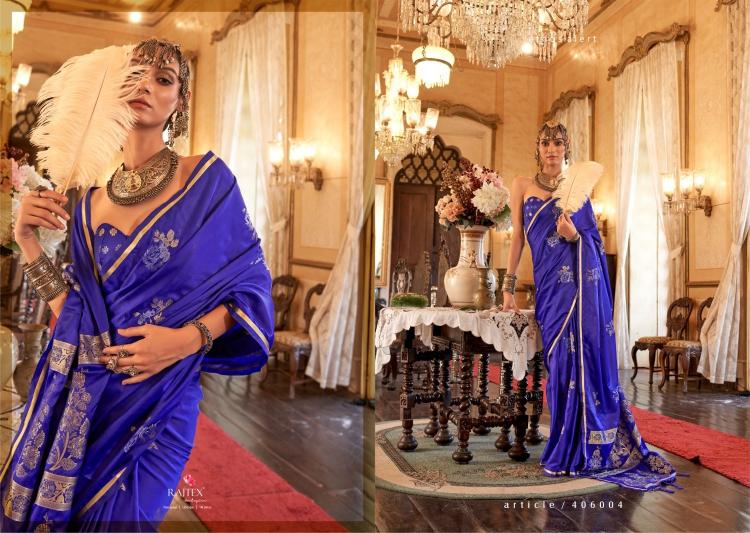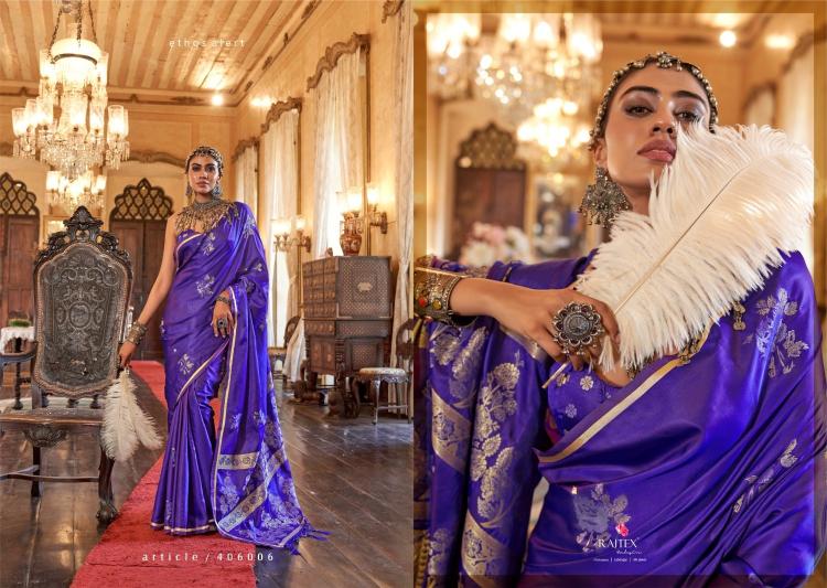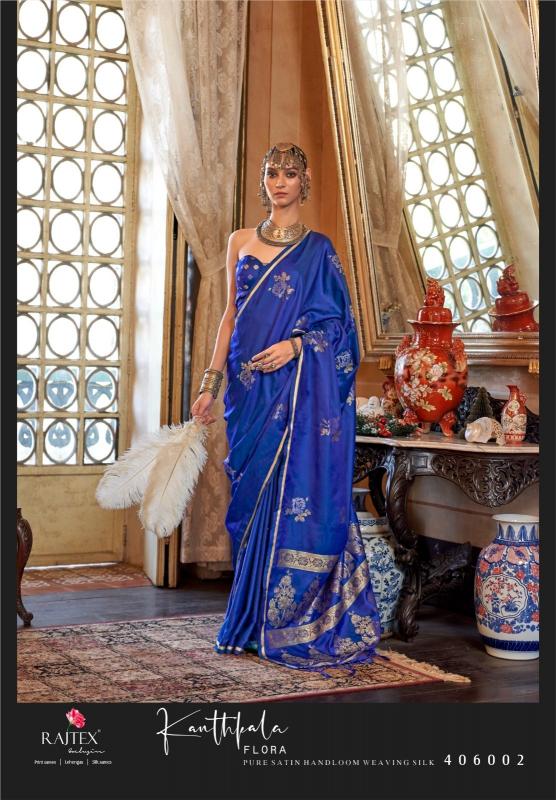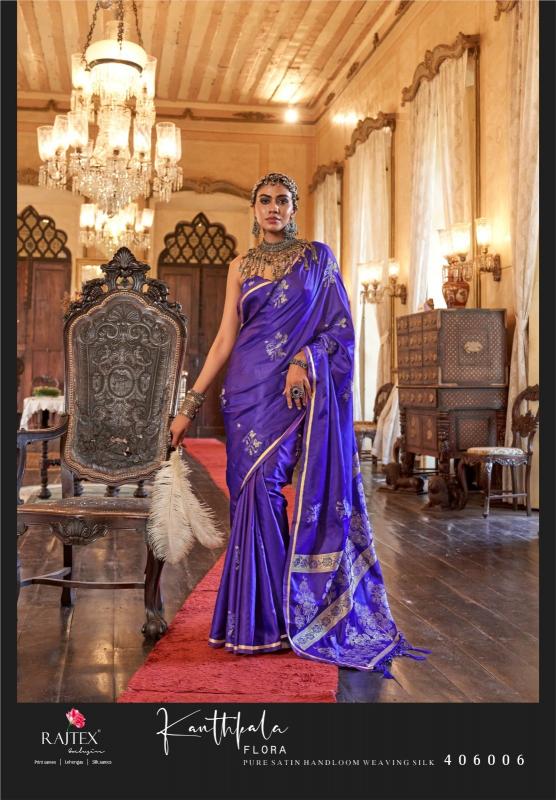 Brand : Rajtex Catalog: Kanthkala Flora Series : 406001 TO 406006 Saree : Pure Satin With Handloom Weaving Silk Saree Blouse : Brocade With Satin Weaving Blouse Price : 1465/- +5%GST Occasion : Party Wear ,Festival Wear |