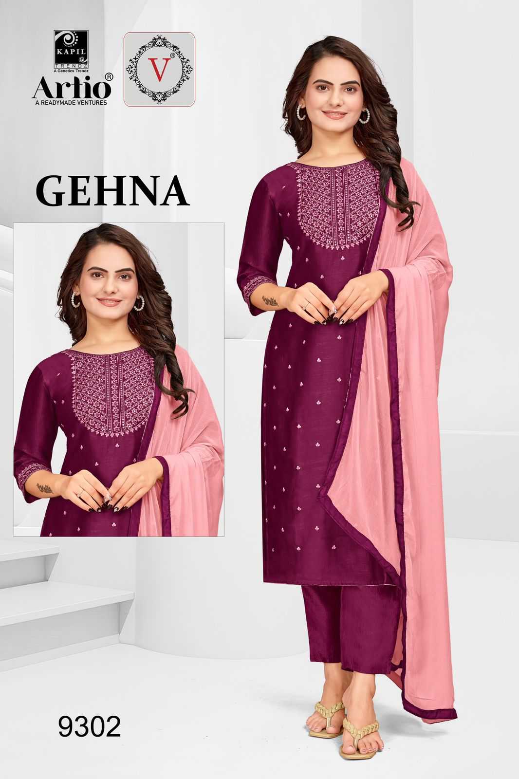 kapil trendz gehna fully stitch vichitra silk fancy neck design big size combo set top pant dupatta