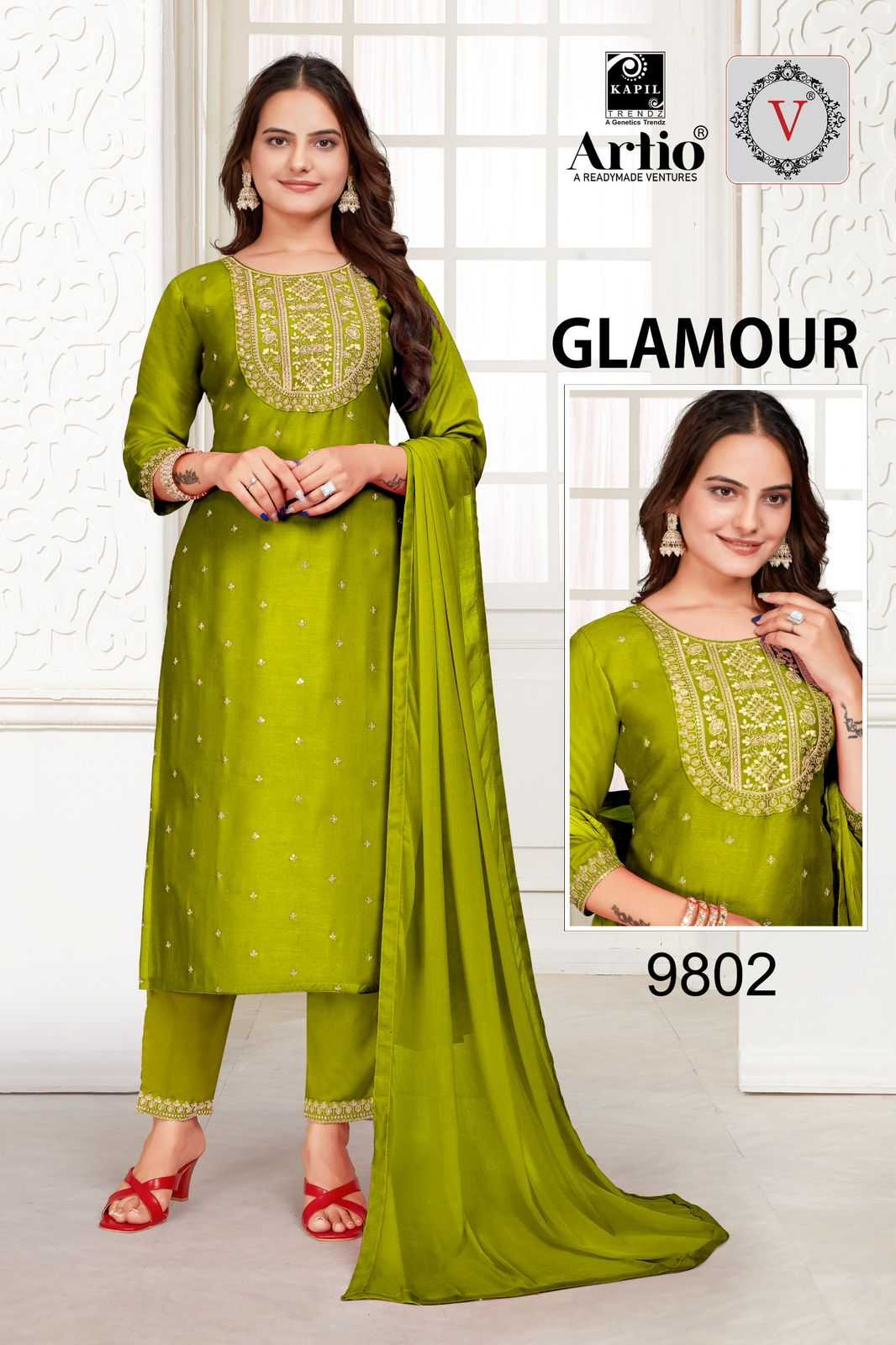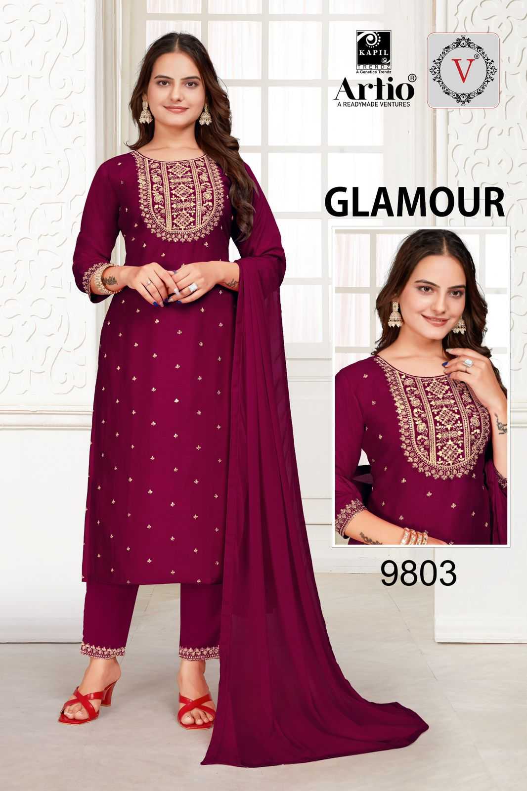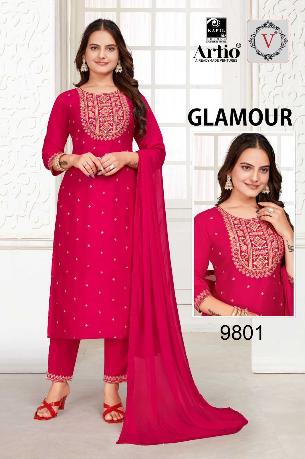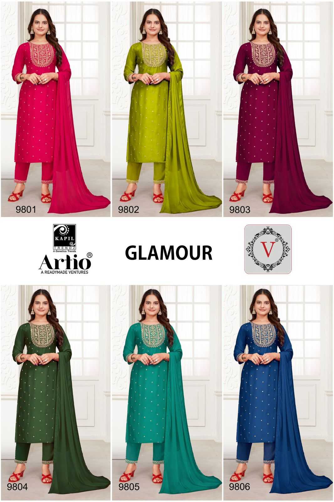 kapil trendz launch glamour vichitra silk fully stitch fancy neck wok combo set salwar suit