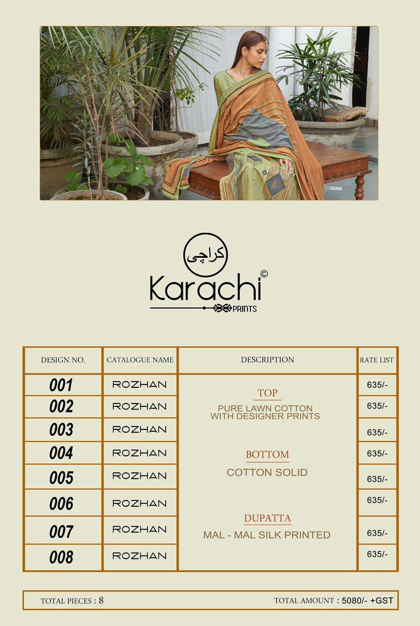 karachi prints rozhan lawn cotton printed suits for women wholesaler in surat market