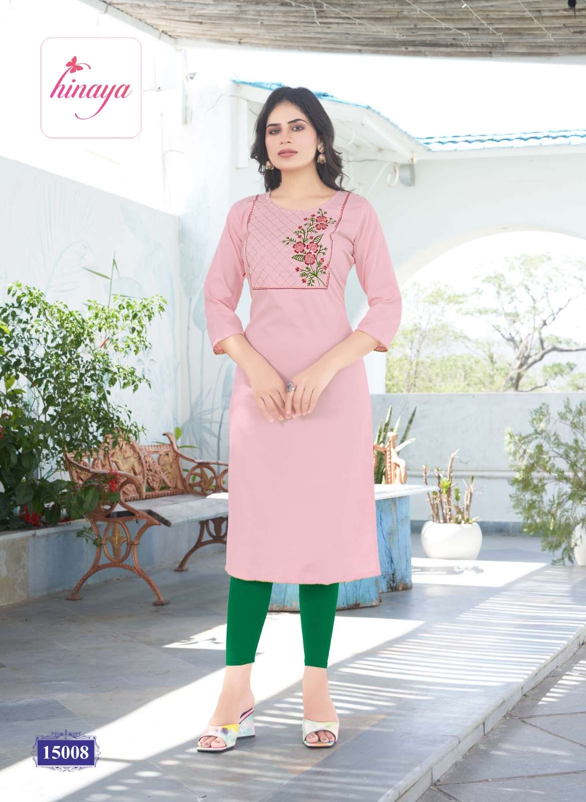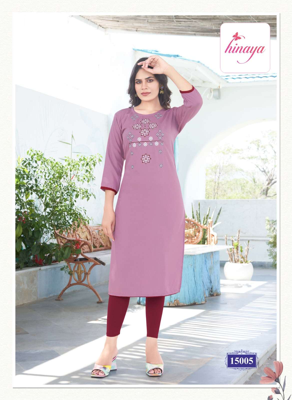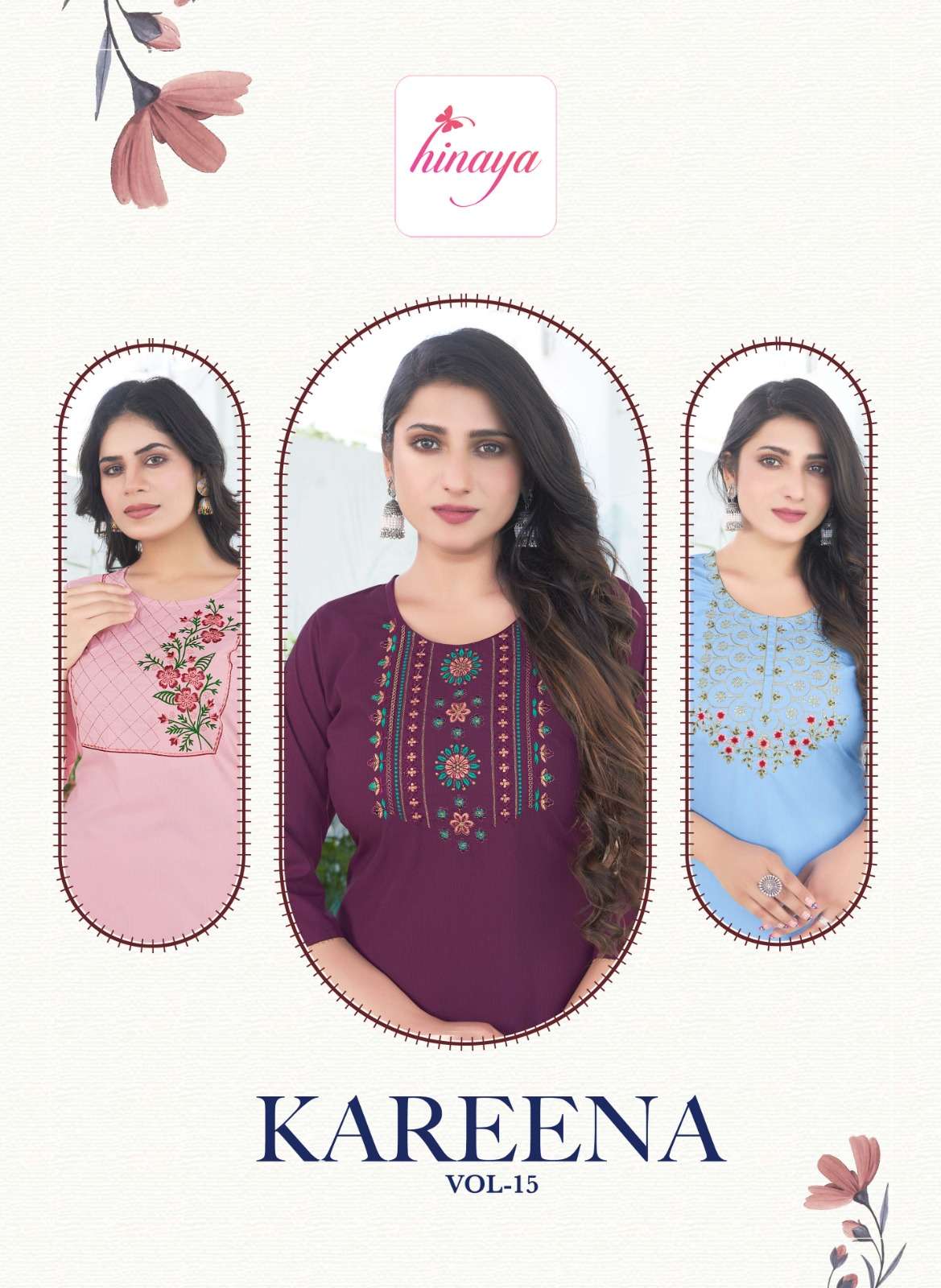 kareena vol 15 by hinaya fancy work rayon lining adorable kurtis collection