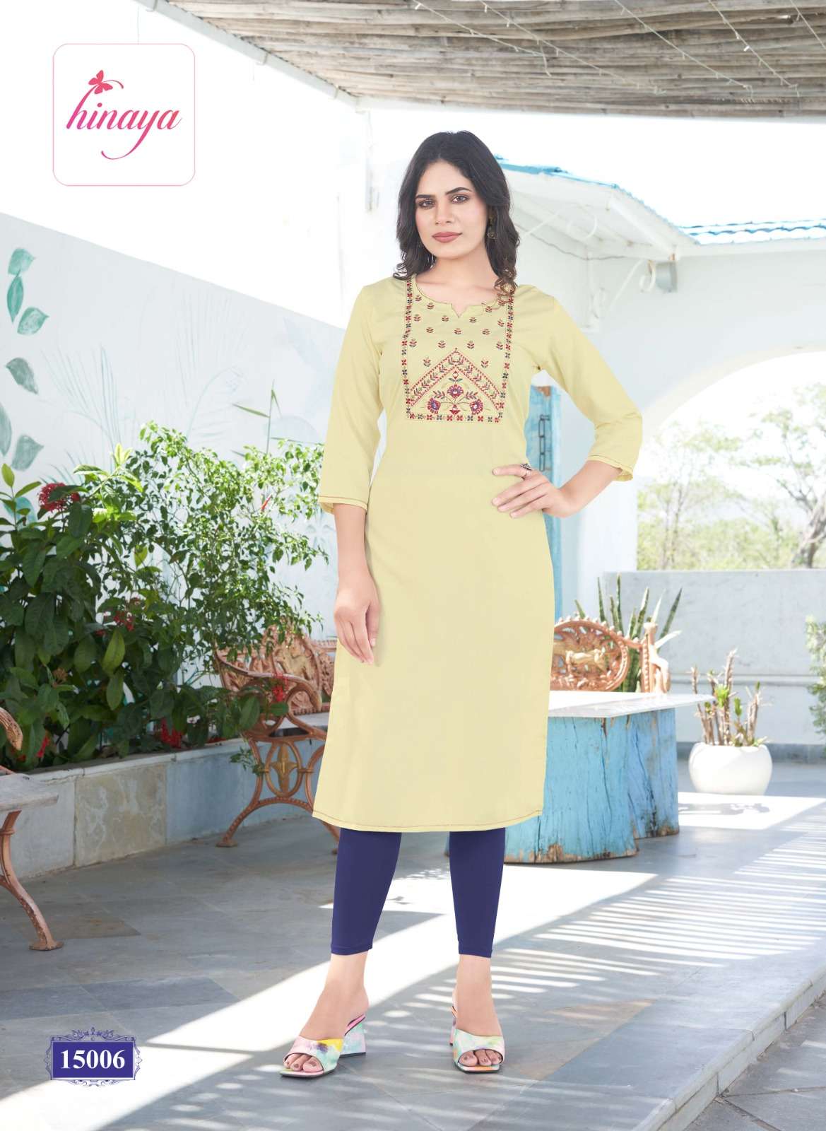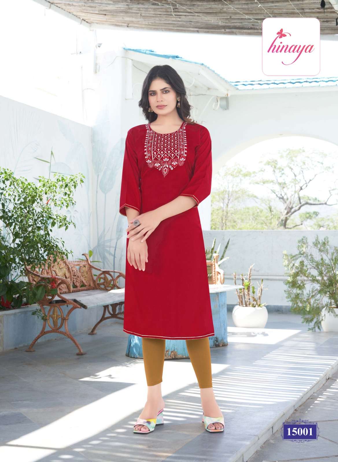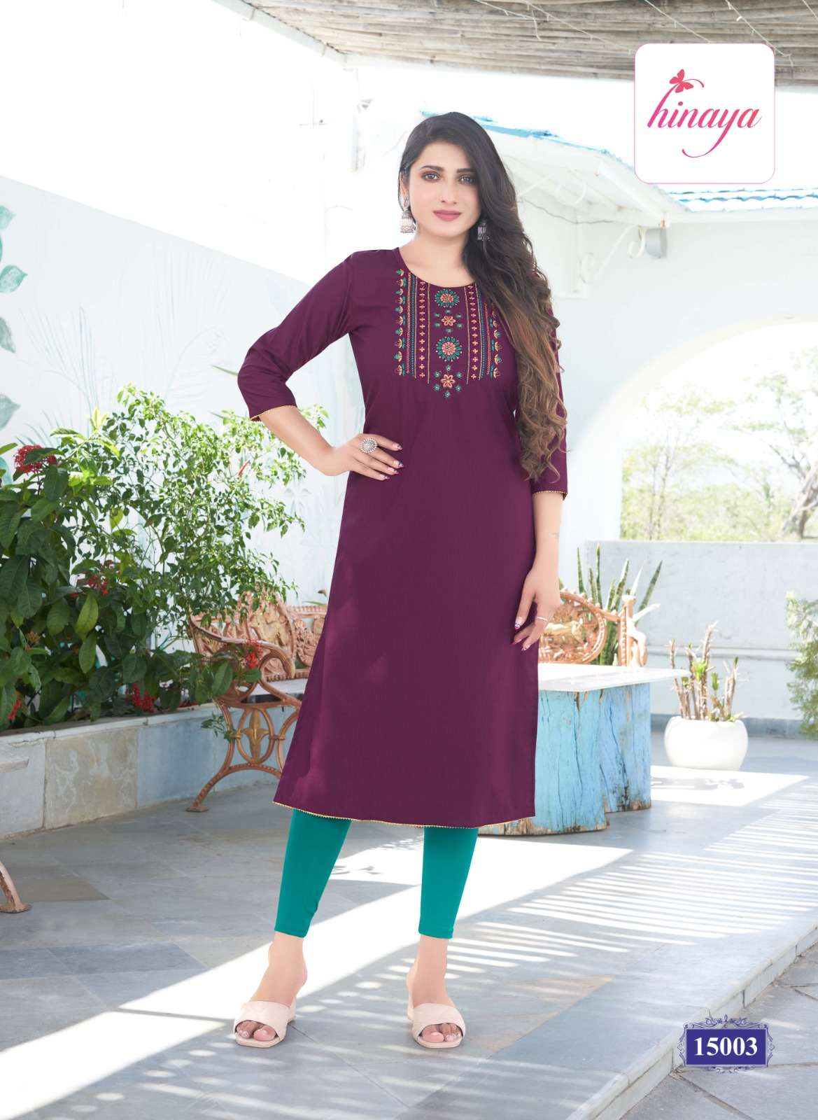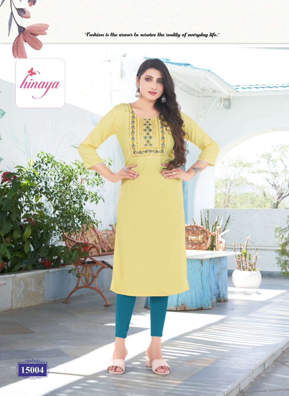 kareena vol 15 by hinaya fancy work rayon lining adorable kurtis collection