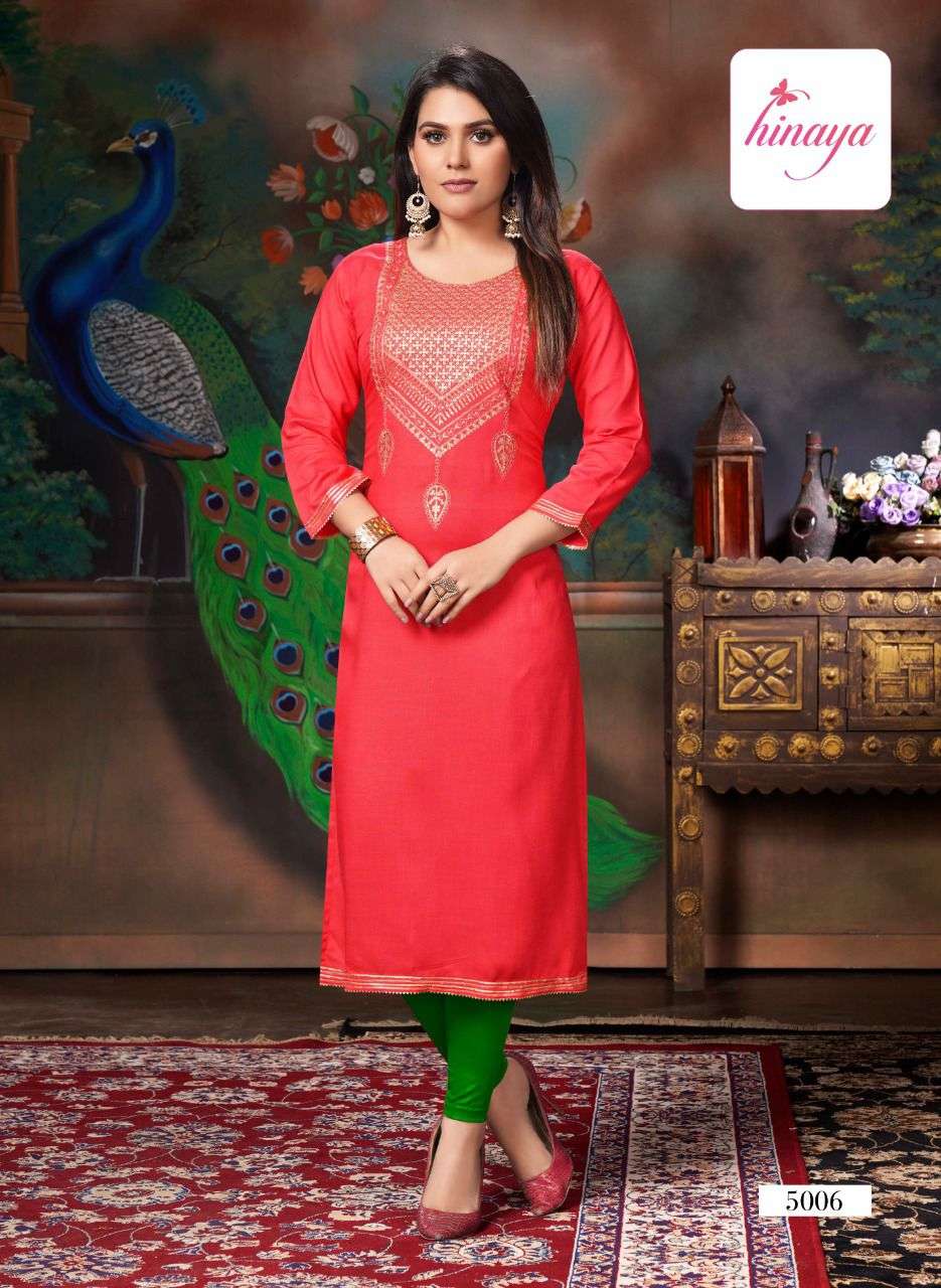 kareena vol 5 by hinaya rayon slub daily wear kurti wholesaler