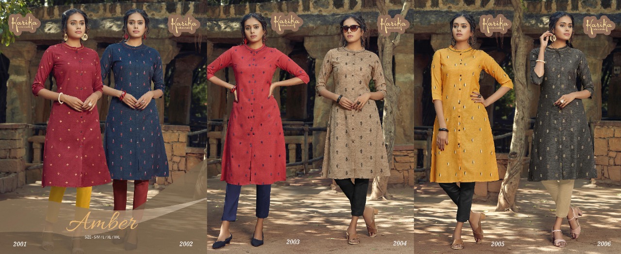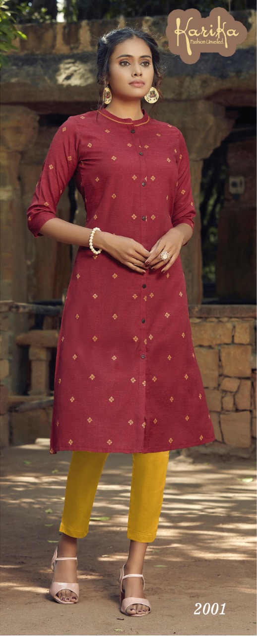 Karika Amber Weaving Cotton Formal Wear Fancy Kurtis