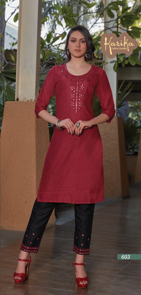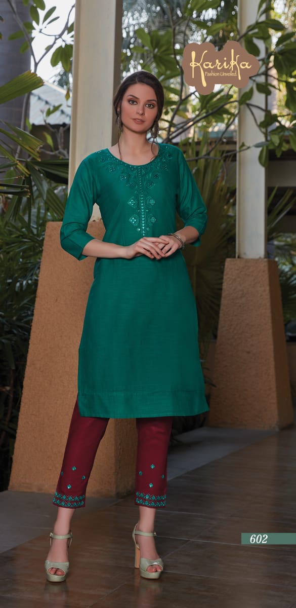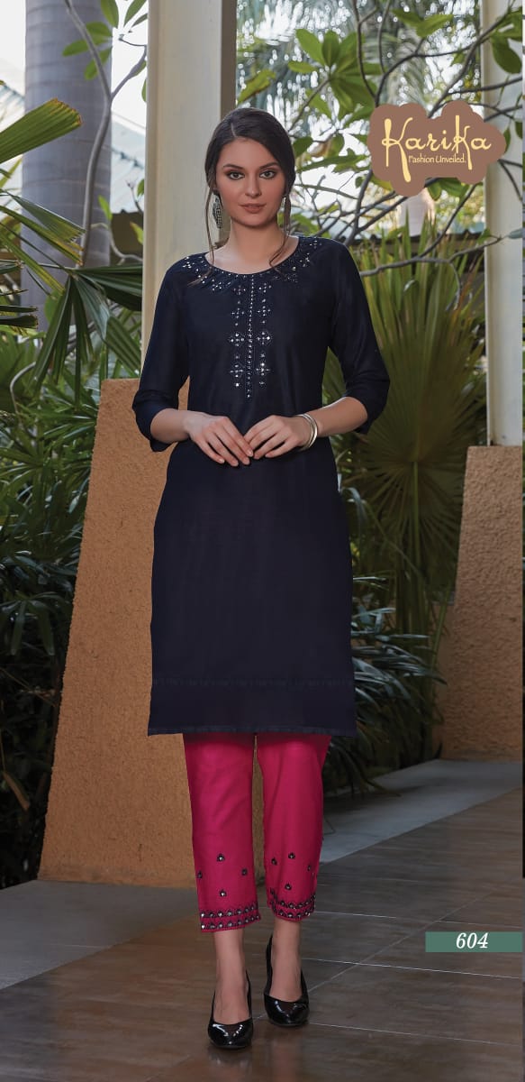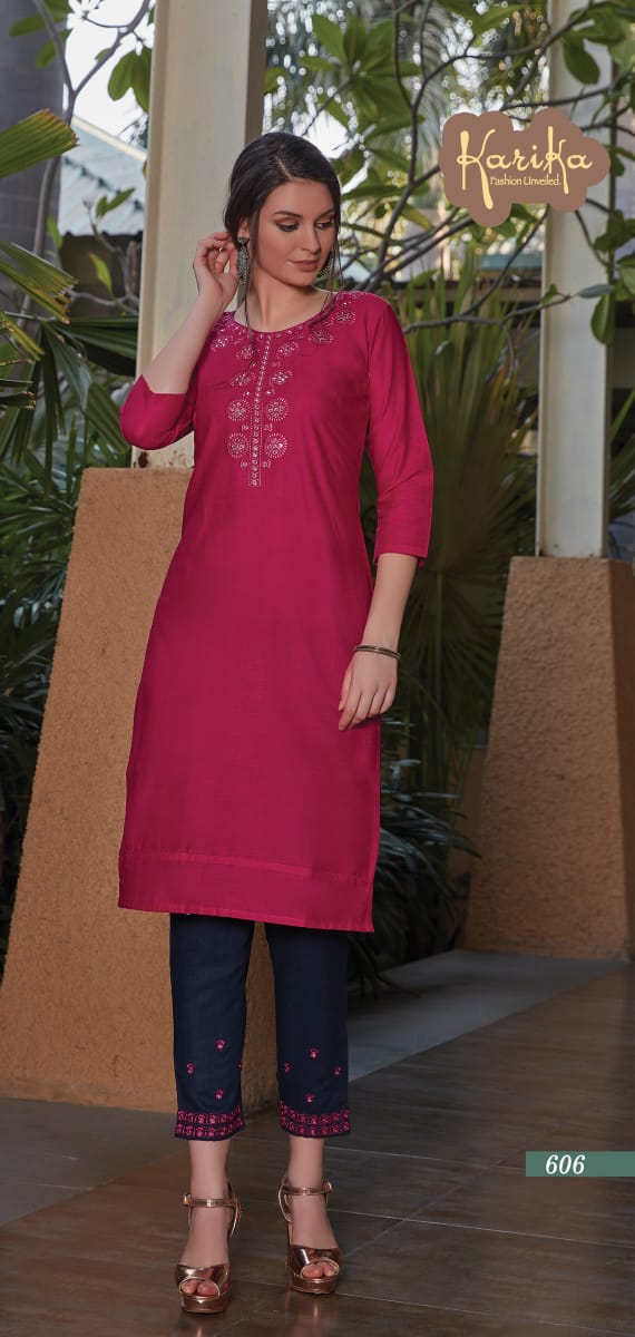 Karika Launch Rosy Cotton Slub Casual Wear Kurti With Pant Collections