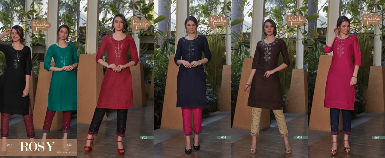 Catalog : Rosy Kurti. : CottonSlub Pant. : sluby Set Price. : 495/- Sizes. : S - M - L - XL - XXL Pieces : 6 Bag Price : 2,970/- |