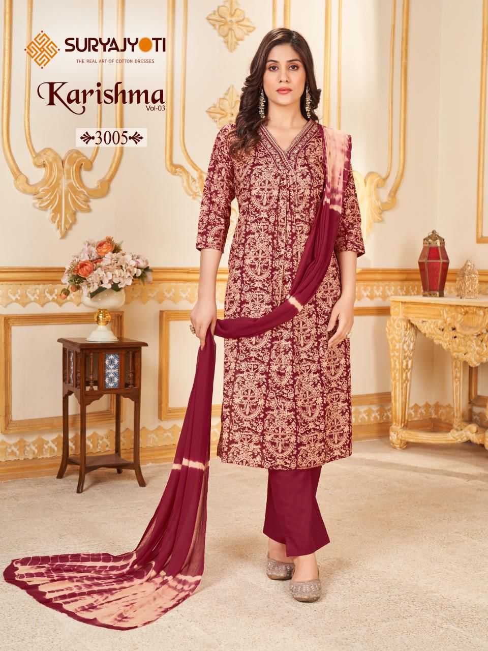 karishma vol 3 by suryajyoti amazing design full stitch salwar kameez supplier