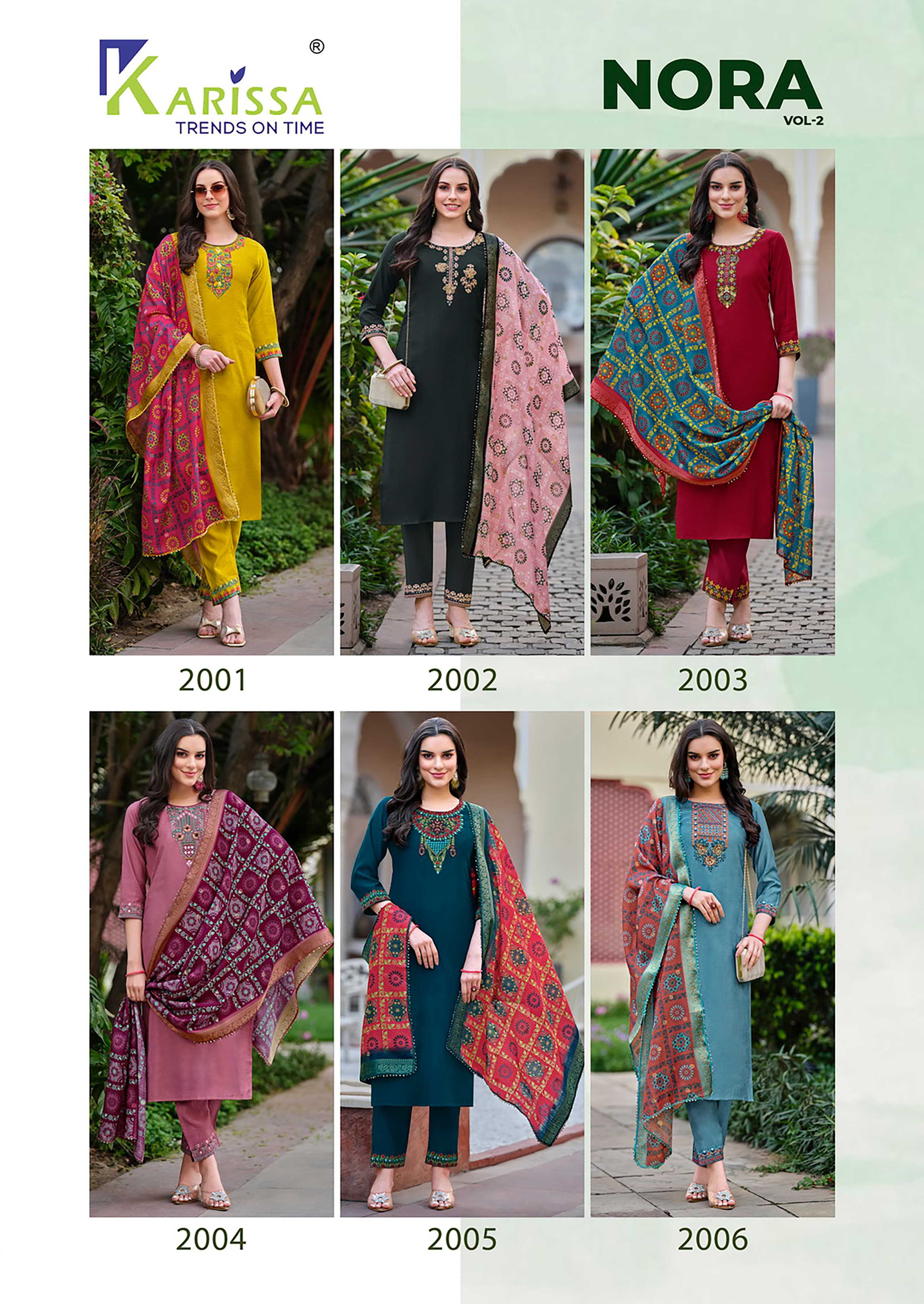 NORA vol -2 TOP PANT WITH DUPATTA Brand : KARISSA Catalog : NORA vol -2 Design : 6 Rate : Rs. 1145 /- per pcs+ GST Set to set Dispatch : ready to dispatch CLASSY AND FABULOUS BOUTIQUE COLLECTION Book Your Order Now |