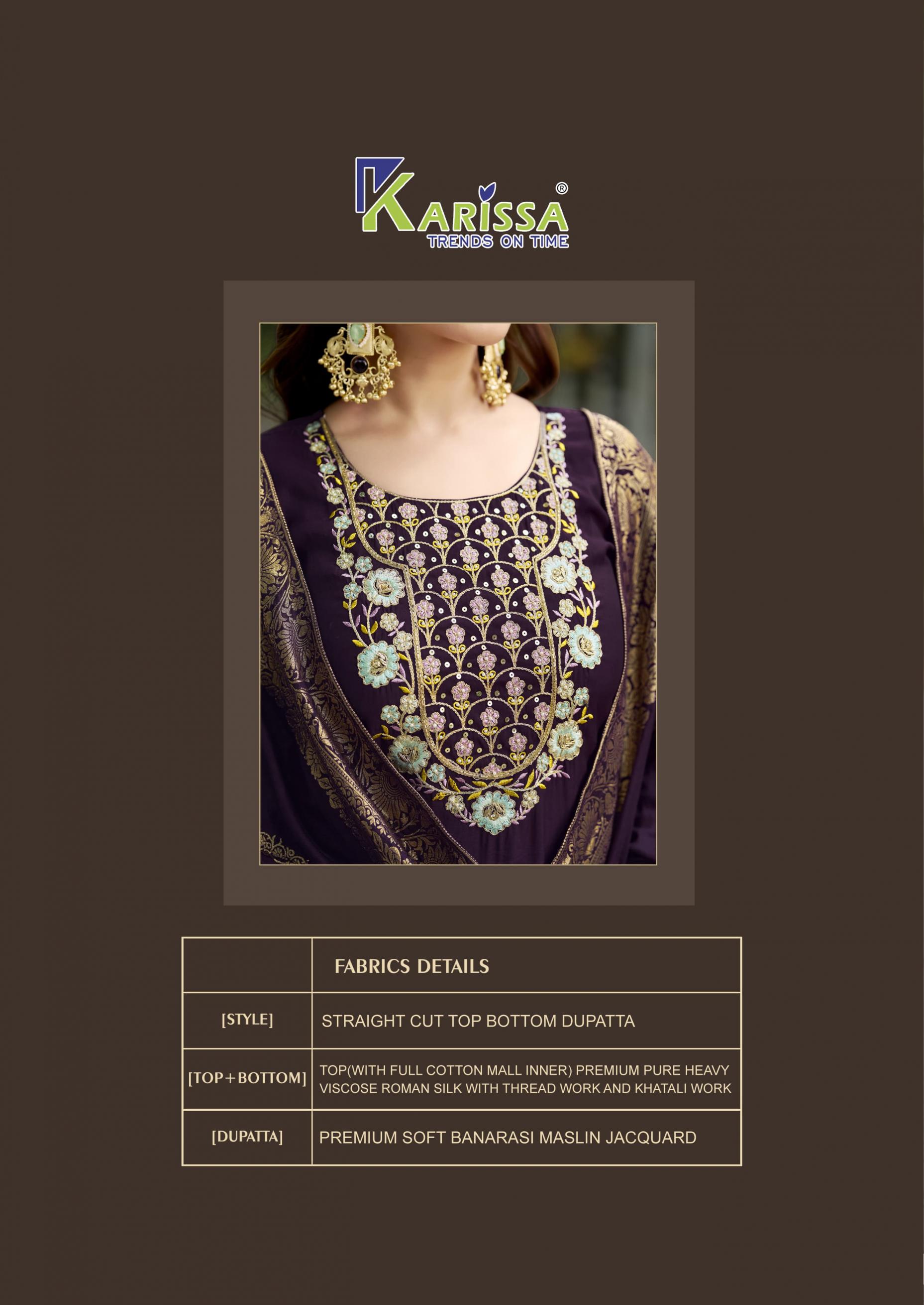 karissa roshani vol 2 viscose roman silk readymade stylish suit for womens