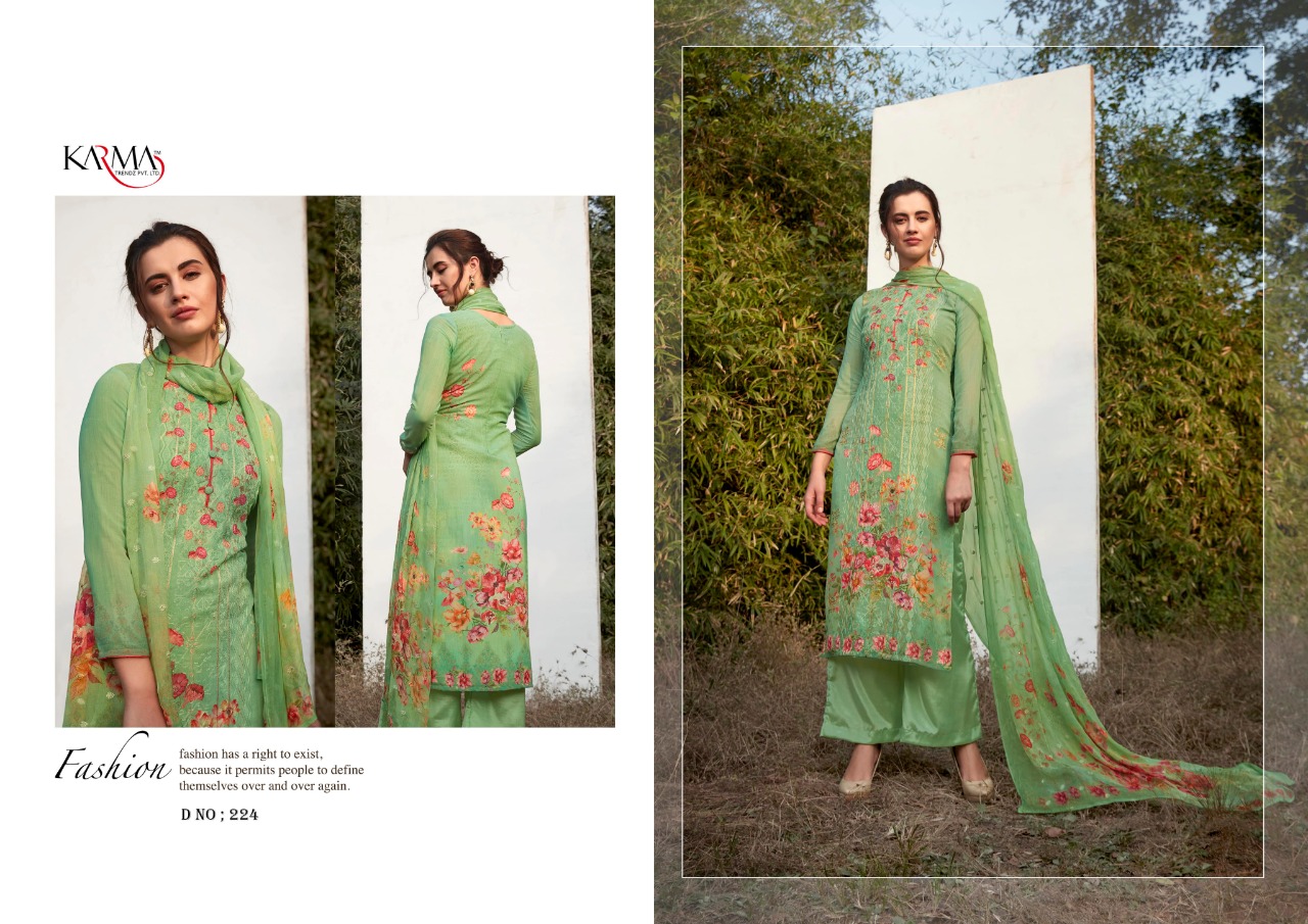 Karma Trendz Presents Latest Collection Launched on 28-02-2020. Presenting Beautiful collection of 6 PCS with Unstitched .