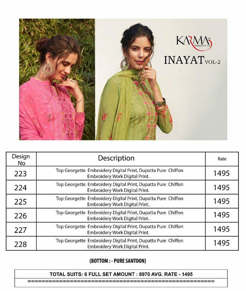 Karma Inayat Vol 2 Series 223 Georgette Salwar Kameez Supplier