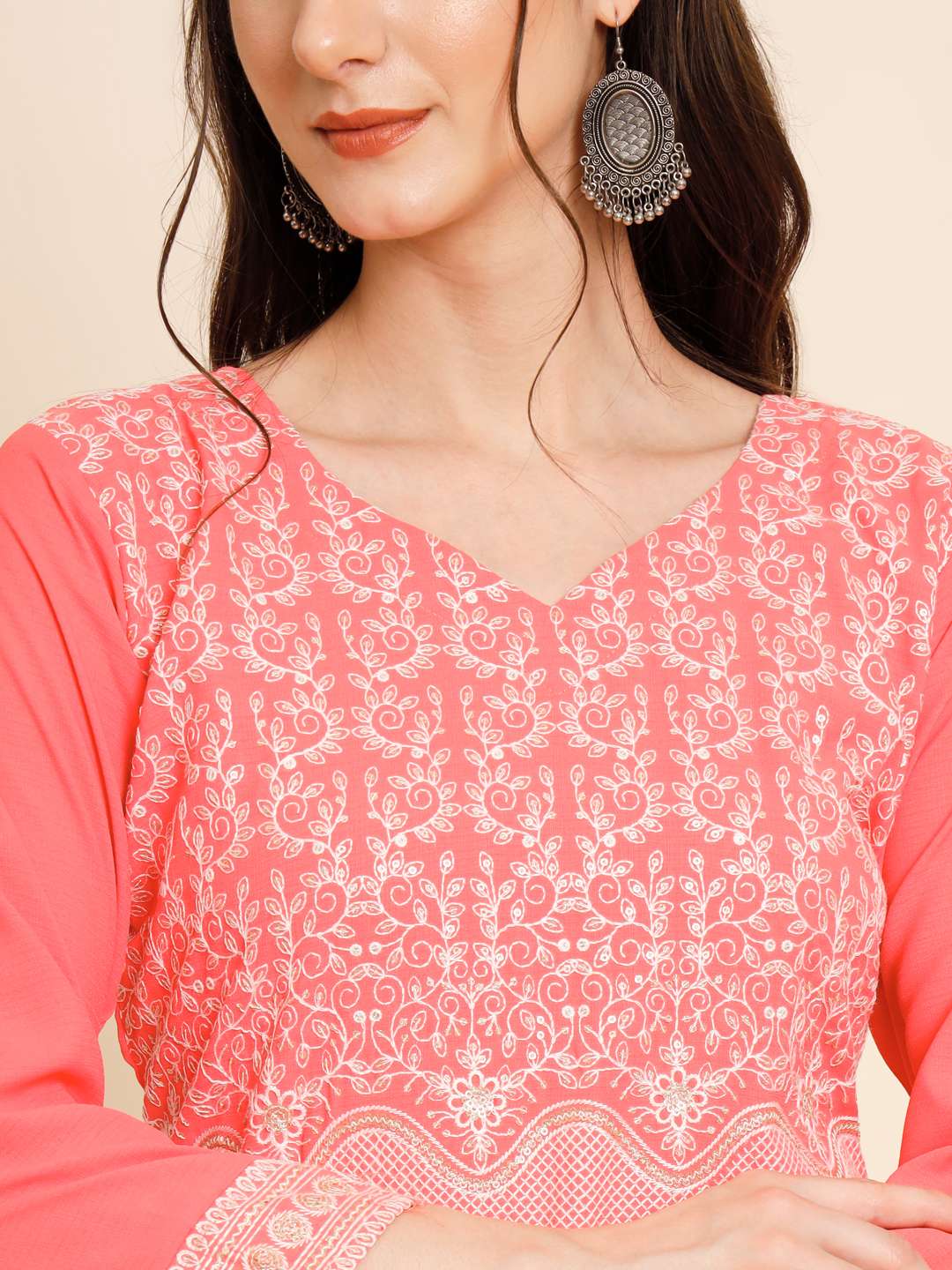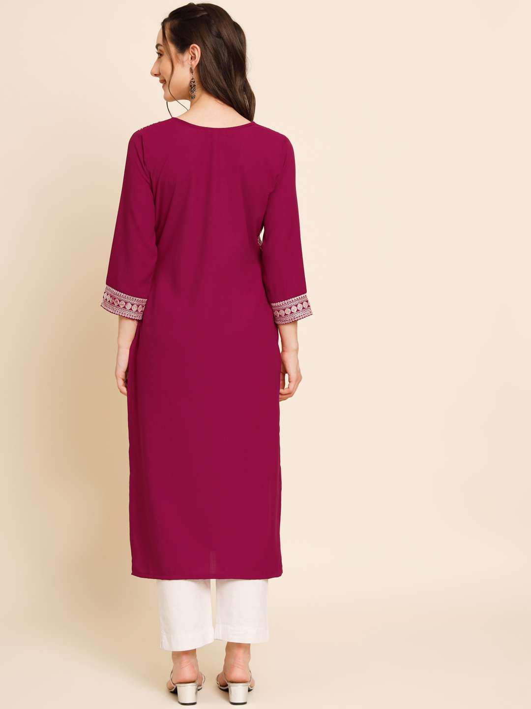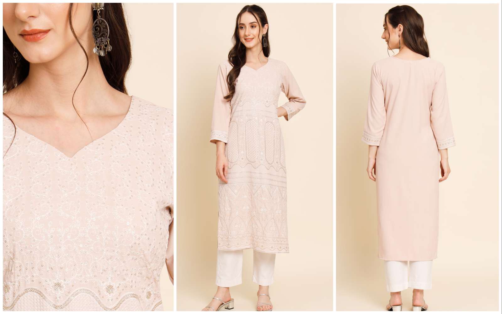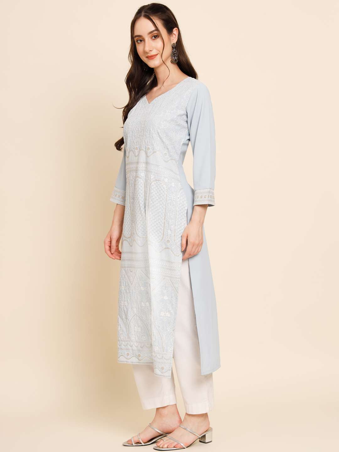 Kartavya Butter crepe Kurta with Embroidery Work Straight Shape Three Quarter Sleeves Sweetheart Neck